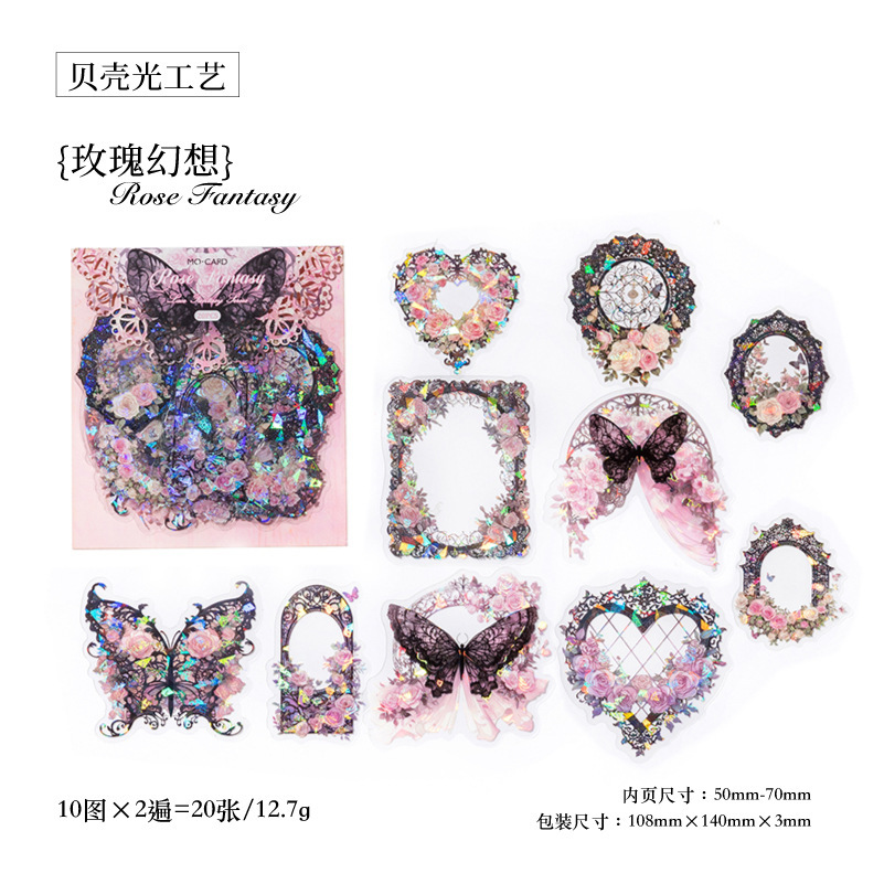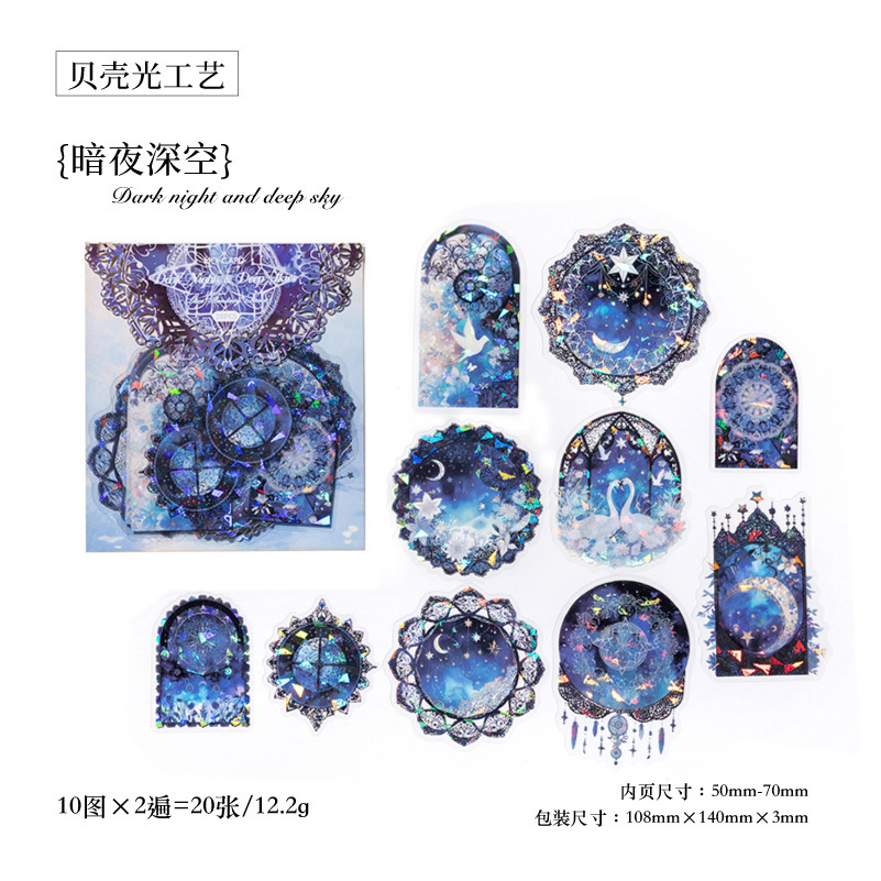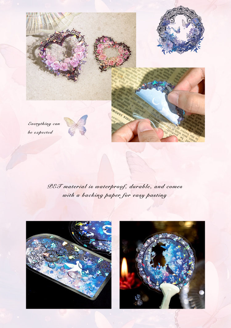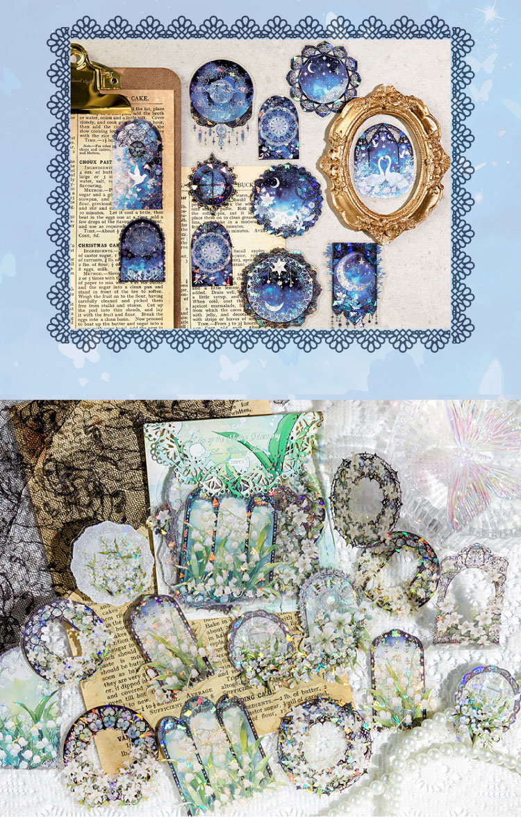 PETシール ステッカー アンティーク 星空 花フラワー 窓 猫スワン レース バタフライ蝶 20枚入