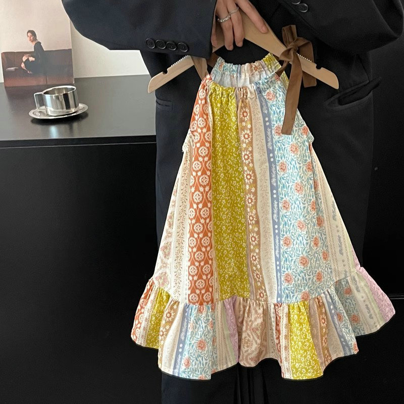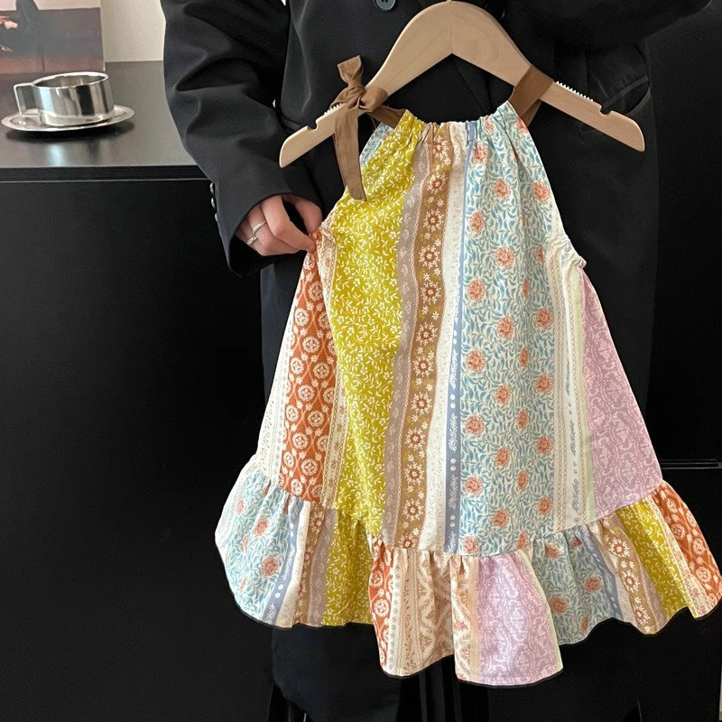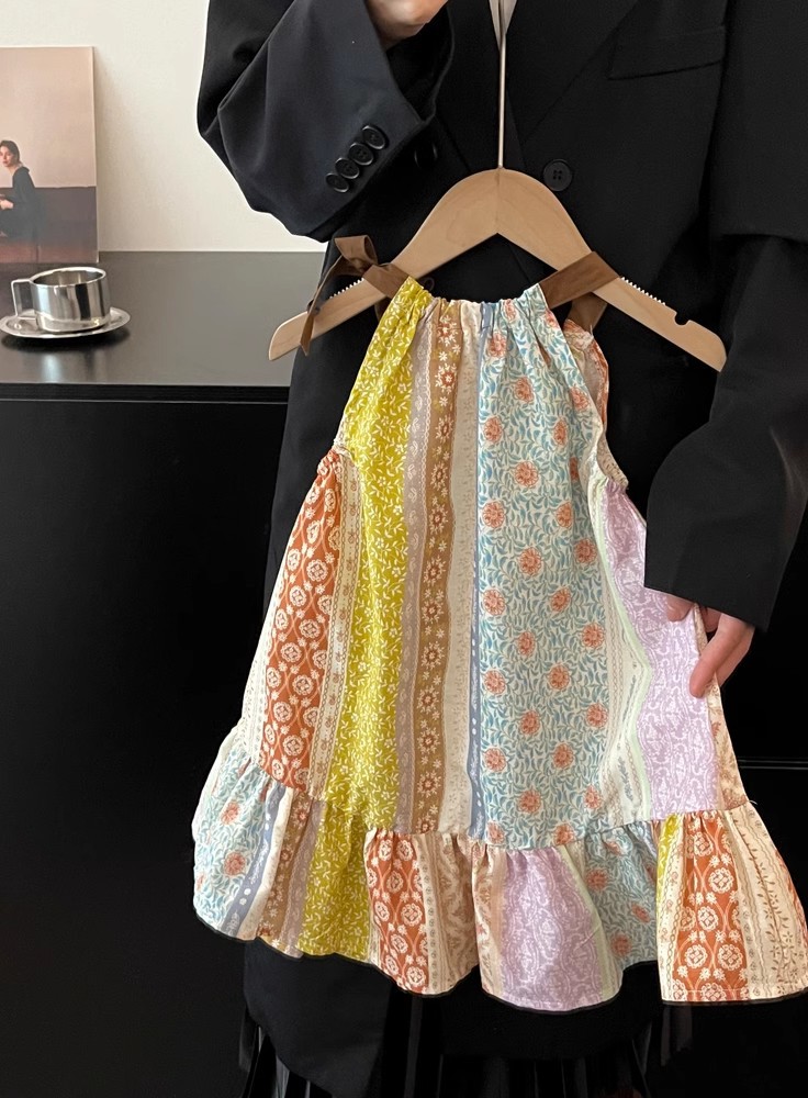 春夏 韓国風子供服 ガール シフトドレス ノースリープ 小花柄 吊りスカート ワンピース ワンピ 7-17