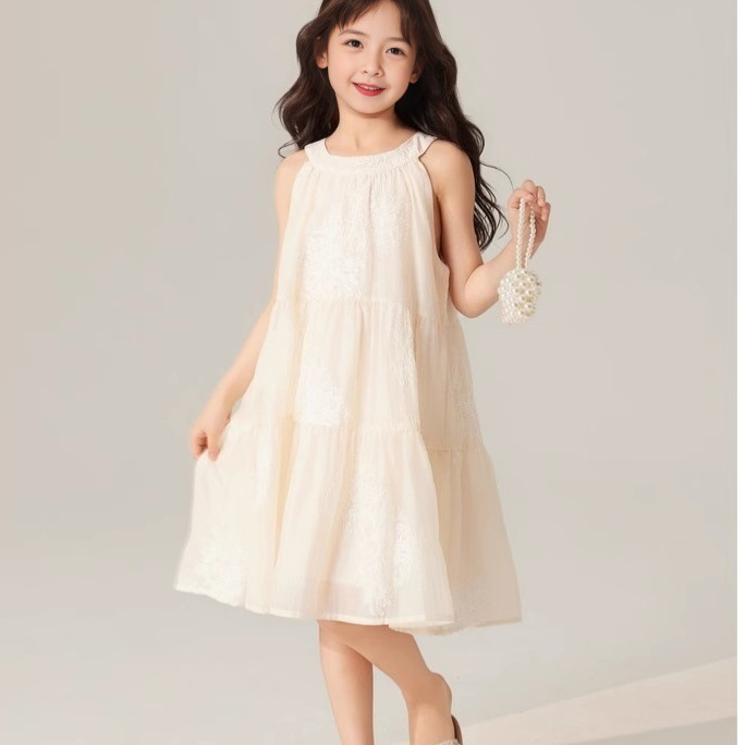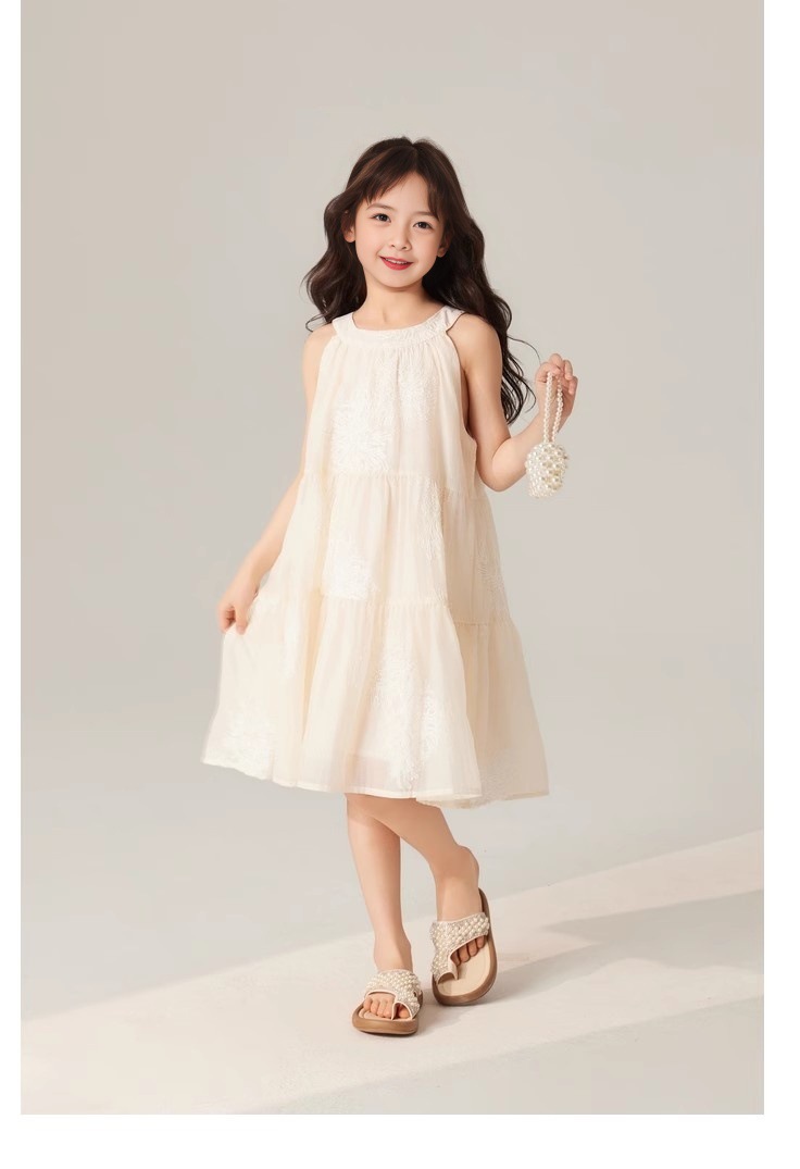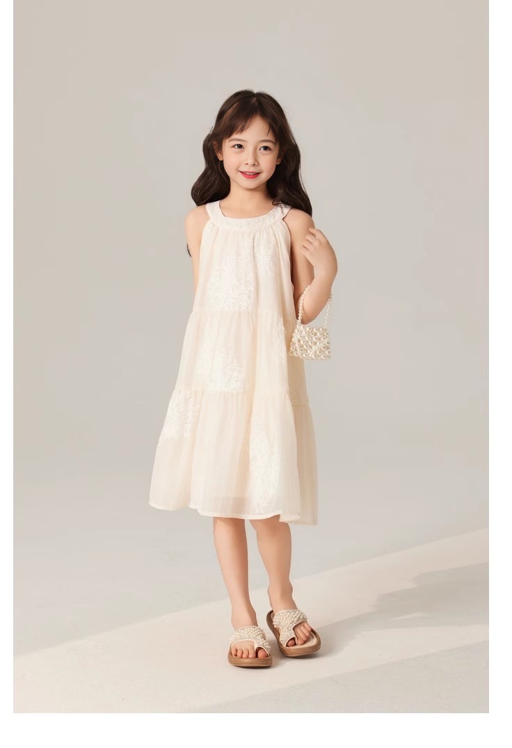 春夏 韓国風子供服 キッズ ガール シフトドレス ノースリープ 花柄刺繍 ワンピース ワンピ 5-13