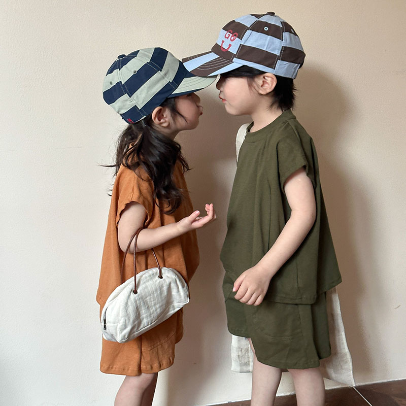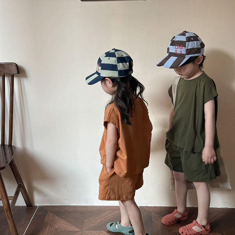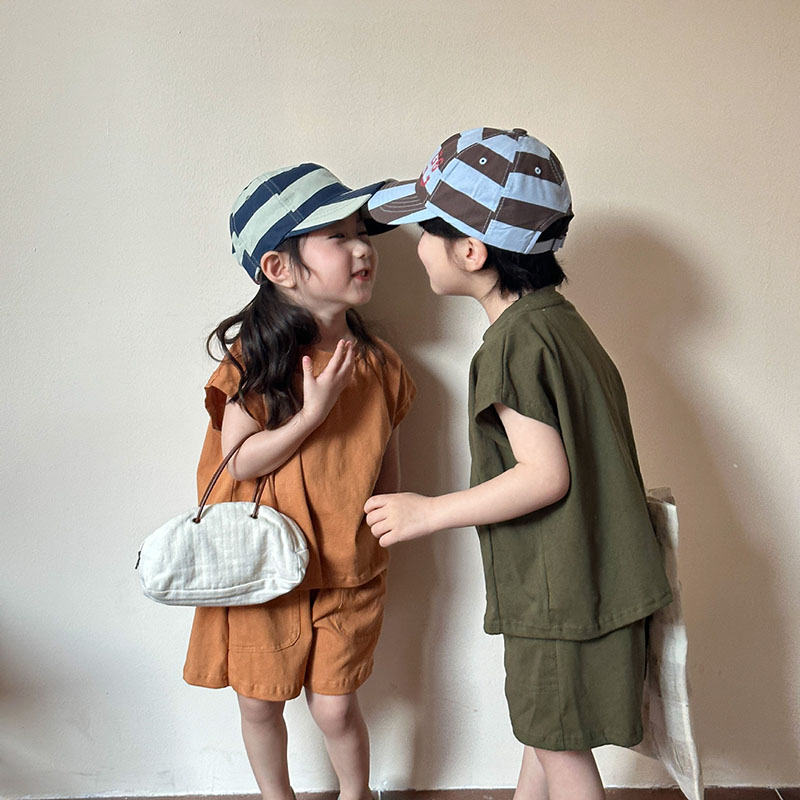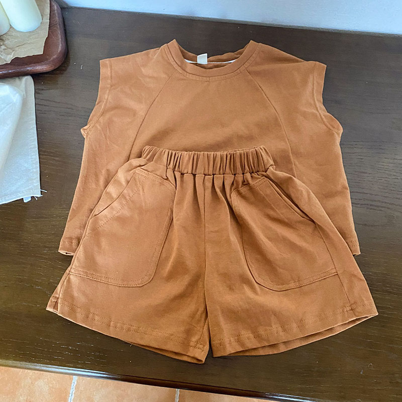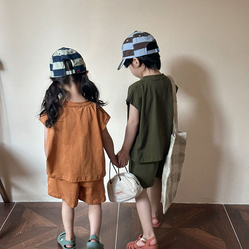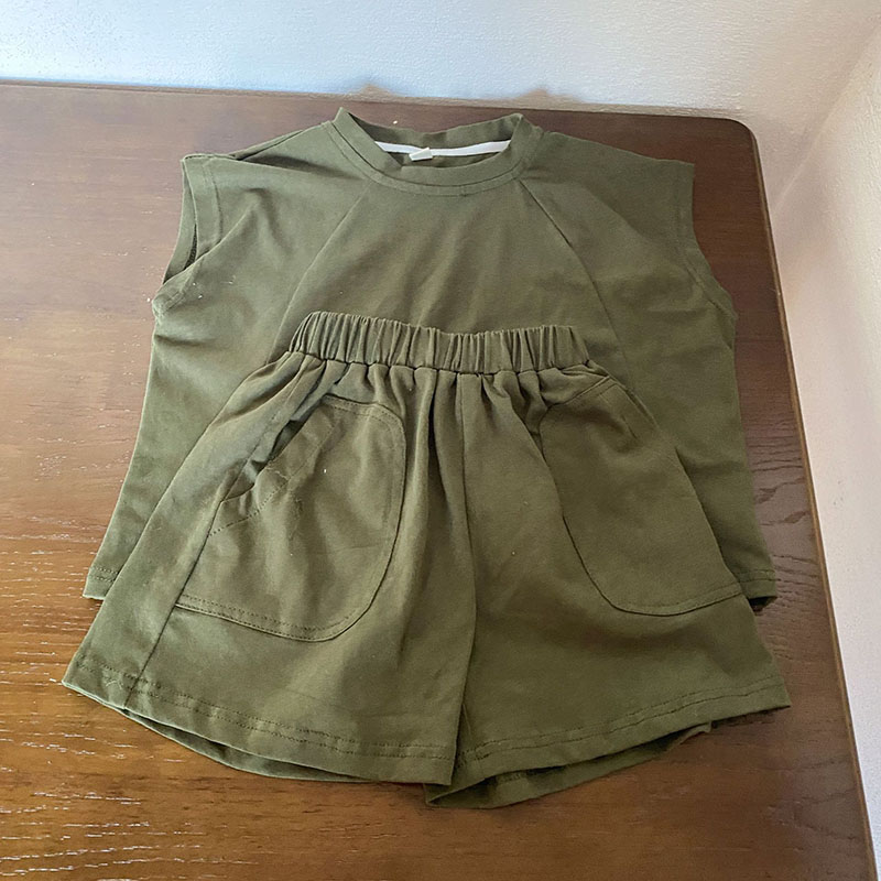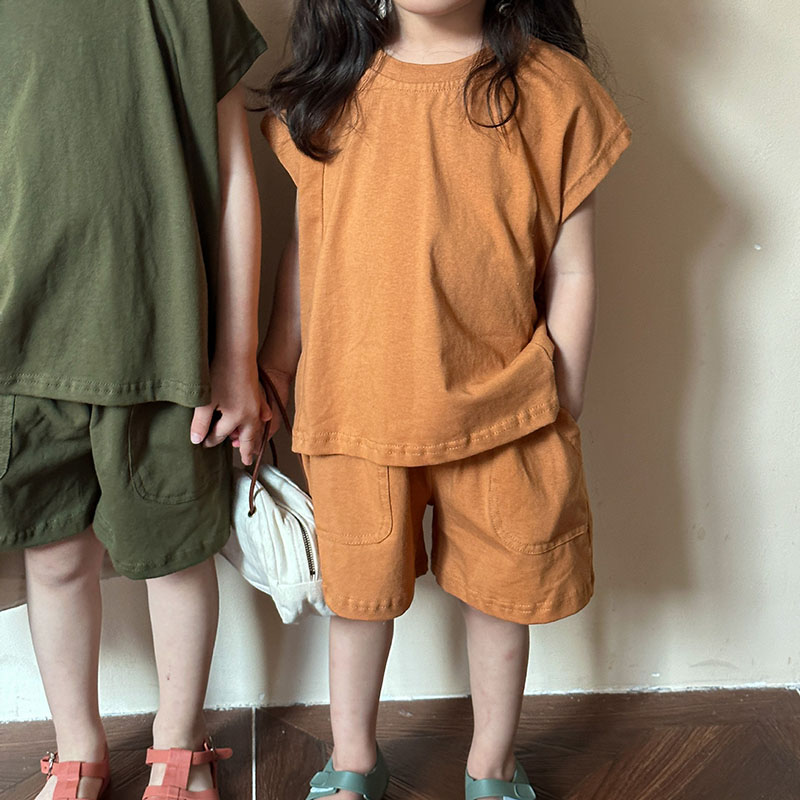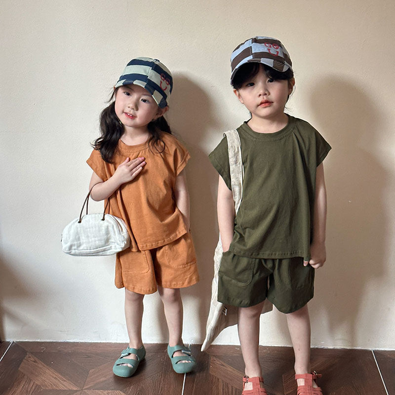 韓国風子供服 春夏 男女 ノースリーブ ハーフパンツ トップス+ズボン Tシャツ上着 上下セット 80-150cm