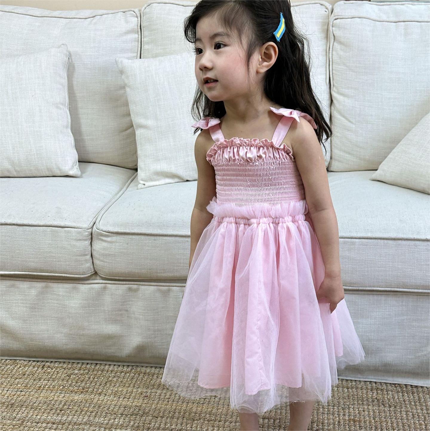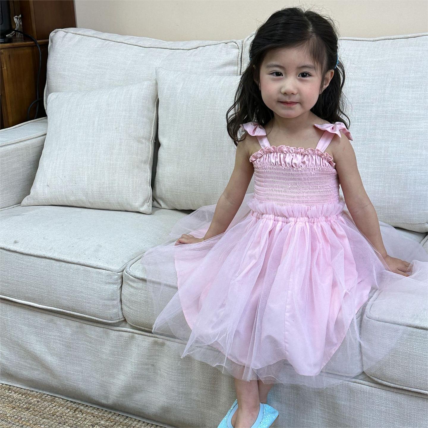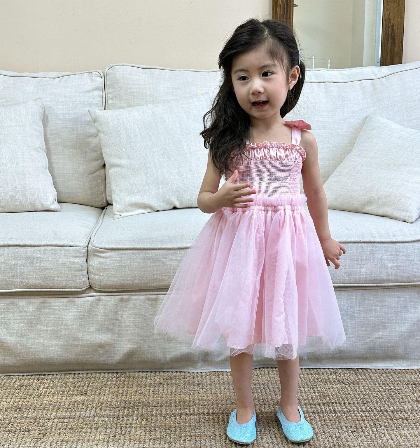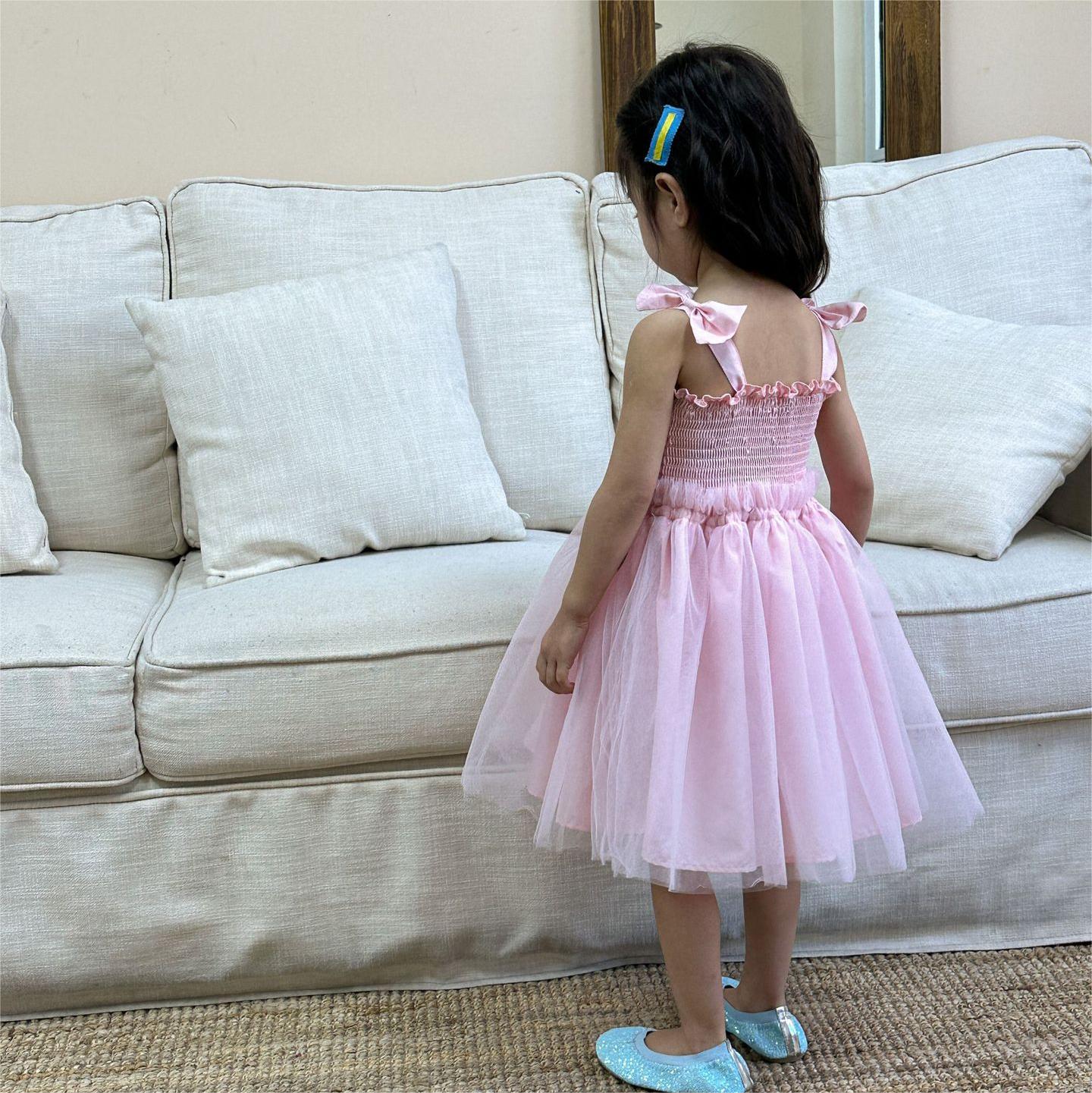 韓国風子供服 キッズ春夏 ワンピース リボン ノースリーブ ワンピ フリル チュールスカート 90-120cm