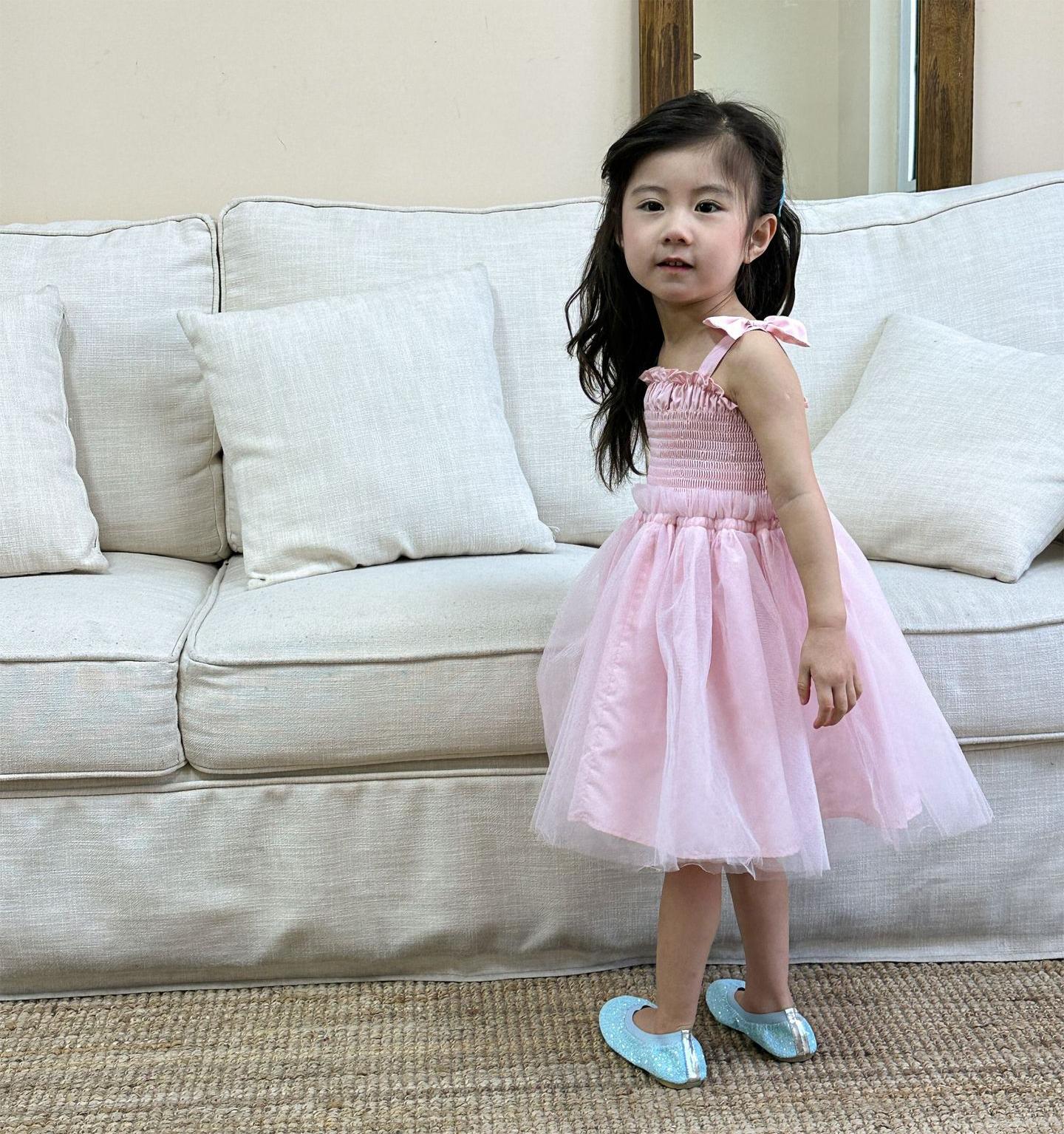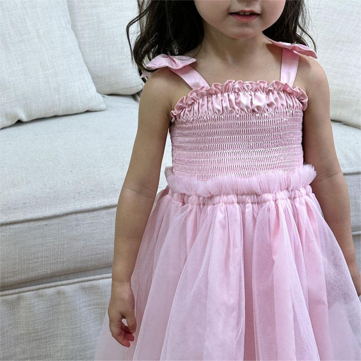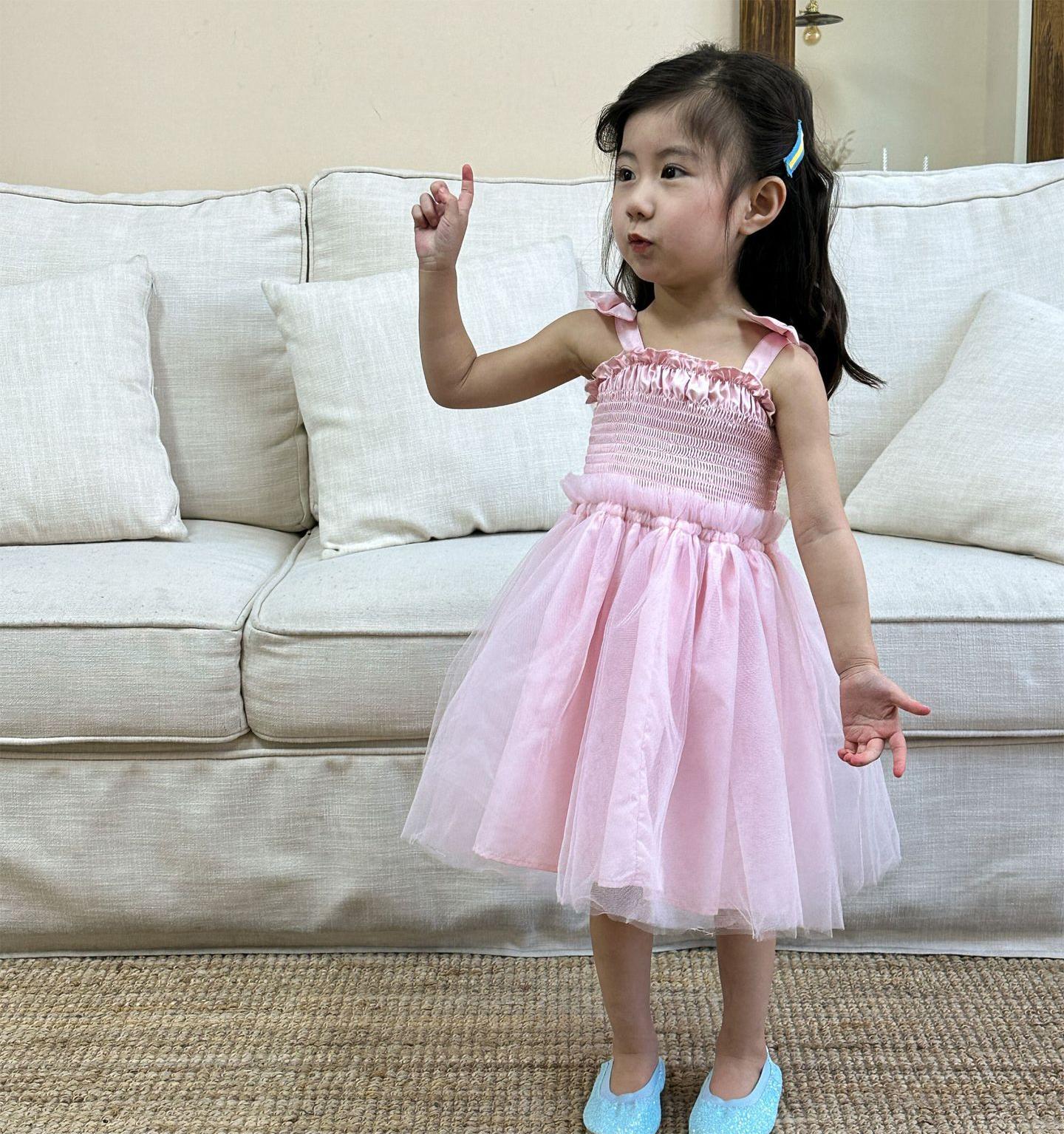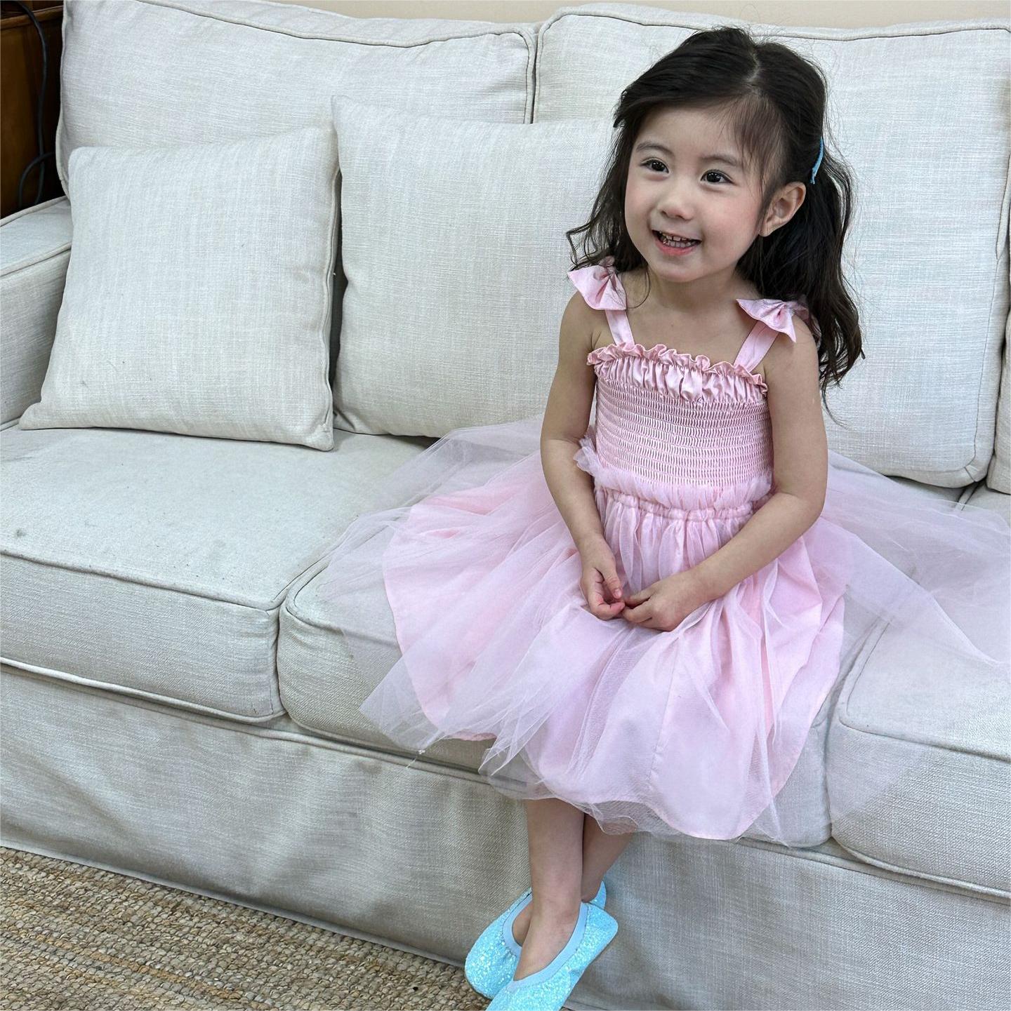 韓国風子供服 キッズ春夏 ワンピース リボン ノースリーブ ワンピ フリル チュールスカート 90-120cm