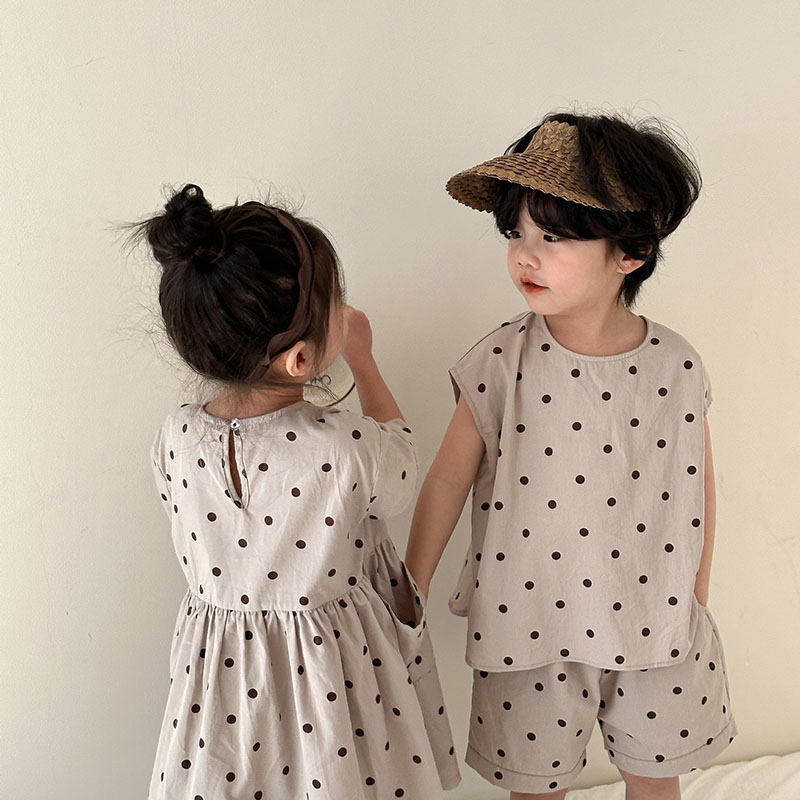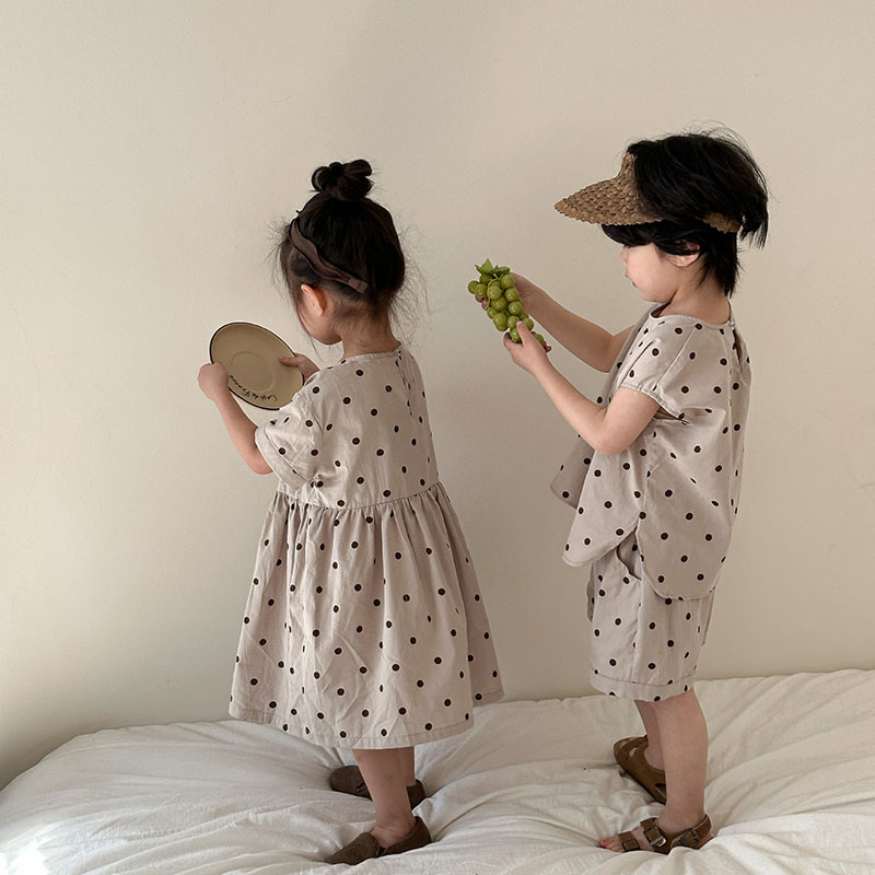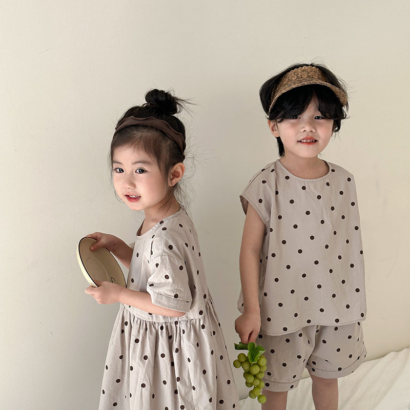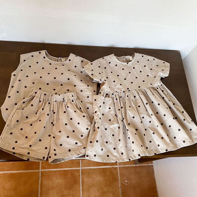 現在カテゴリ:全て商品 > 韓国風子供服 春夏 ドット柄 子供服 ワンピース&上下セット トップス+ズボン80-150cm