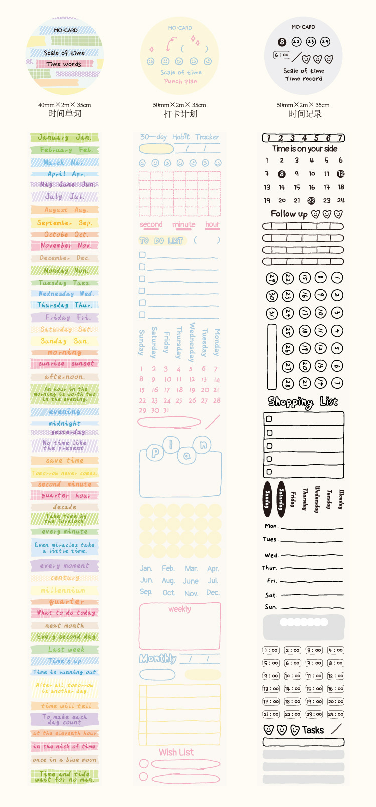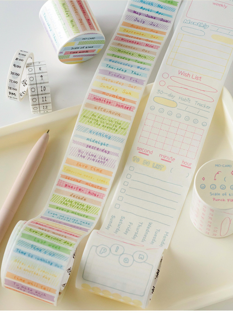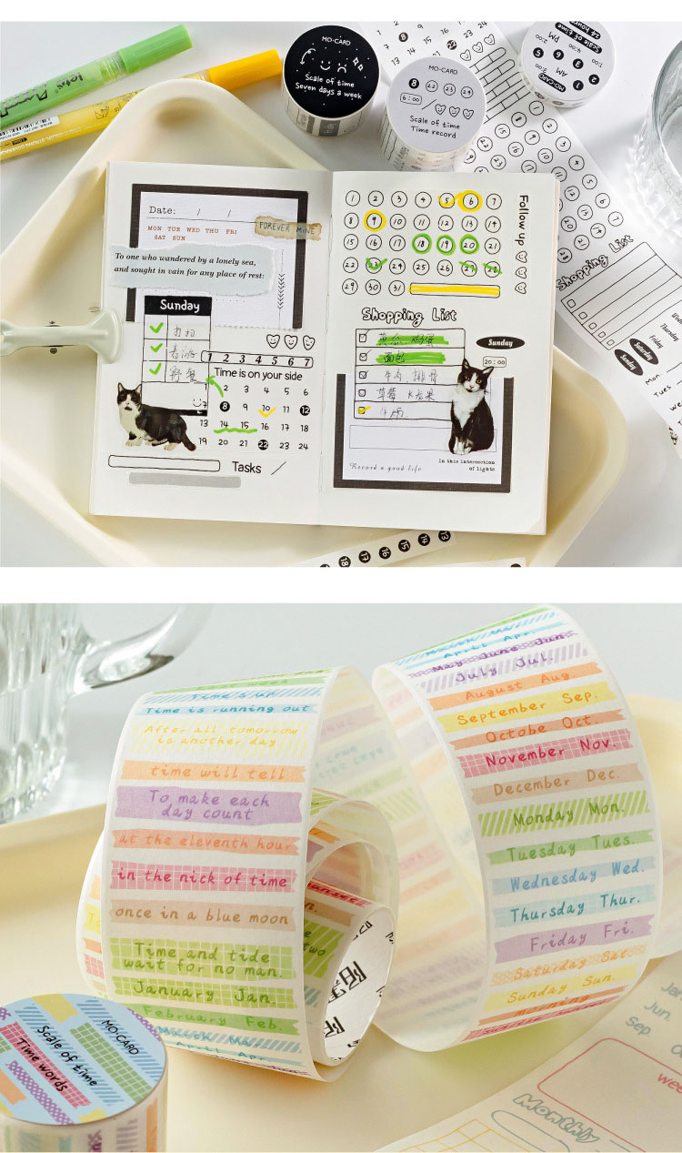 カフェ風 シール ステッカー マスキングテープ 時間 日付 スケジュール 10-15-30-40-50mm*2m