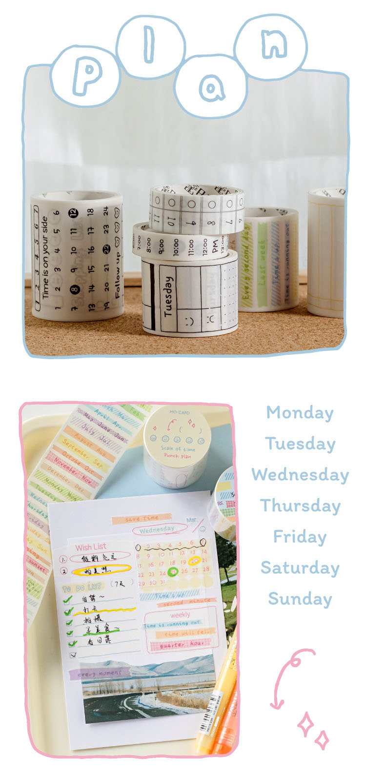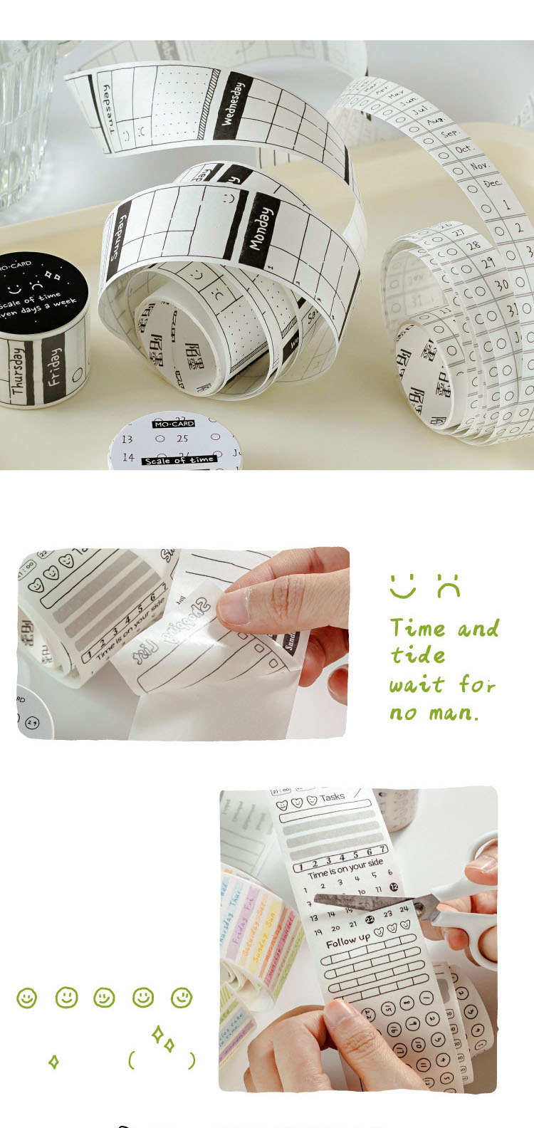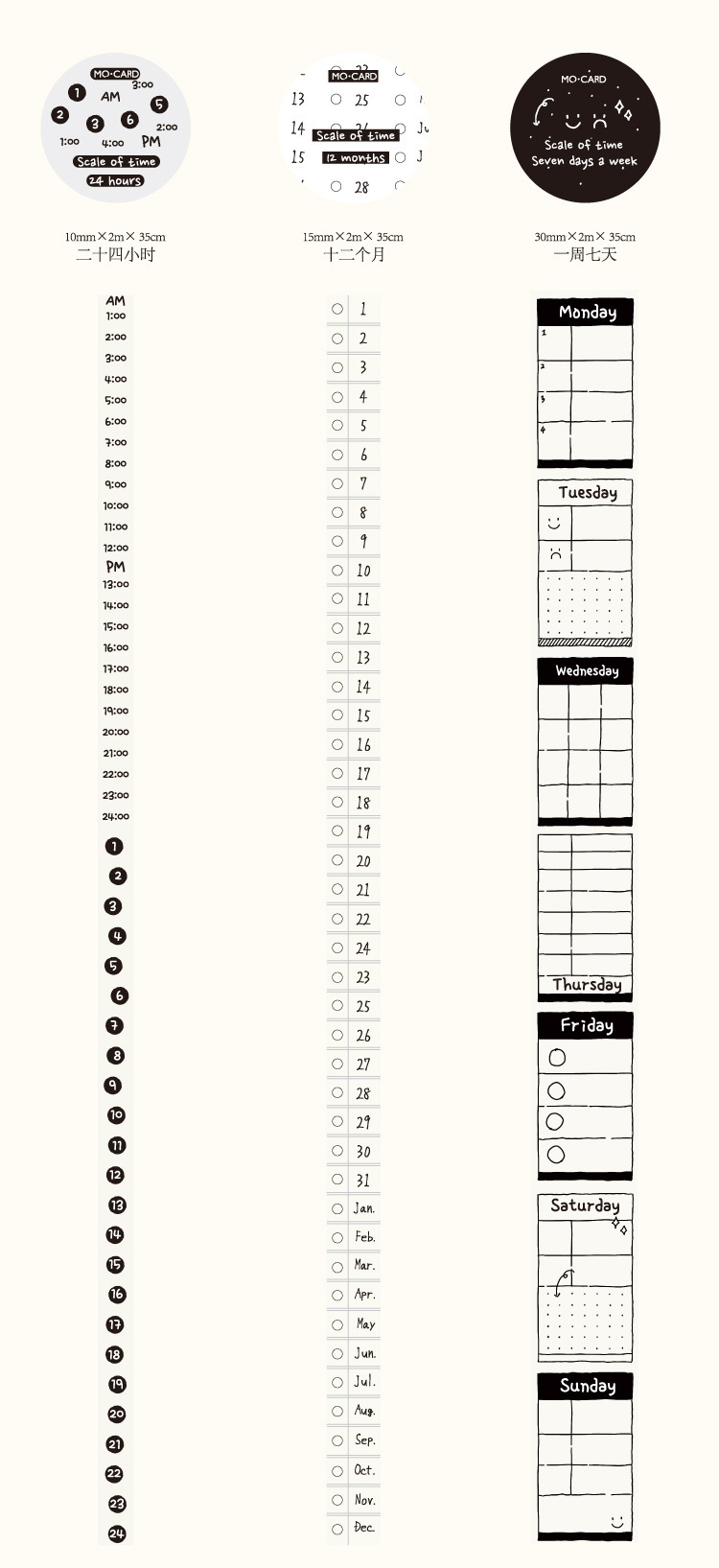 カフェ風 シール ステッカー マスキングテープ 時間 日付 スケジュール 10-15-30-40-50mm*2m