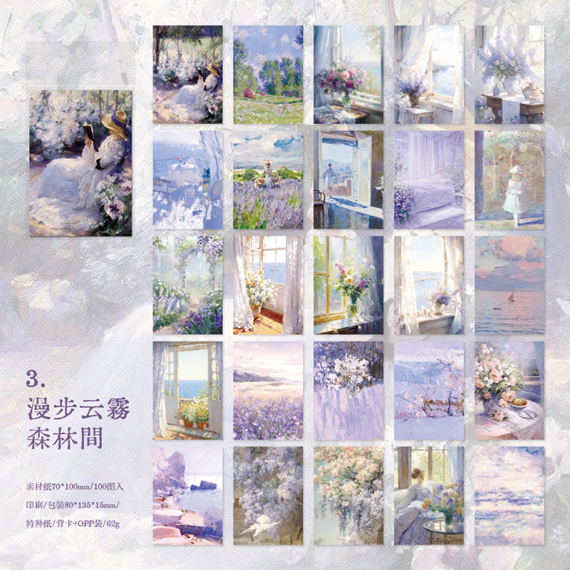 ペーパー素材紙 ミニノート メモ紙 カフェ風 油絵美術館 人物 風景 花フラワー 100枚入