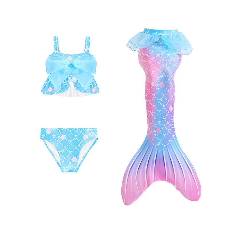 ガール春夏 子供水着 フリル水着 リボン 人魚 マーメイド 女の子 ビキニ3点組 ビーチ コスプレ110-150