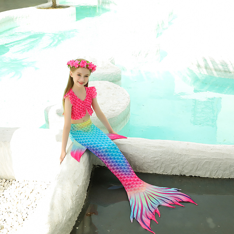 ガールズ 子供水着 春夏 フリル水着 人魚 マーメイド 女の子 タンキニ3点セット ビーチ コスプレ 110-150