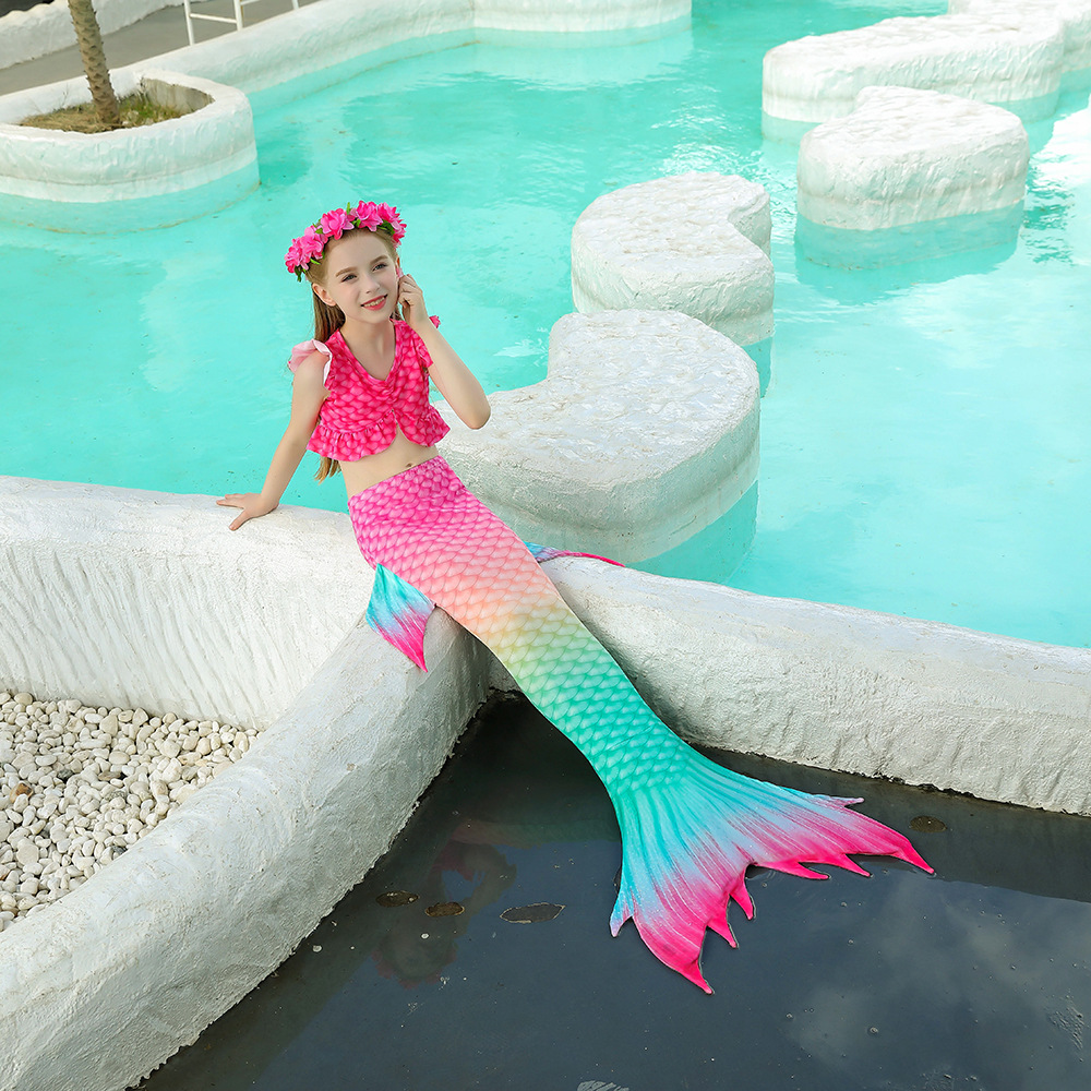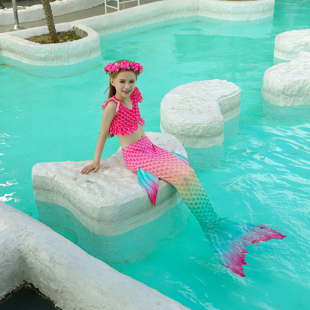 ガールズ 子供水着 春夏 フリル水着 人魚 マーメイド 女の子 タンキニ3点セット ビーチ コスプレ 110-150