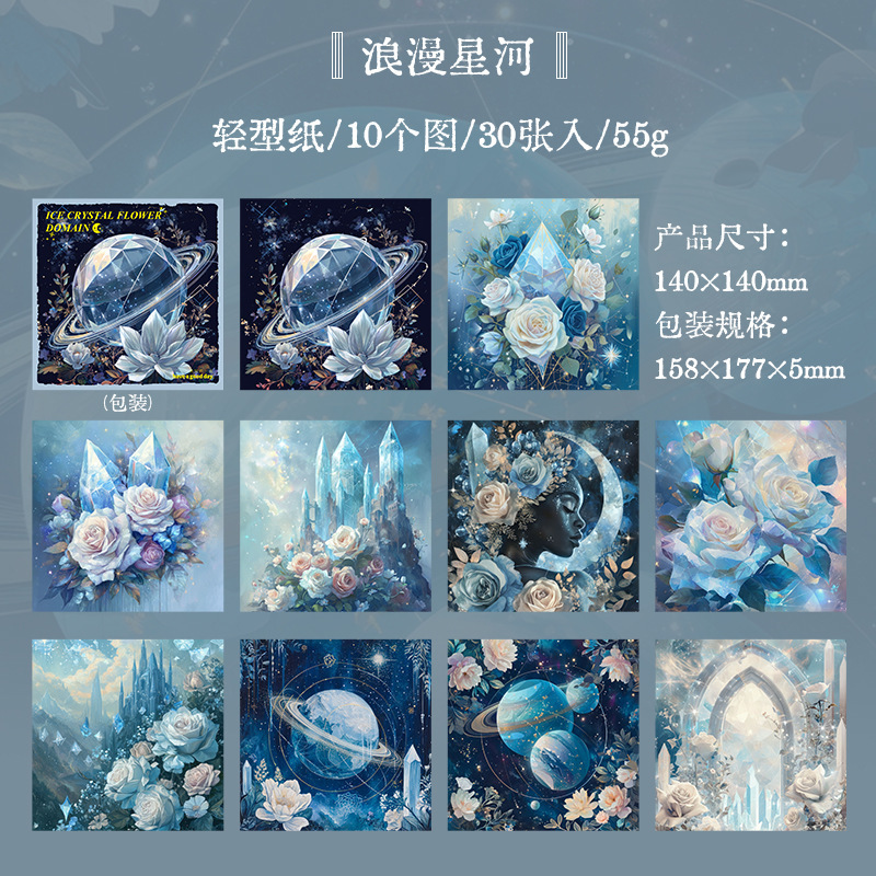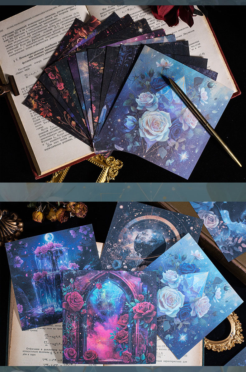 ペーパー 素材紙 アンティーク イラスト メモ紙 森 天体星空 花フラワー 薔薇ローズ クリスタル 30枚入