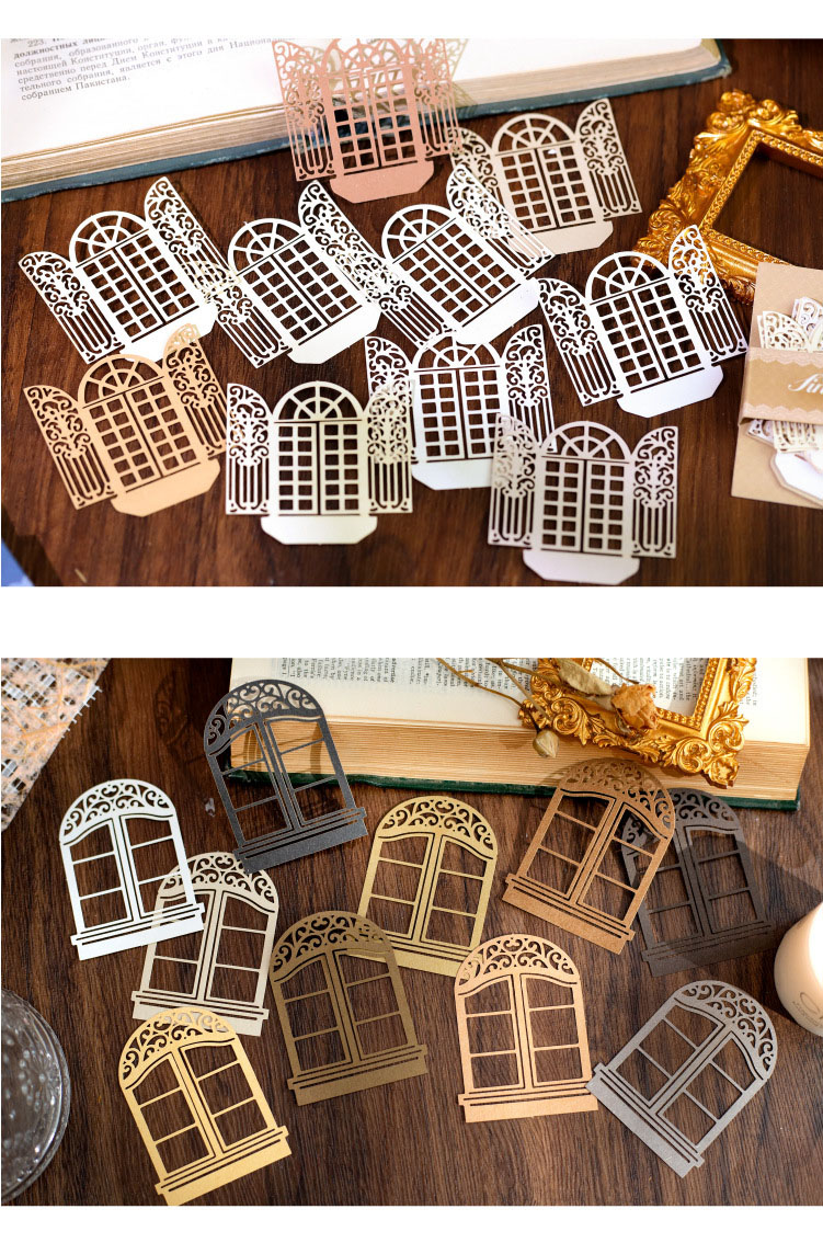カフェ風 ペーパー アンティーク メモ紙素材紙 幾何学 透かし彫り 窓 10枚入