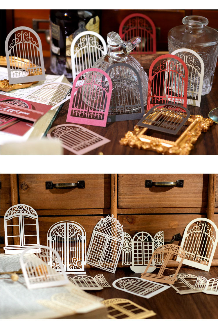 現在カテゴリ:全て商品 > カフェ風 ペーパー アンティーク メモ紙素材紙 幾何学 透かし彫り 窓 10枚入