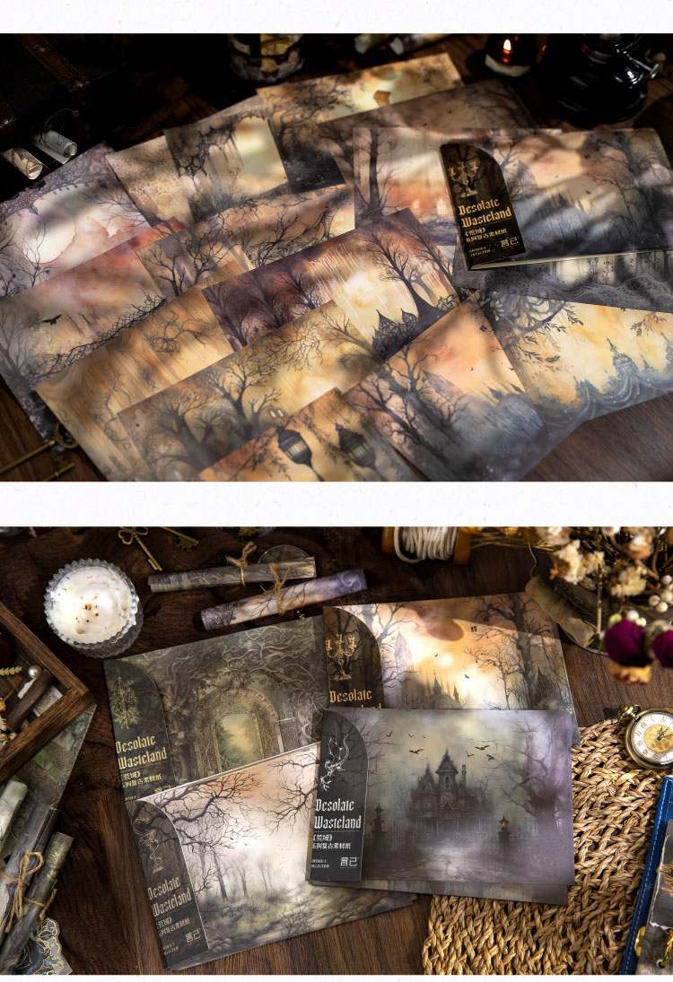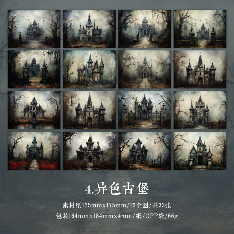 現在カテゴリ:全て商品 > カフェ風 ペーパー アンティーク メモ紙素材紙 ダーク系風景 城 森 32枚入