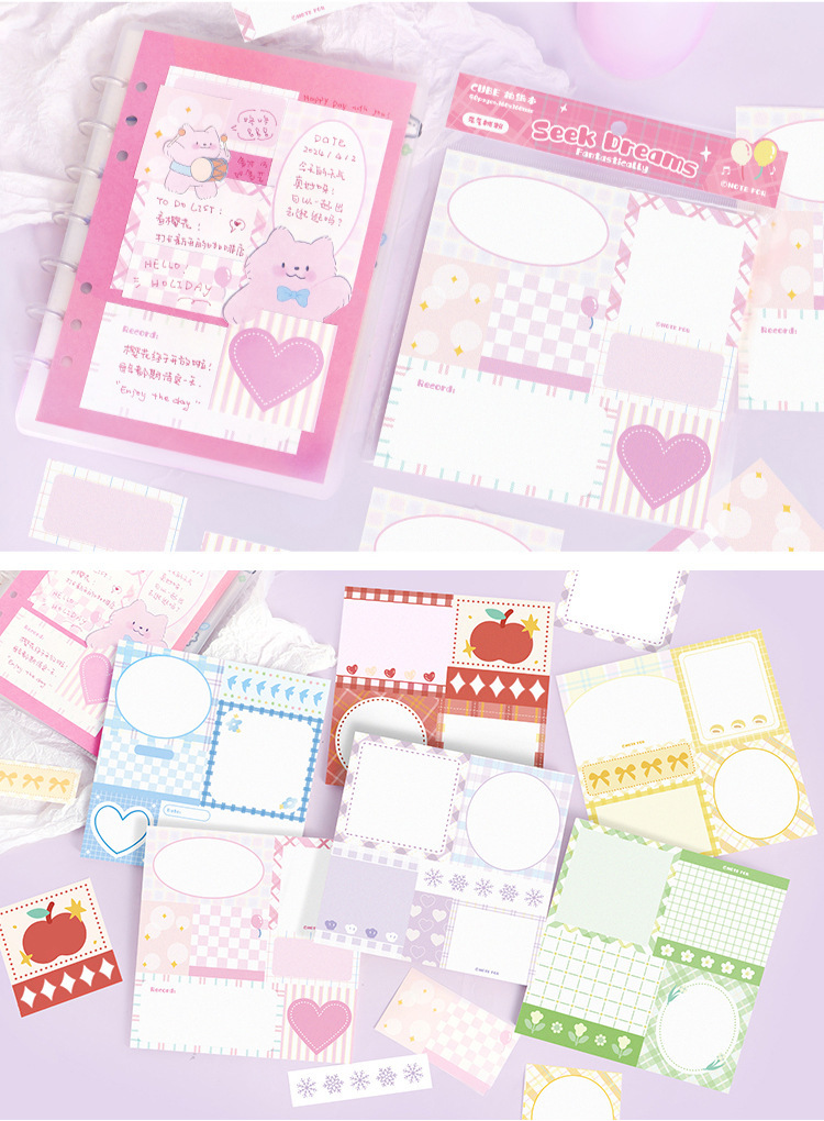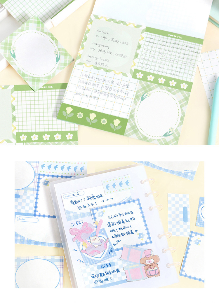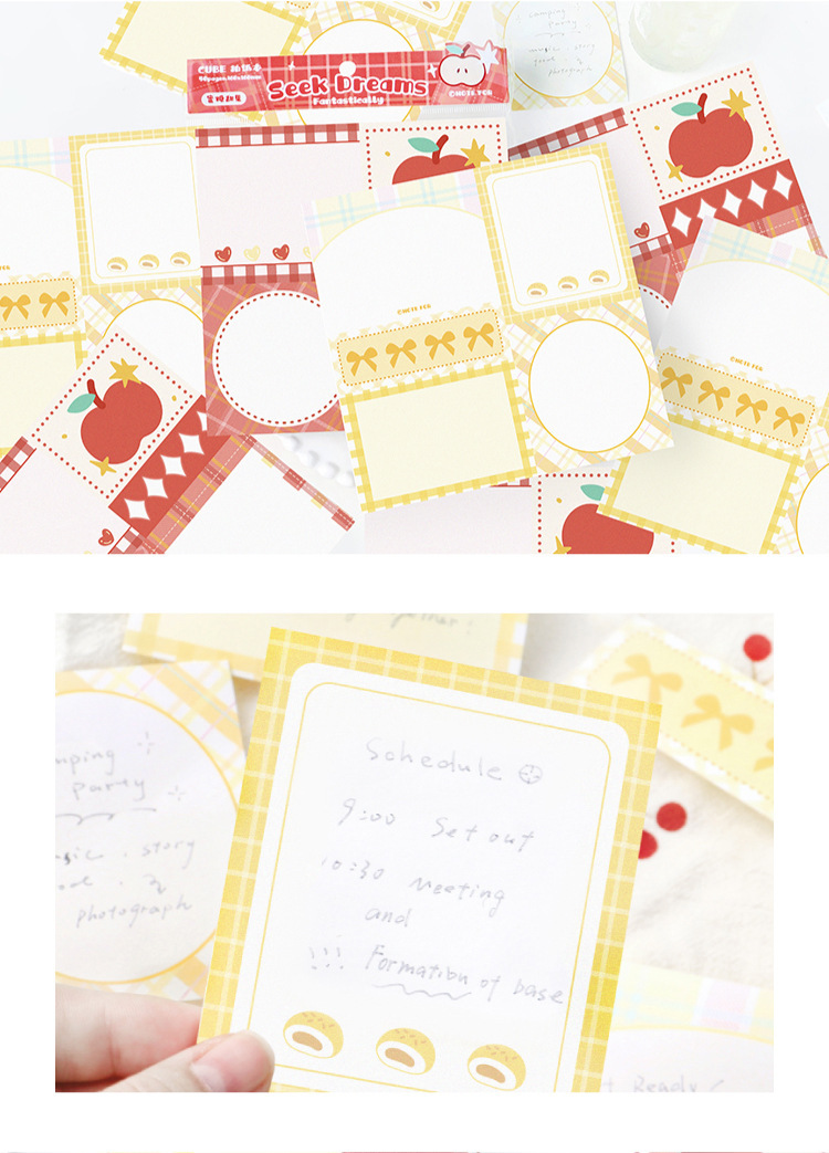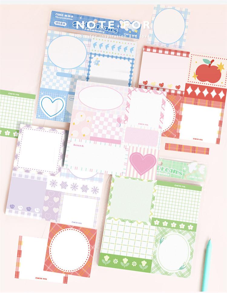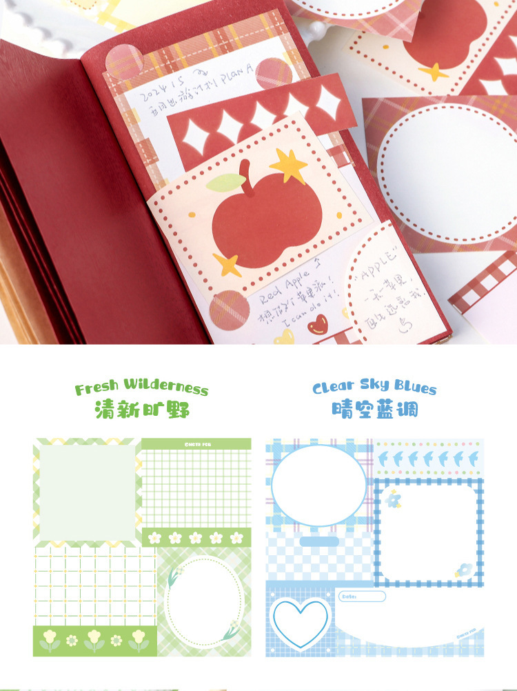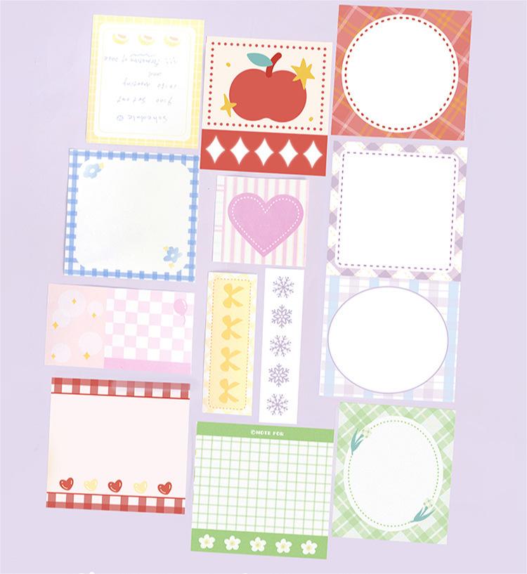 カフェ風 素材紙メモ紙 ノートペーパー ミニノート チェック柄 枠 リボン リンゴ ハート 50枚入