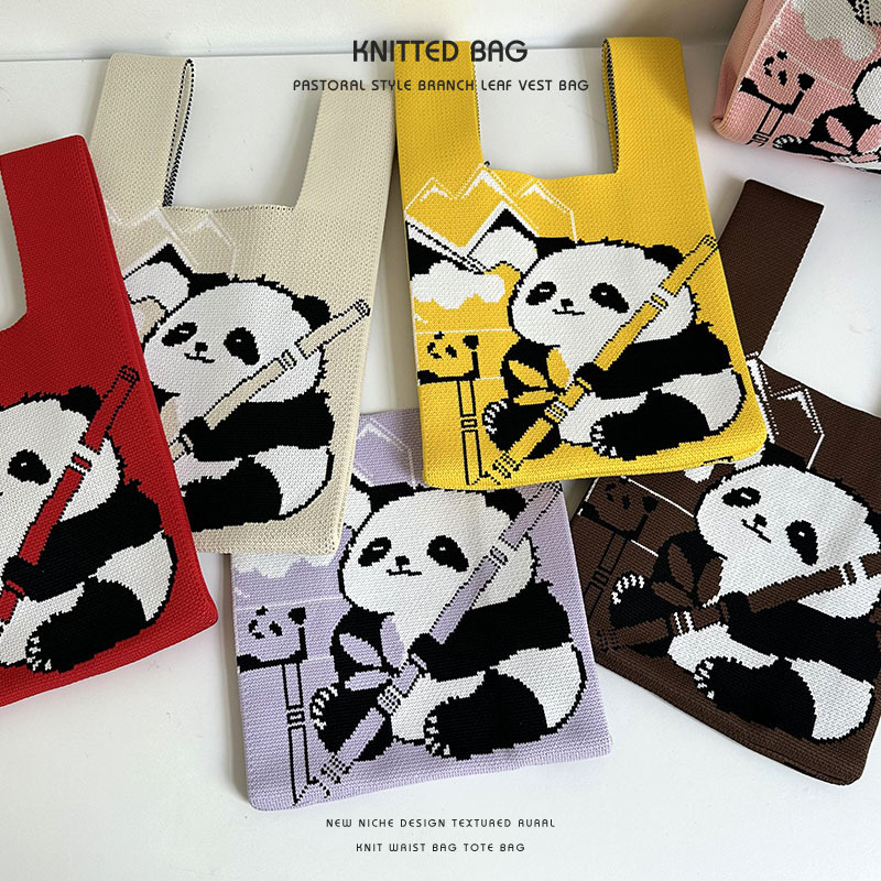 バッグ★レディース★トートバッグ★ハンドバッグ★ニットバッグ★大容量★パンダ★8色
