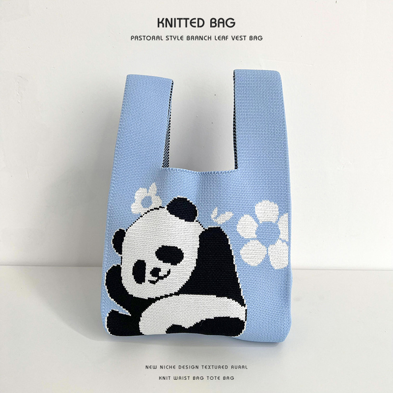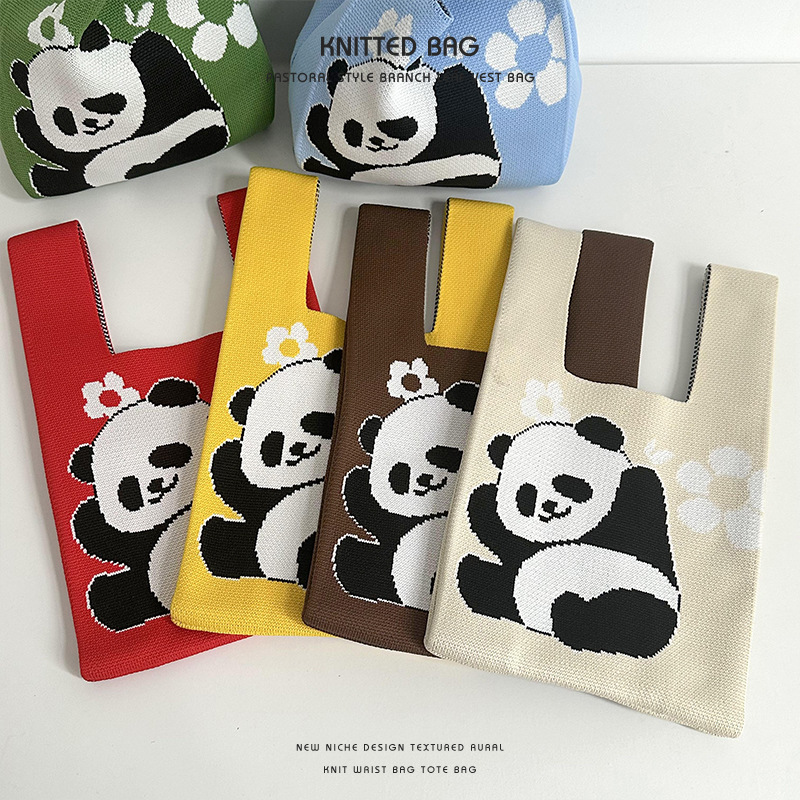 バッグ★レディース★トートバッグ★ハンドバッグ★ニットバッグ★大容量★パンダ★9色