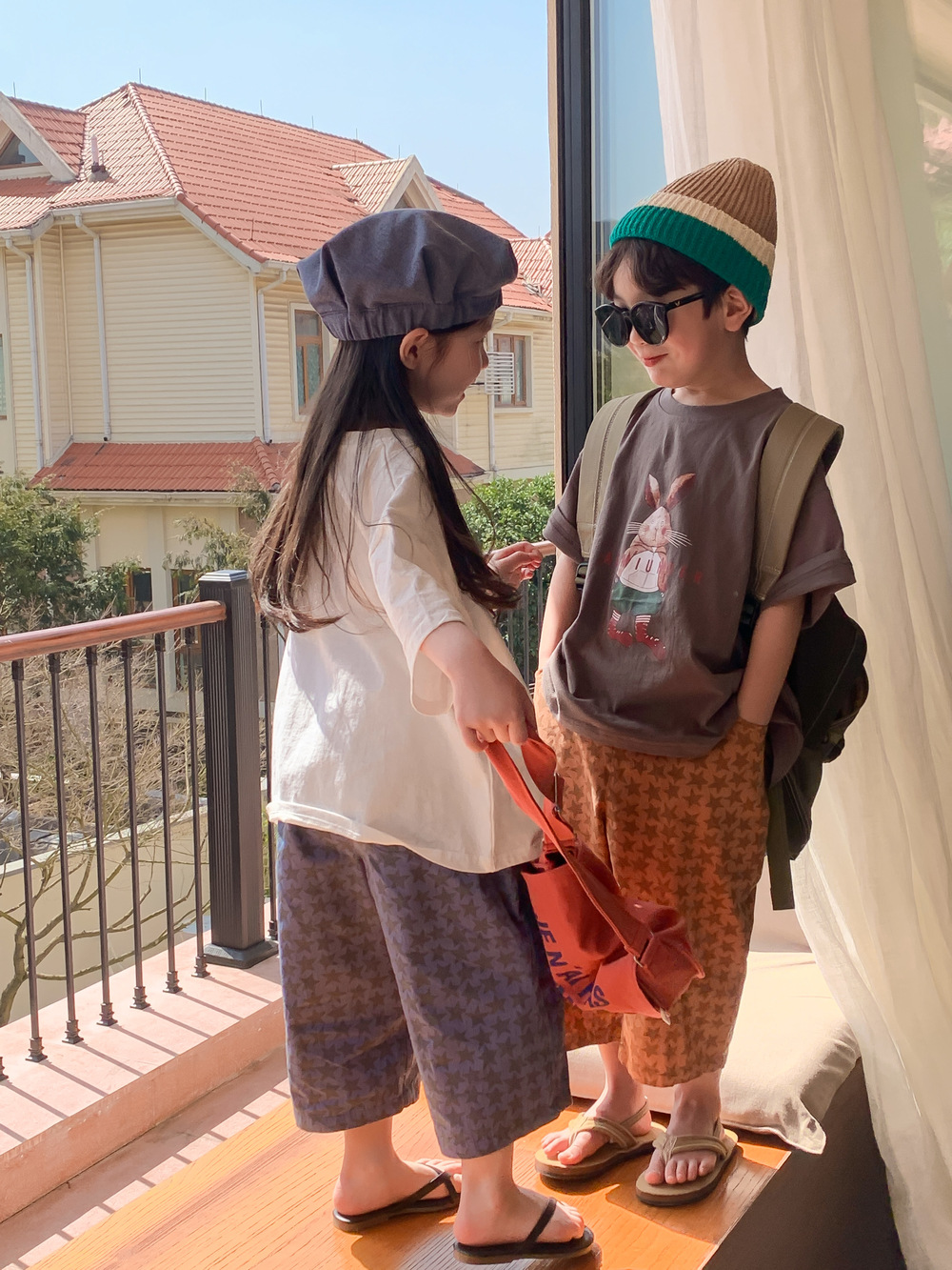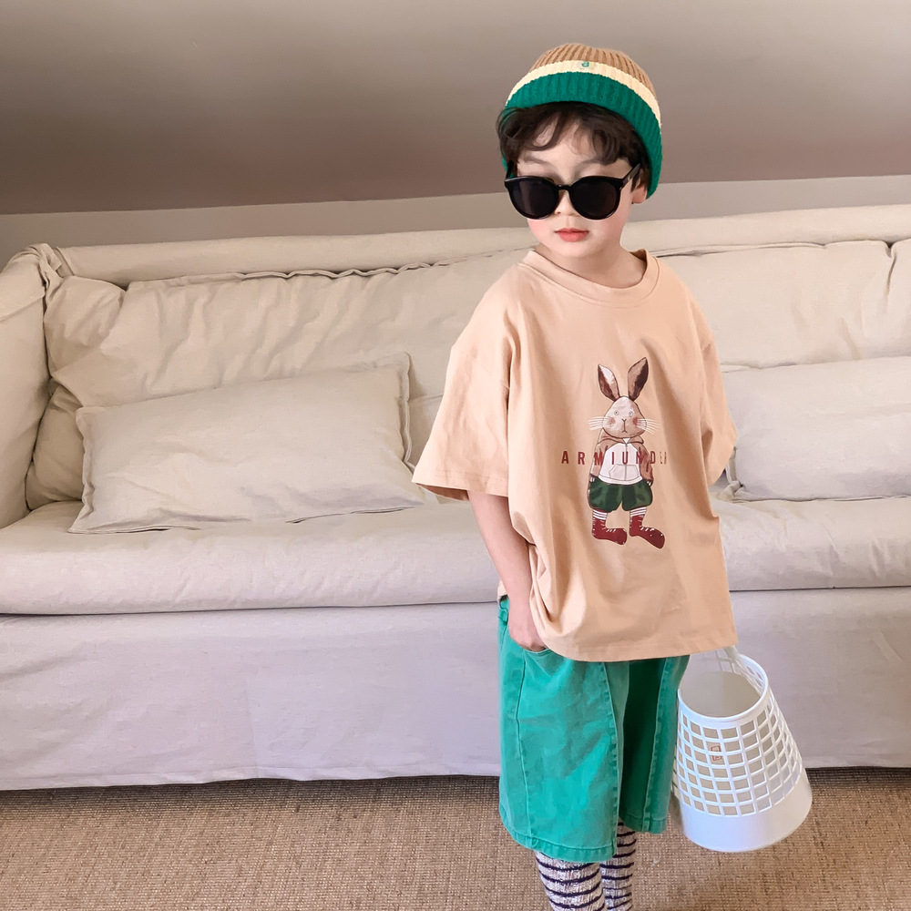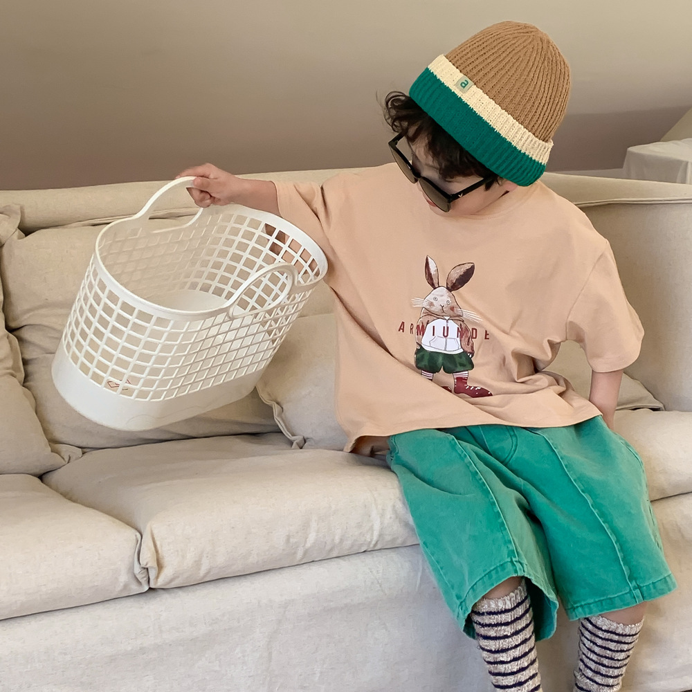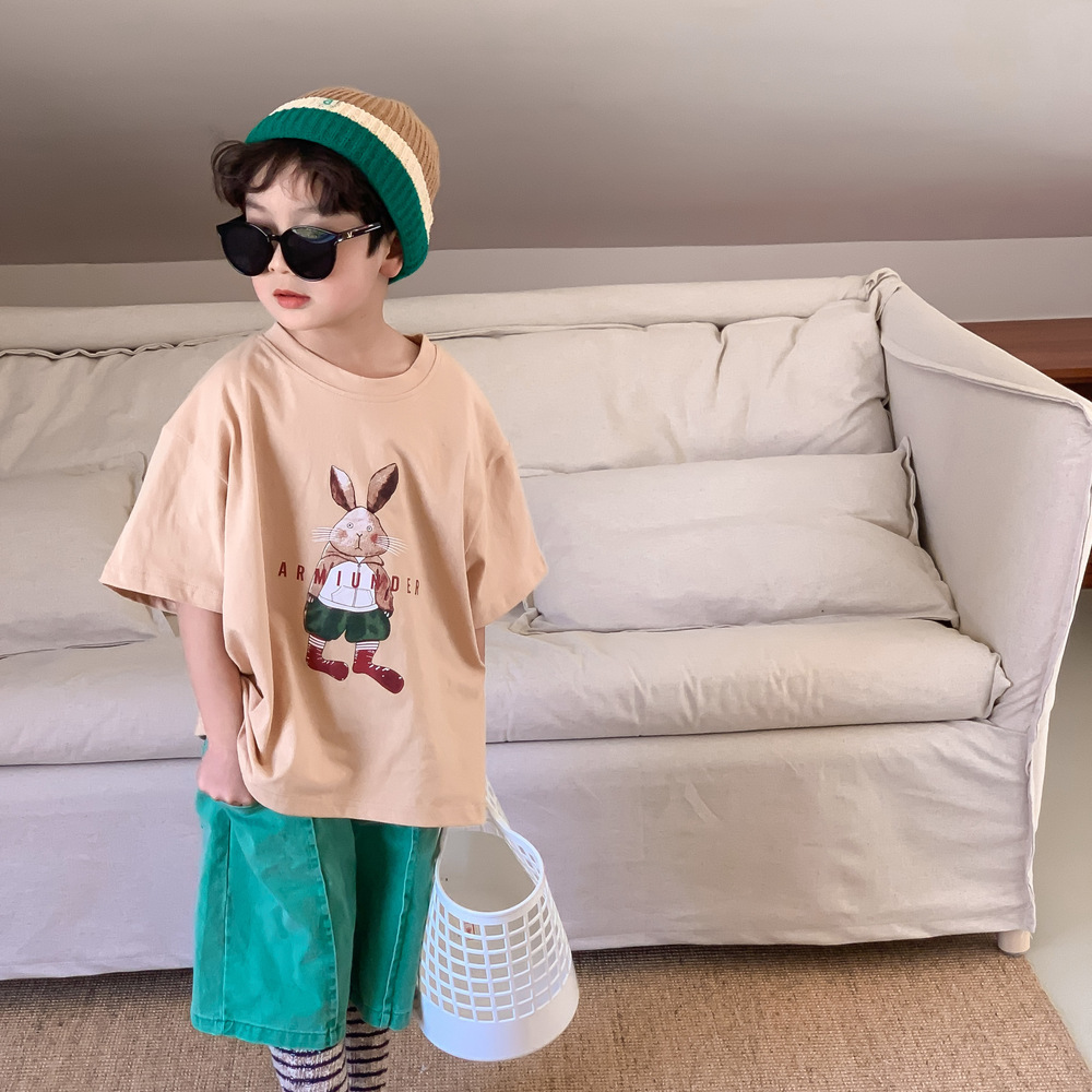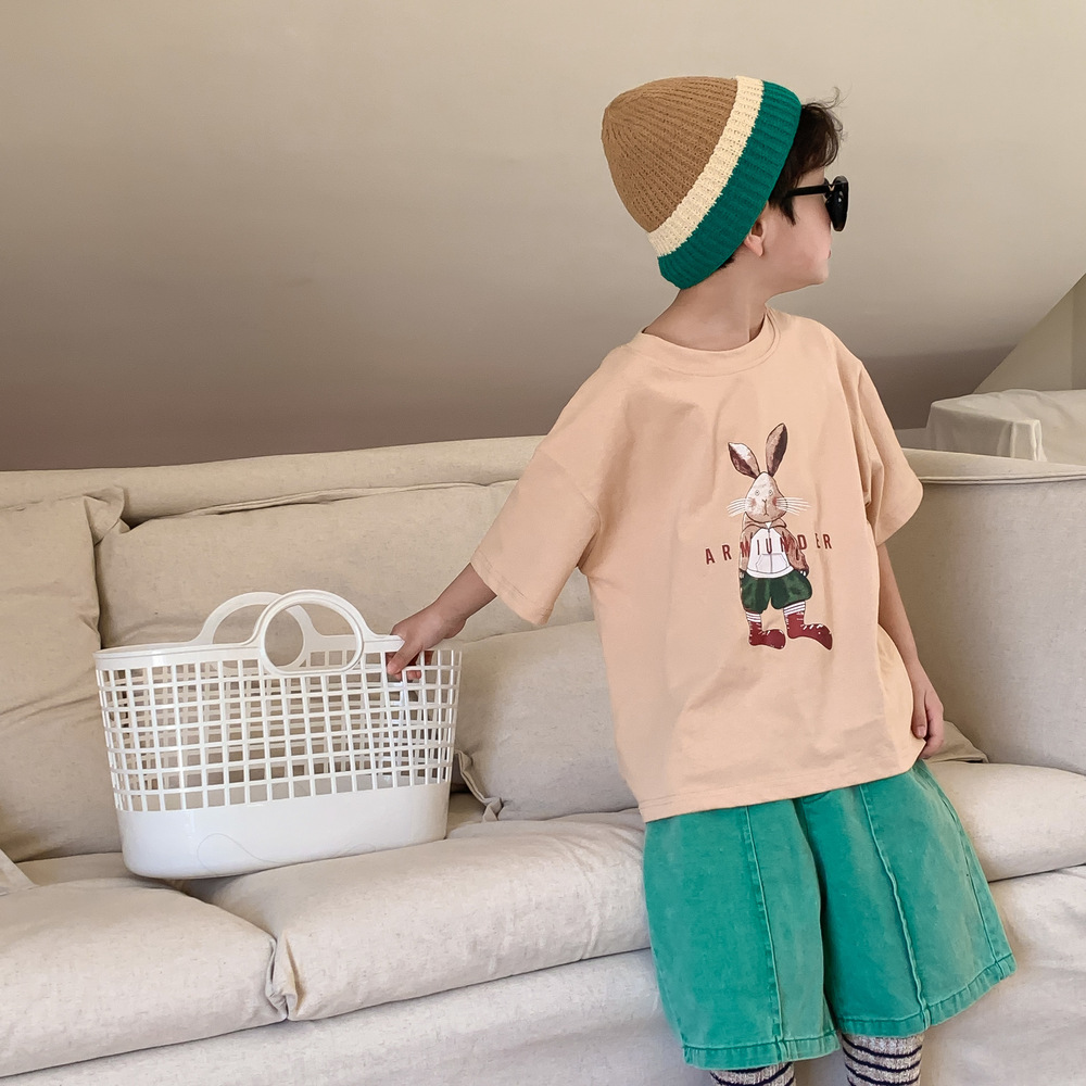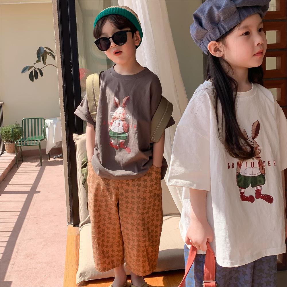 2024春夏 韓国風子供服 姉妹兄弟コーデ ユニセックス ウサギ Tシャツ上着 トップス 90-150cm 2色