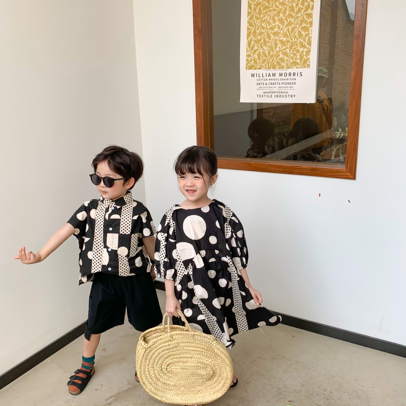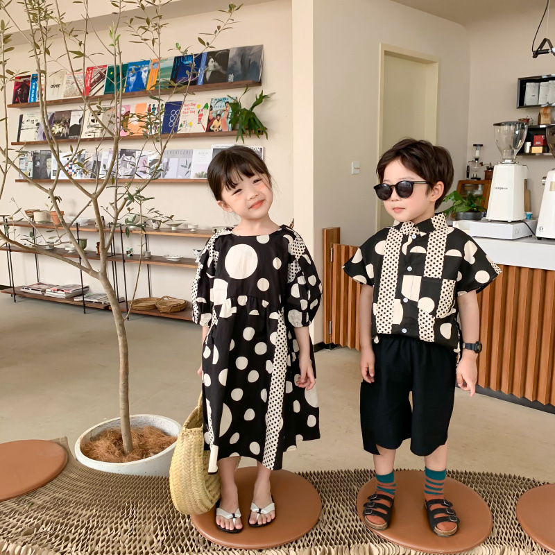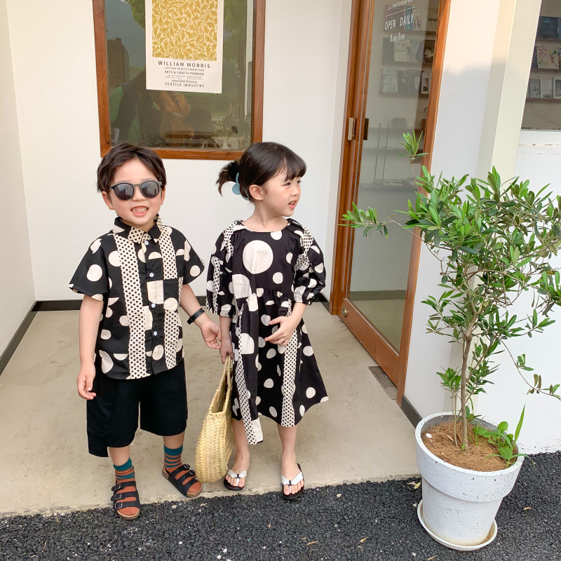 現在カテゴリ:全て商品 > 韓国風子供服 ドット柄 2024春夏 姉妹兄弟コーデ ワンピース&シャツ上着 半ズボン トップス 80-140cm