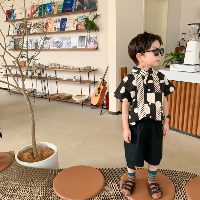 韓国風子供服 ドット柄 2024春夏 姉妹兄弟コーデ ワンピース&シャツ上着 半ズボン トップス 80-140cm