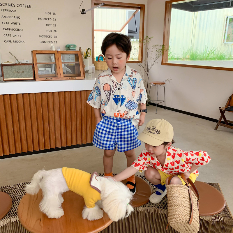 現在カテゴリ:全て商品 > 2024春夏 韓国風子供服 姉妹兄弟コーデ ユニセックス プリント シャツ上着 ブラウス 80-140cm 2色