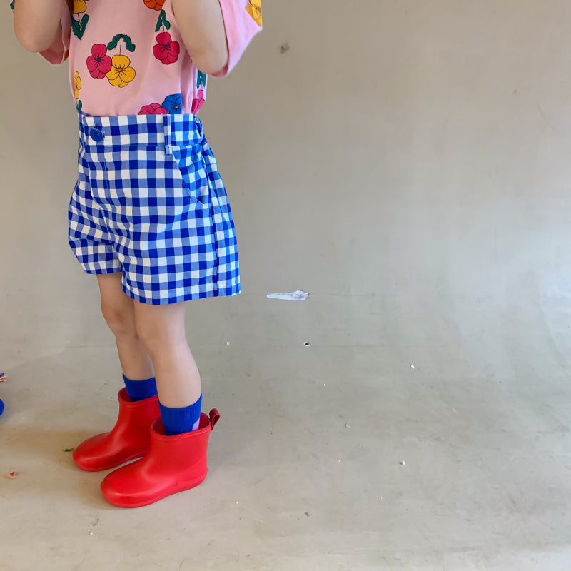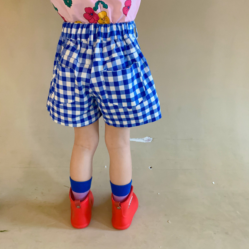 現在カテゴリ:全て商品 > 韓国風子供服 2024春夏 姉妹兄弟コーデ ワイドパンツ 薄い ズボン チェック柄 80-140cm ホットパンツ