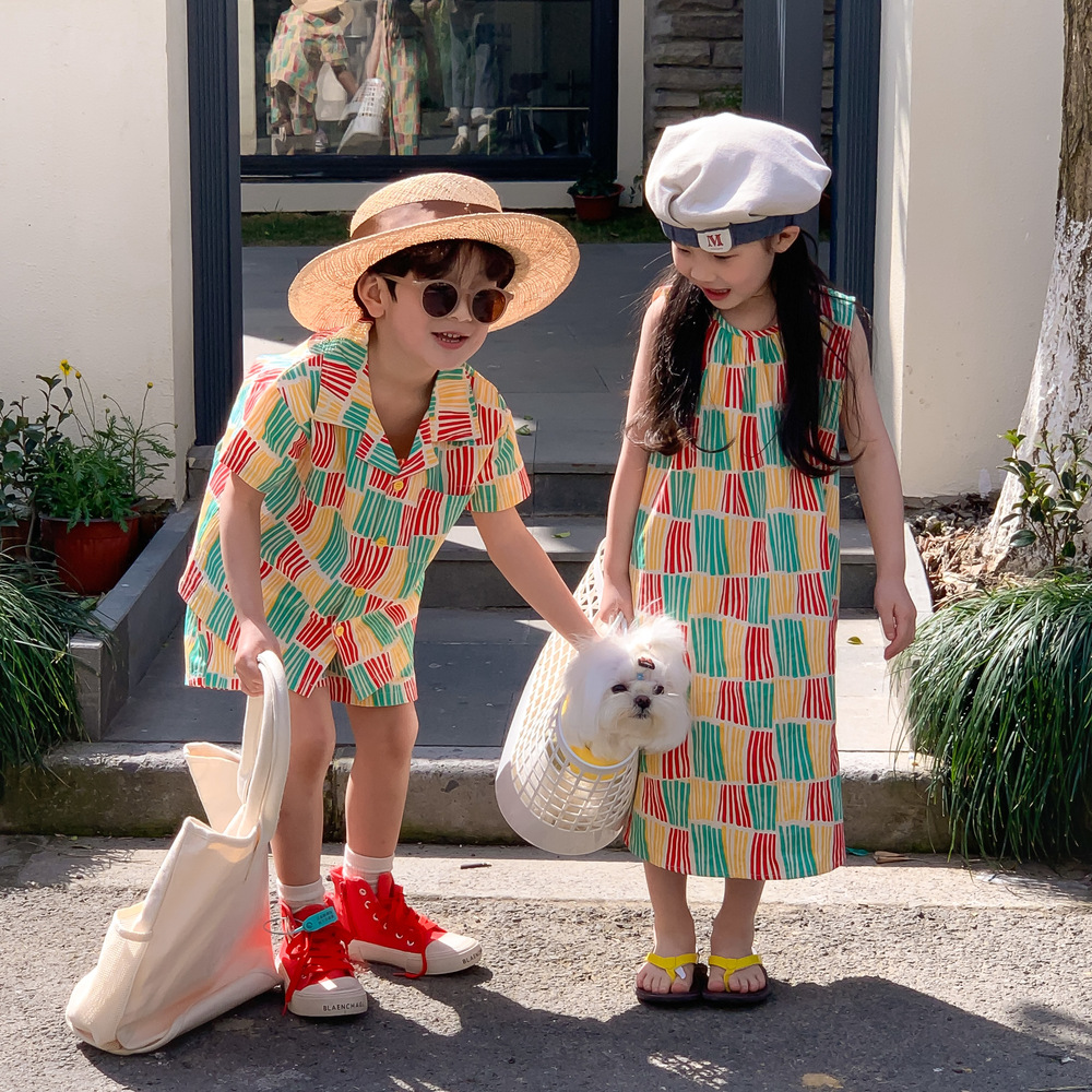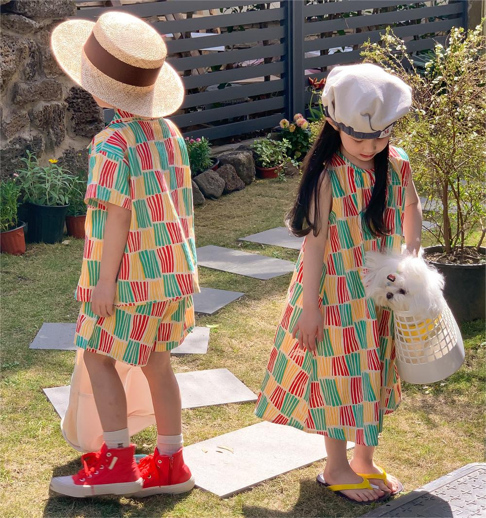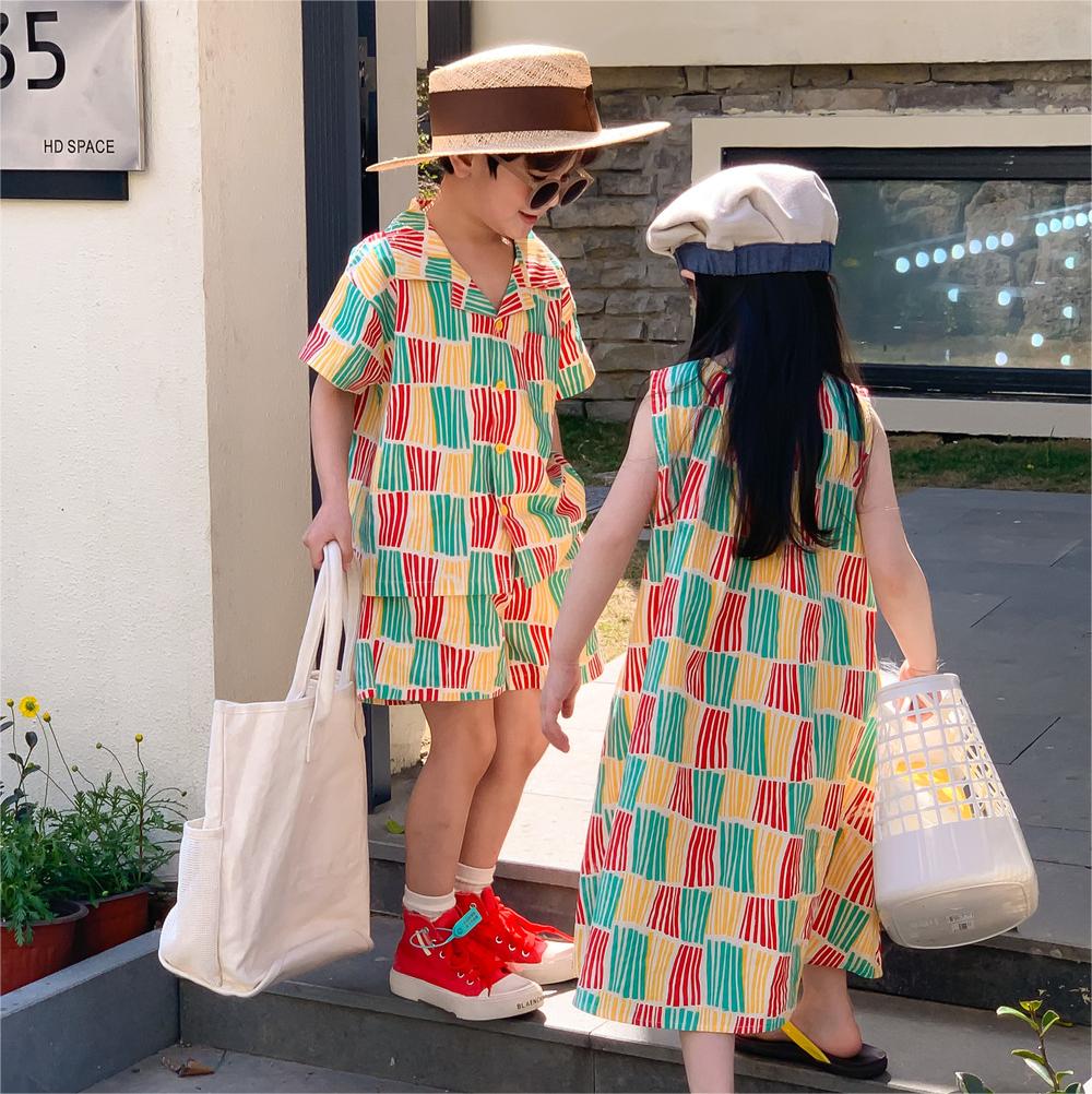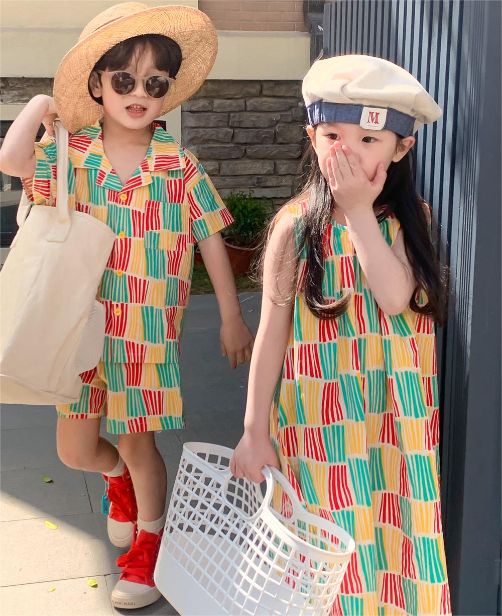 現在カテゴリ:全て商品 > 韓国風子供服 ストライプ柄 2024春夏 姉妹兄弟コーデ ワンピース&シャツ上着 トップ 半ズボン 80-140cm