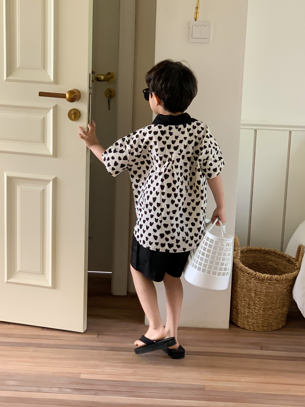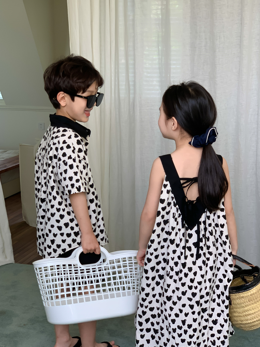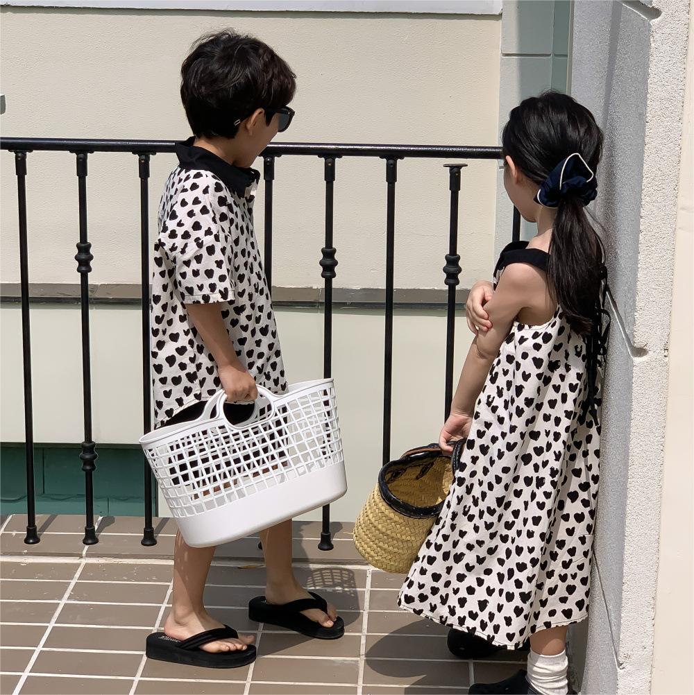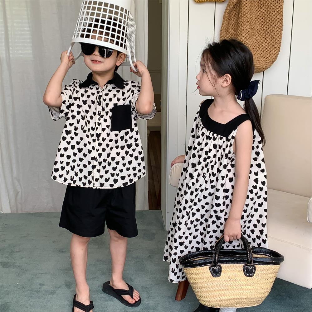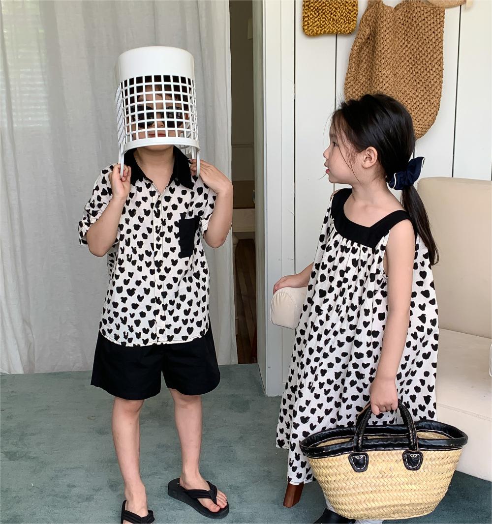 韓国風子供服 ハート 2024春夏 姉妹兄弟コーデ ワンピース&シャツ上着 トップス 半ズボン 90-150cm