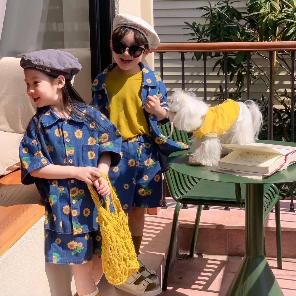 現在カテゴリ:全て商品 > 韓国風子供服 2024春夏 姉妹兄弟コーデ デニム 花柄 上下セット トップス シャツ+ズボン 90-150cm