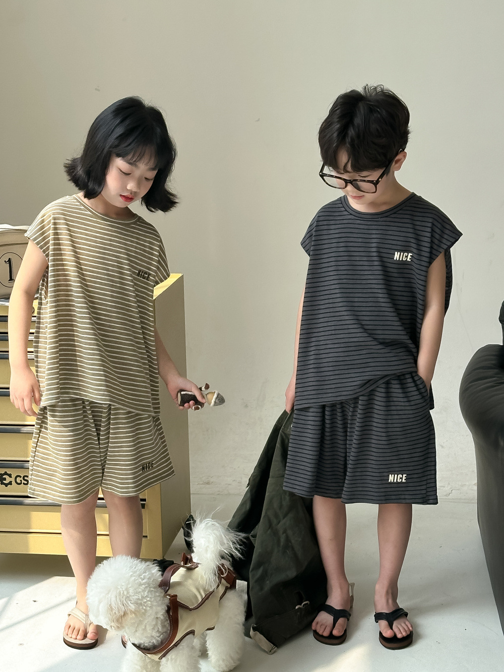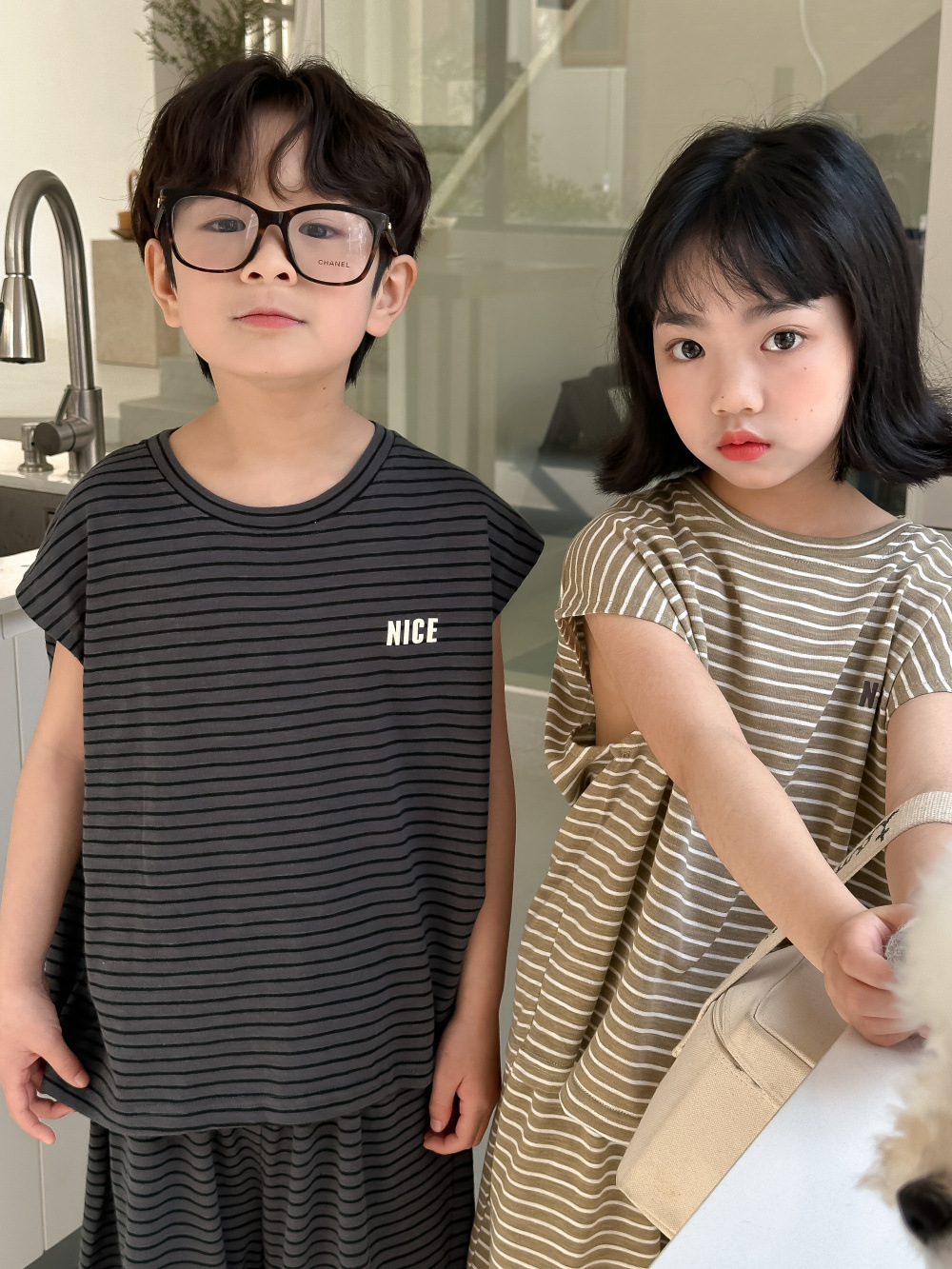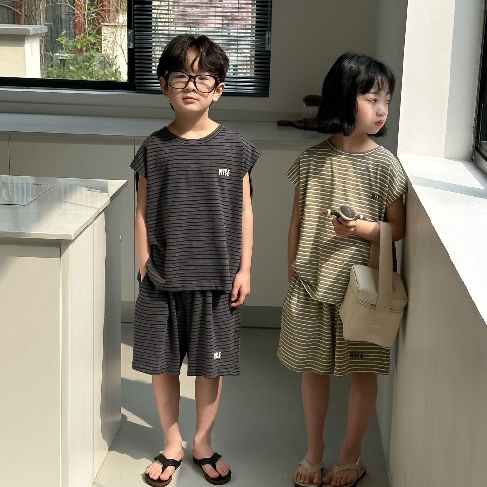 韓国風子供服 2024春夏 姉妹兄弟コーデ ボーダー柄 上下セット トップス+ズボン 90-150cm 2色