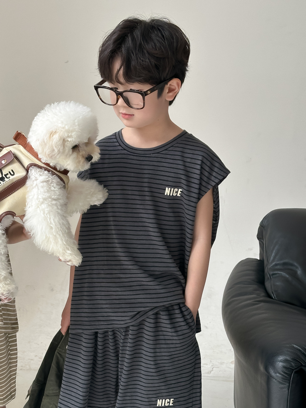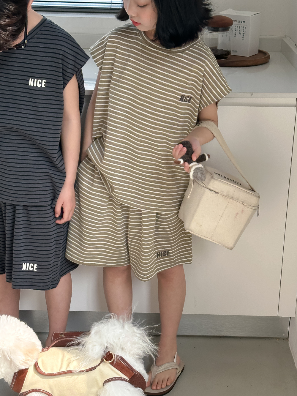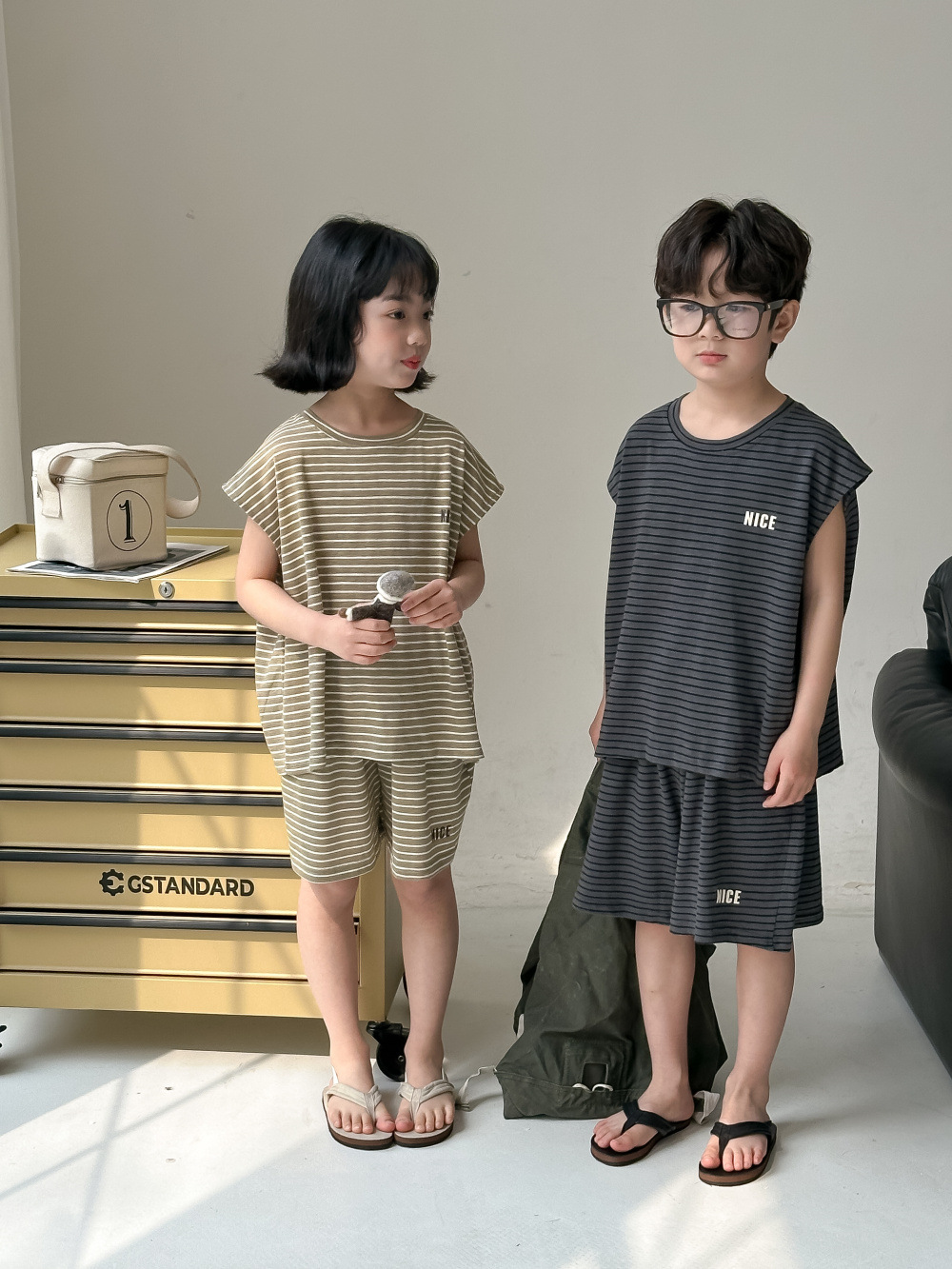 韓国風子供服 2024春夏 姉妹兄弟コーデ ボーダー柄 上下セット トップス+ズボン 90-150cm 2色