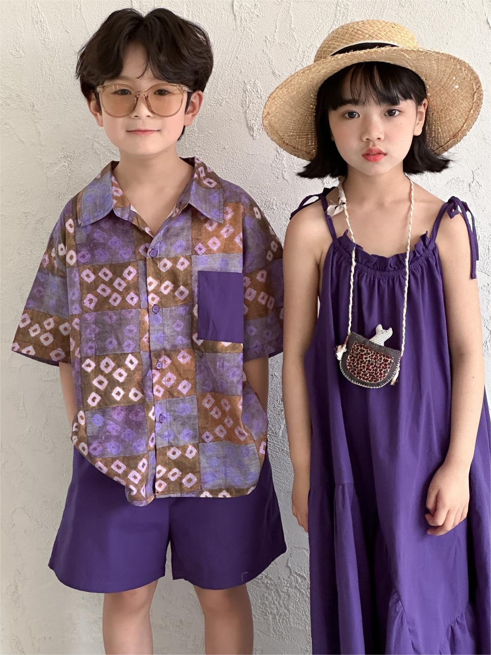 現在カテゴリ:全て商品 > 韓国風子供服 2024春夏 森 ビーチ海 姉妹兄弟コーデ ワンピース&上下セット シャツ+ズボン 90-150cm