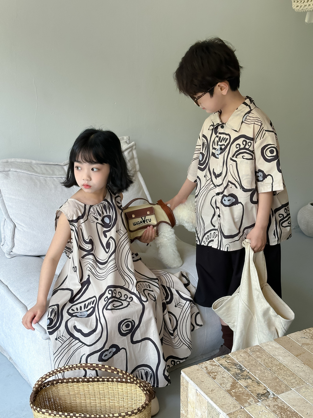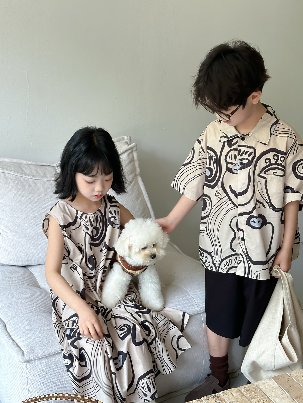 現在カテゴリ:全て商品 > 韓国風子供服 プリント 2024春夏 姉妹兄弟コーデ ワンピース&シャツ上着 トップス 半袖 90-150cm