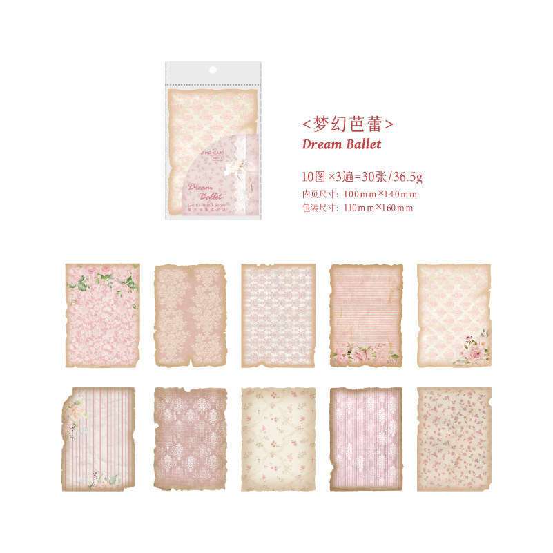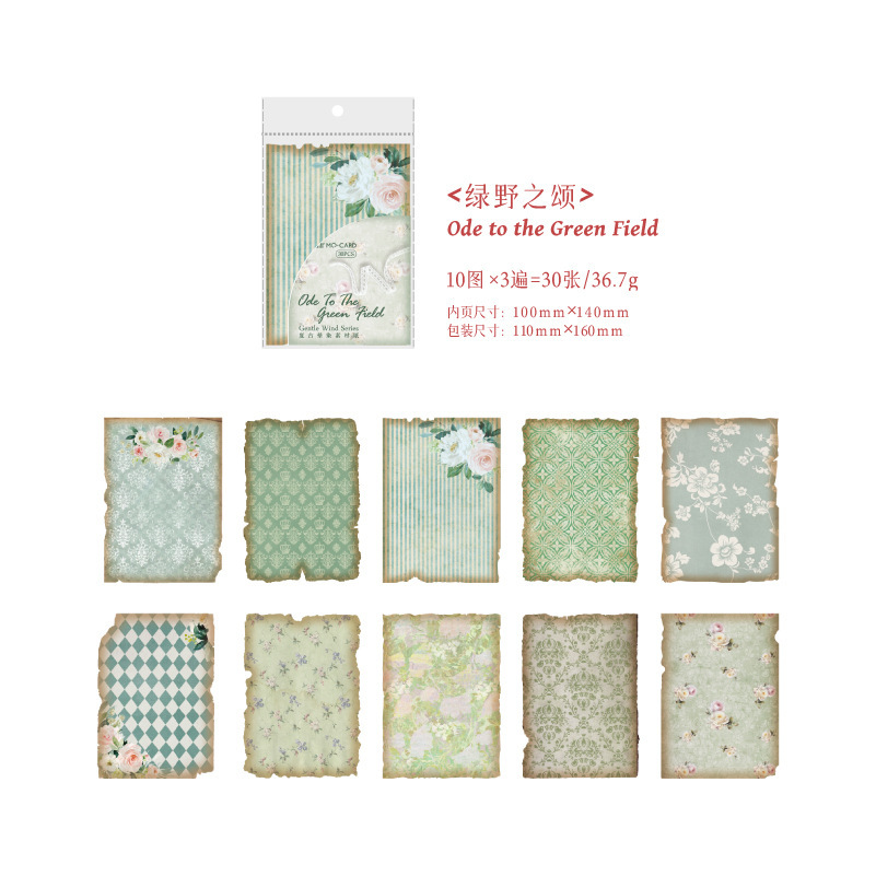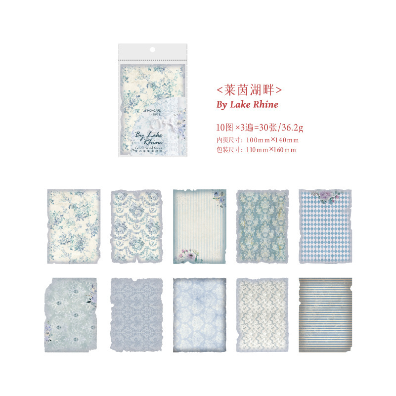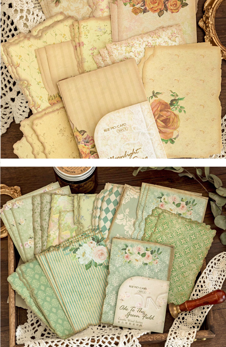 カフェ風 メモ紙 素材紙 ノートペーパー アンティーク 花フラワー 幾何学柄 30枚入