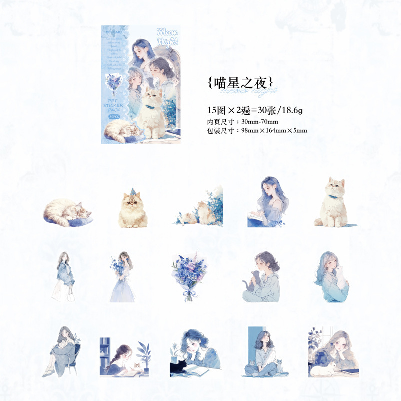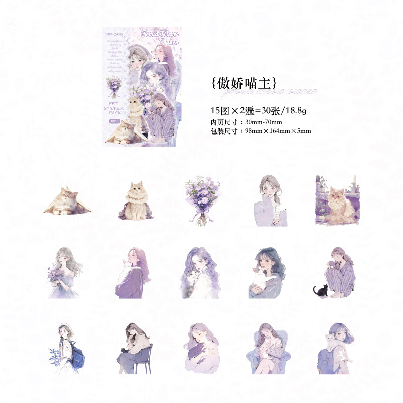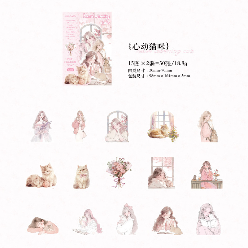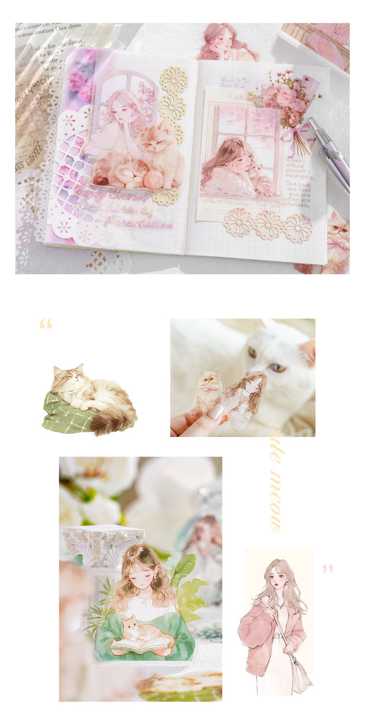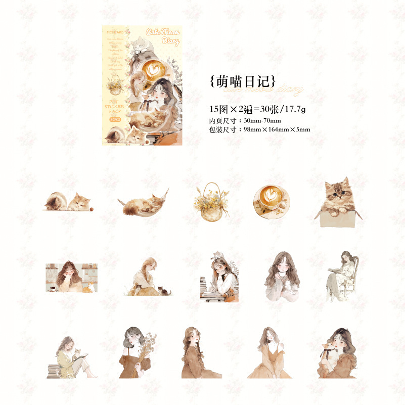現在カテゴリ:全て商品 > カフェ風 PETシール ステッカー スイーツ ガール少女 日常生活 キャット猫 ラベル 30枚入