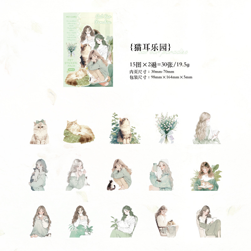 カフェ風 PETシール ステッカー スイーツ ガール少女 日常生活 キャット猫 ラベル 30枚入
