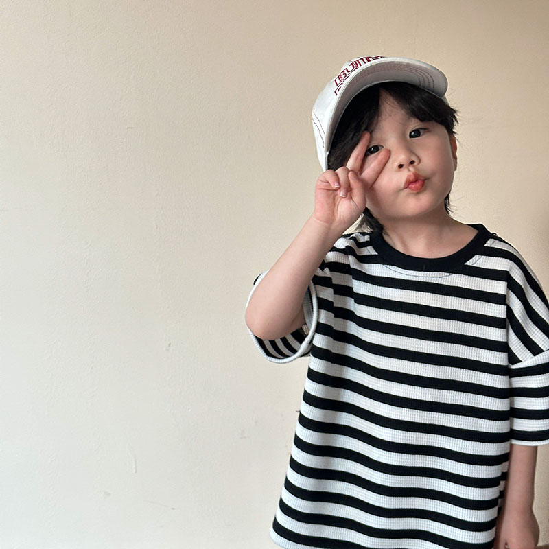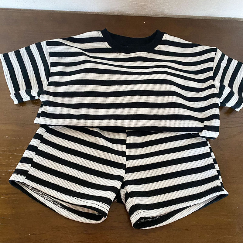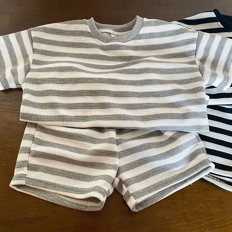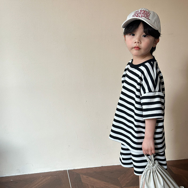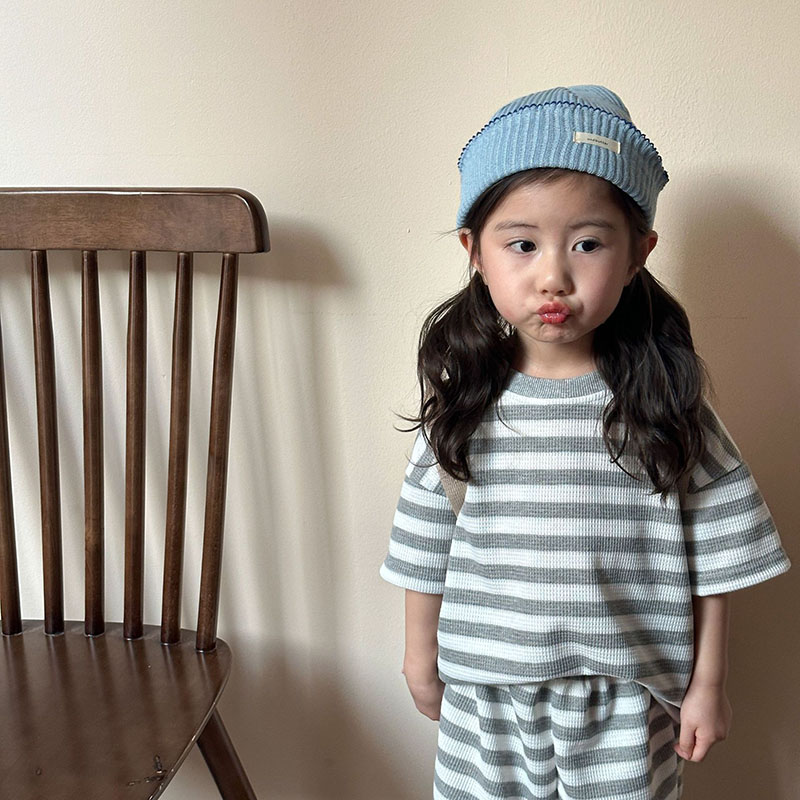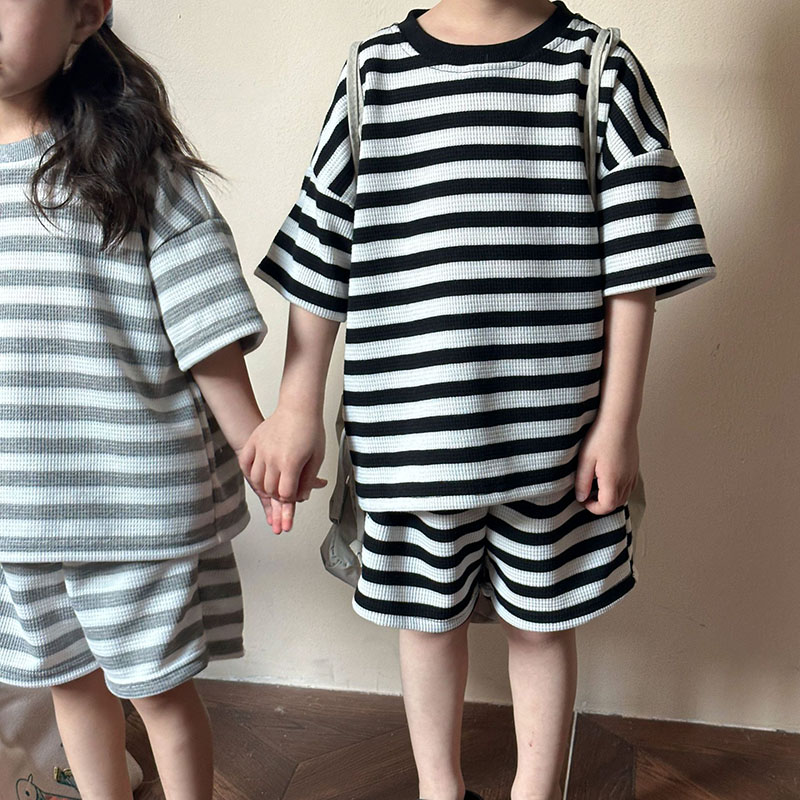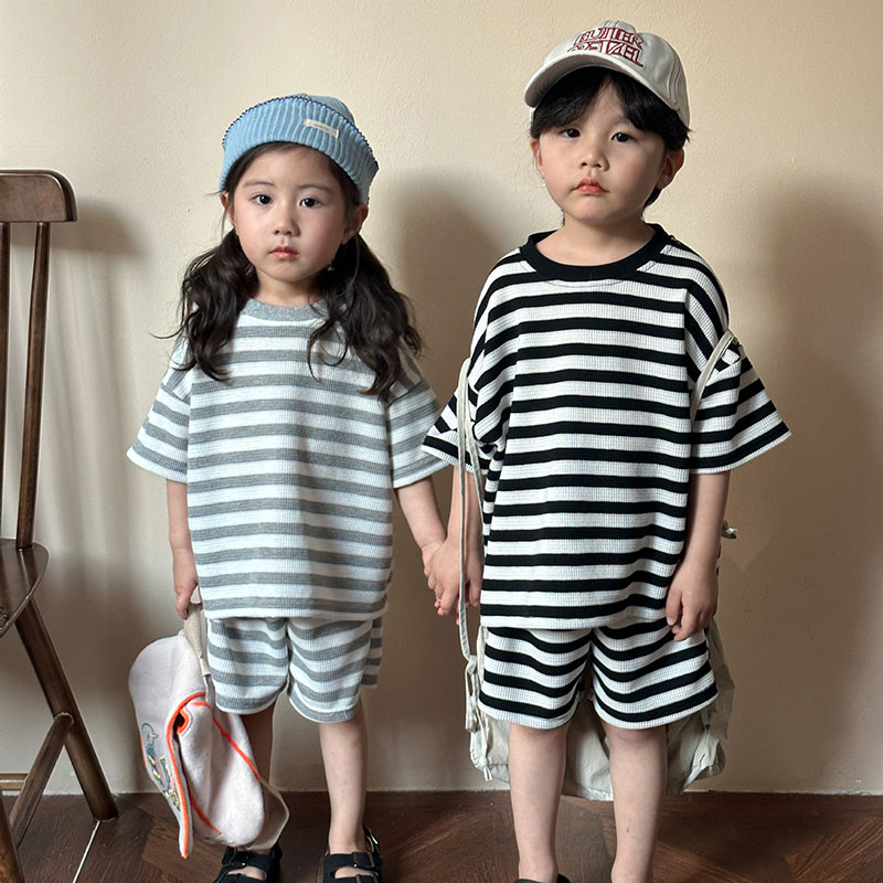 韓国風子供服 2024春夏 姉妹兄弟コーデ ボーダー柄 Tシャツ 上下セット トップス+ズボン 80-150cm