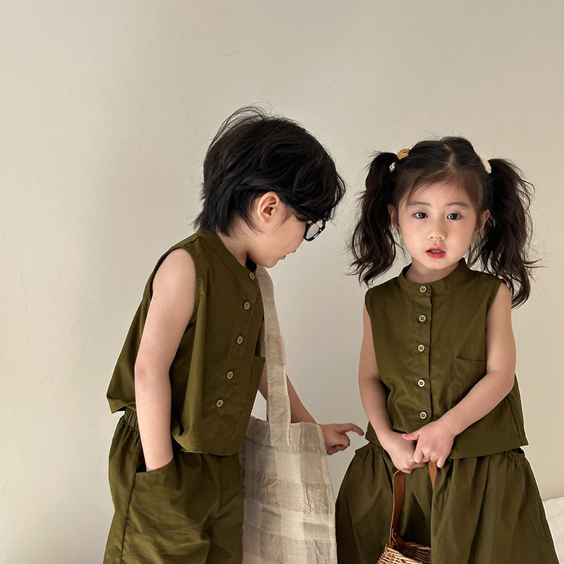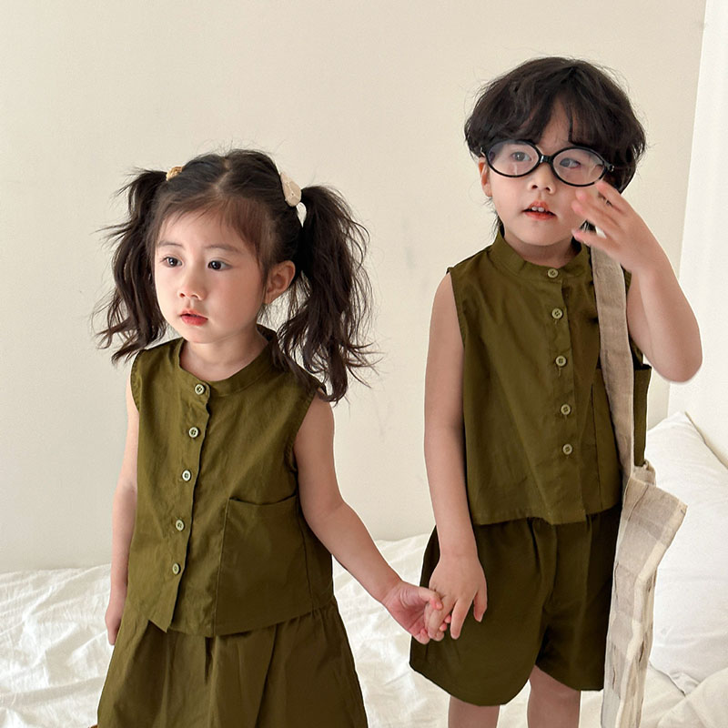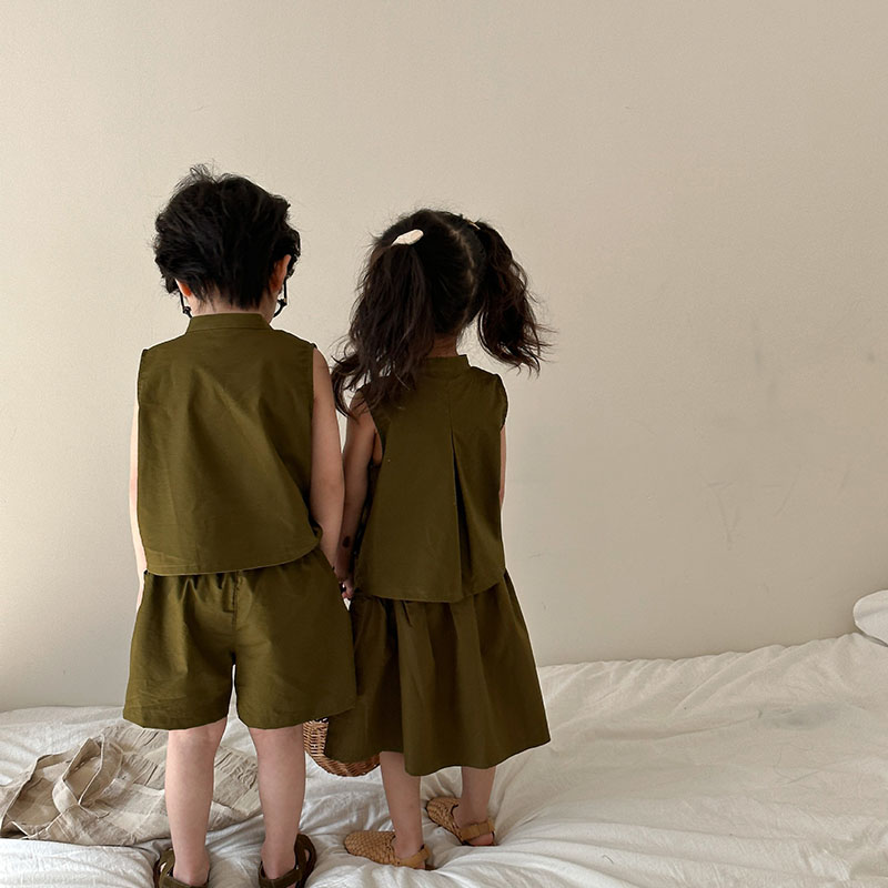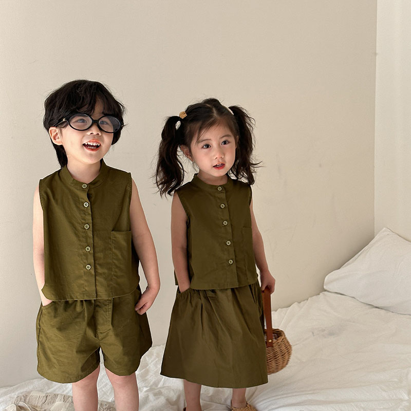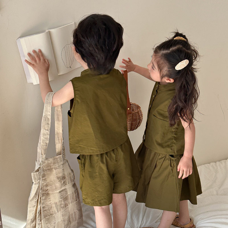 現在カテゴリ:全て商品 > 韓国風子供服 2024春夏 姉妹兄弟コーデ ベスト&パンツORスカート 2点セット 上下セット 80-150
