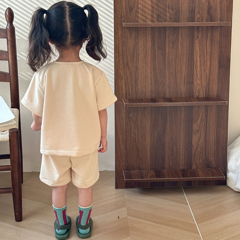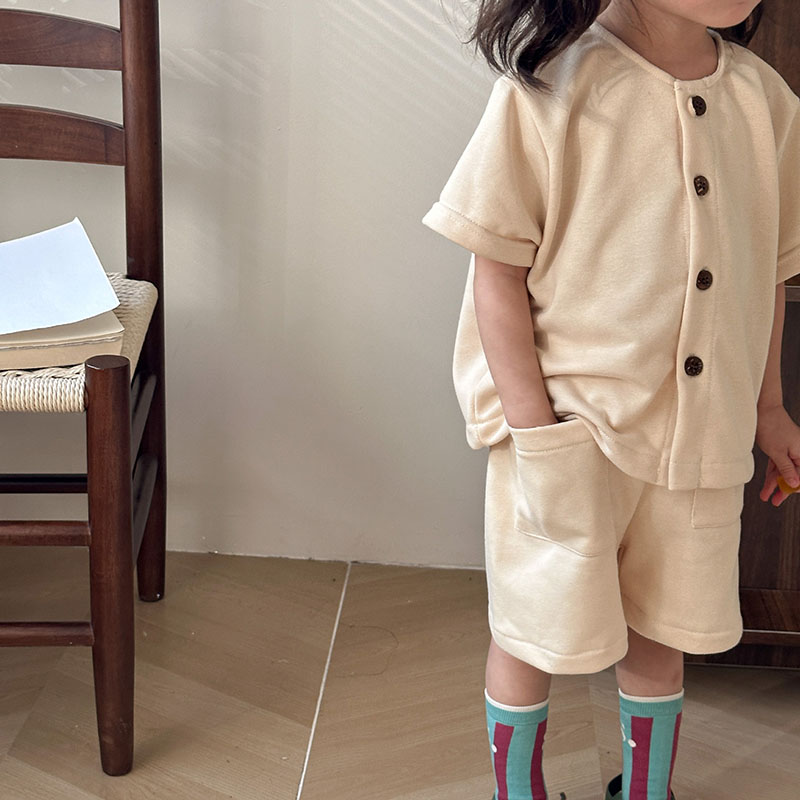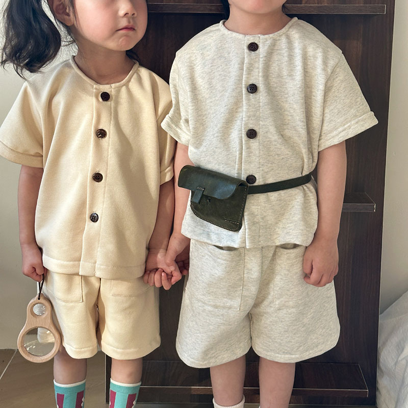 韓国風子供服 2024春夏 姉妹兄弟コーデ ショートパンツ シャツ 上下セット トップス+ズボン 80-150cm