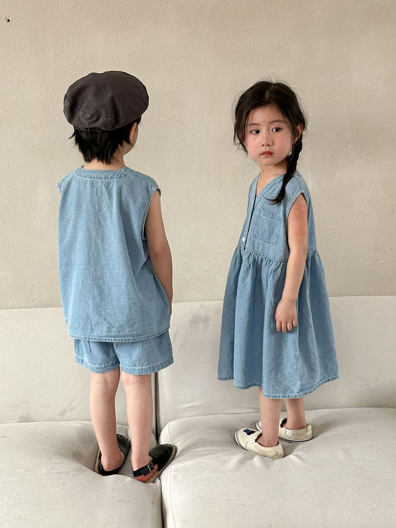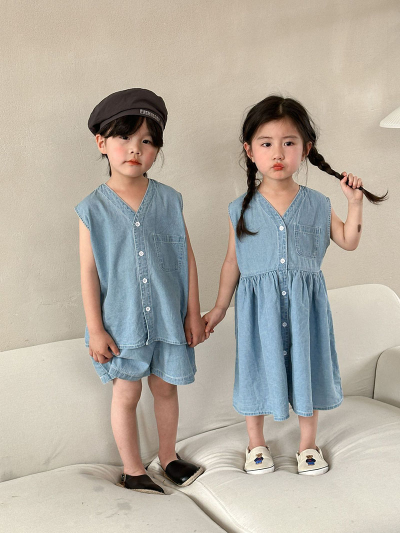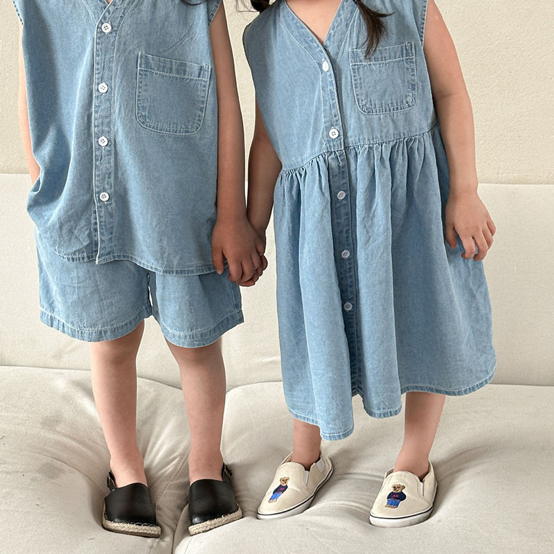 韓国風子供服 2024春夏 姉妹兄弟コーデ デニム ワンピース&上下セット トップス+ズボン 80-150cm