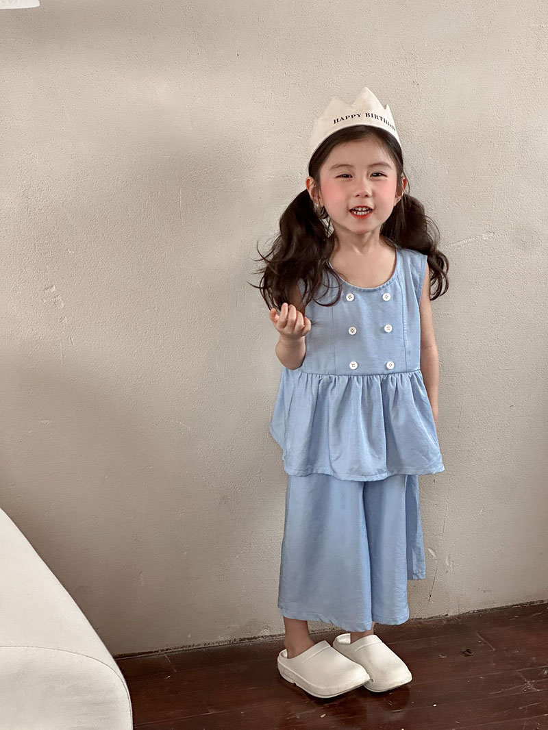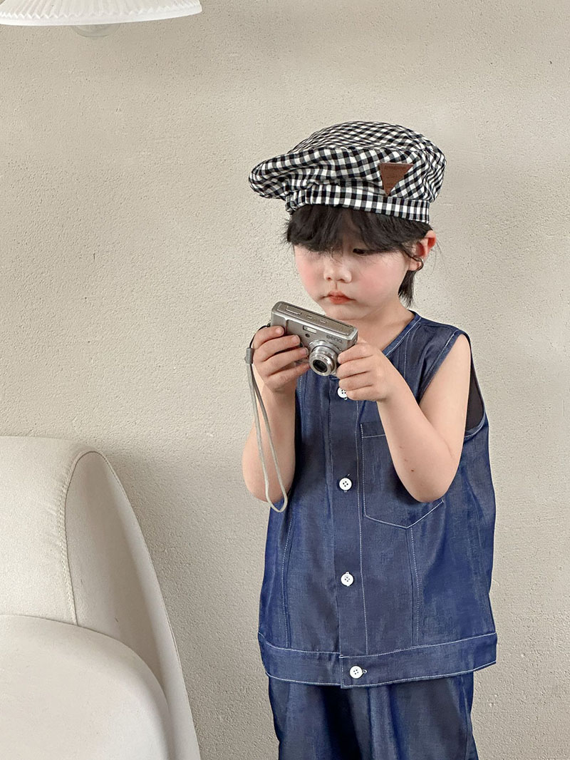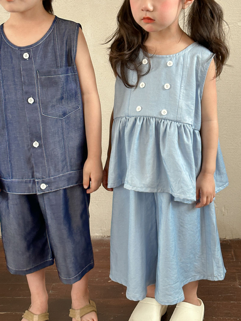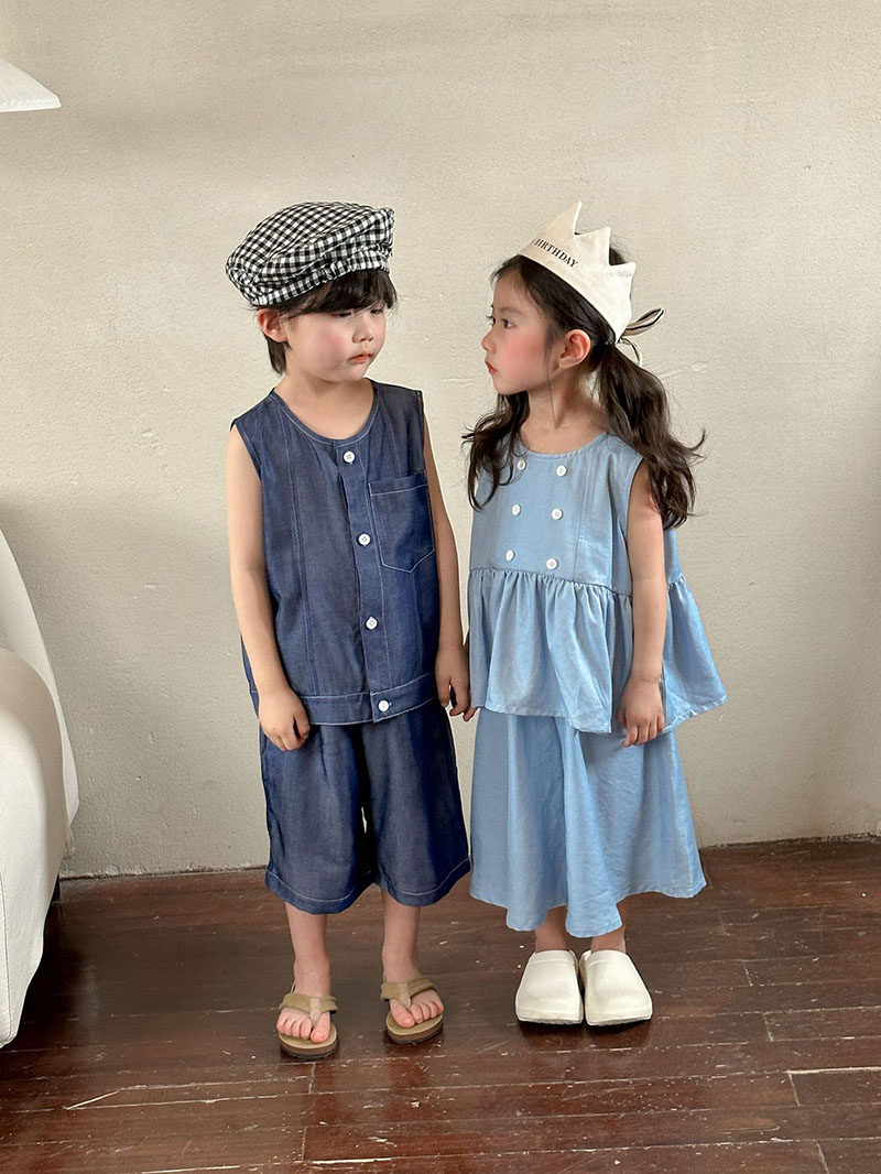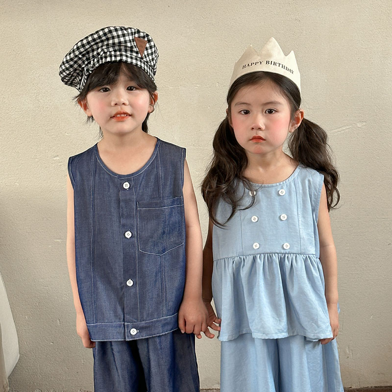 韓国風子供服 2024春夏 姉妹兄弟コーデ デニム 袖なしシャツ 上下セット トップス+ズボン 80-150cm