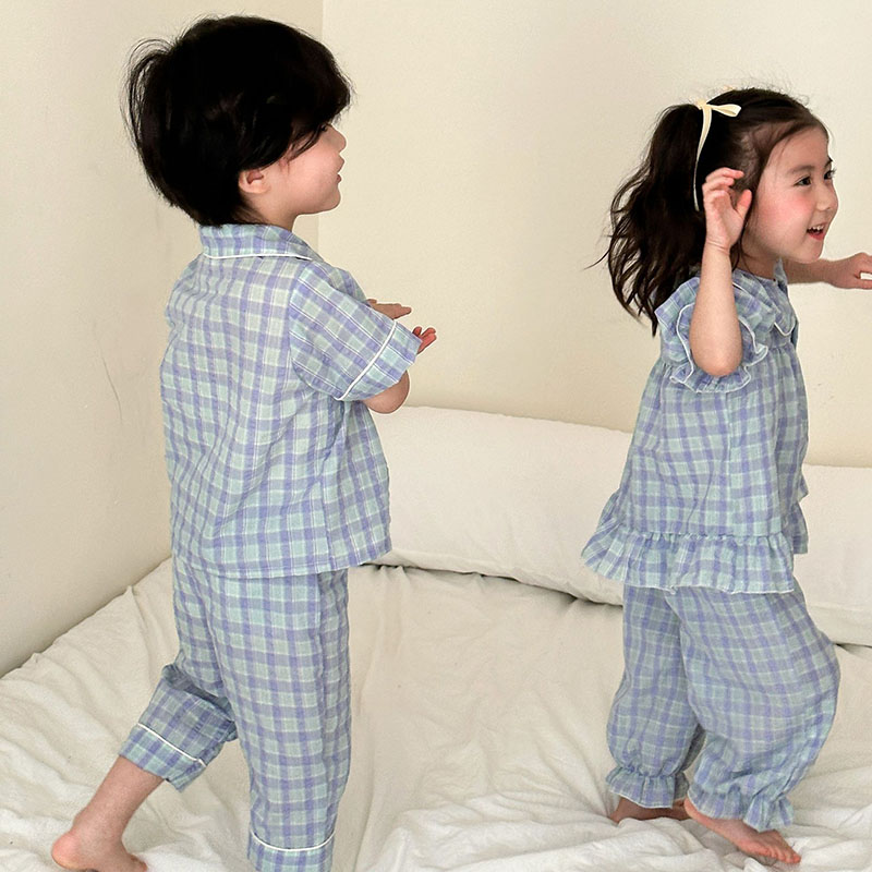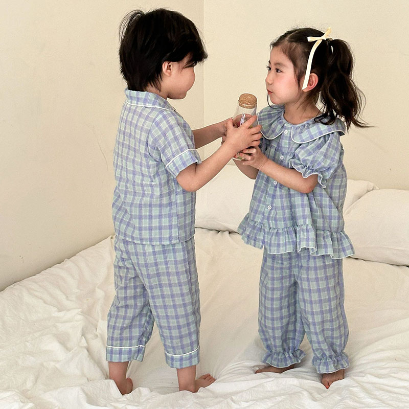 韓国風子供服 2024春夏 姉妹兄弟コーデ パジャマ 半袖シャツ 上下セット トップス+ズボン 80-150cm