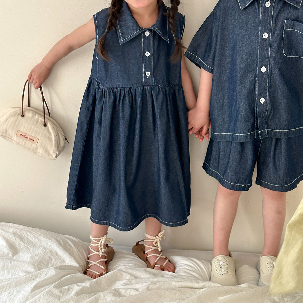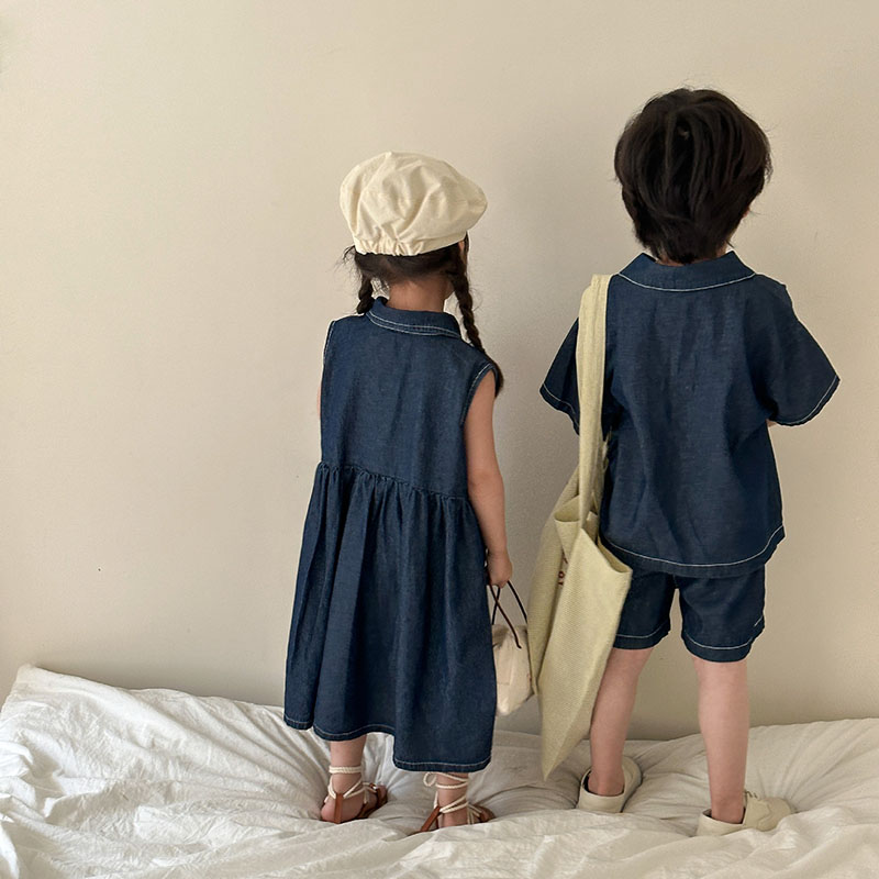 韓国風子供服 2024春夏 姉妹兄弟コーデ デニム ワンピース&上下セット トップス+ズボン 80-150cm