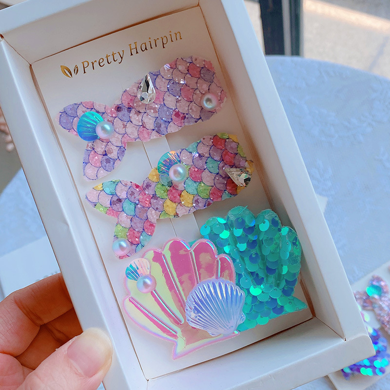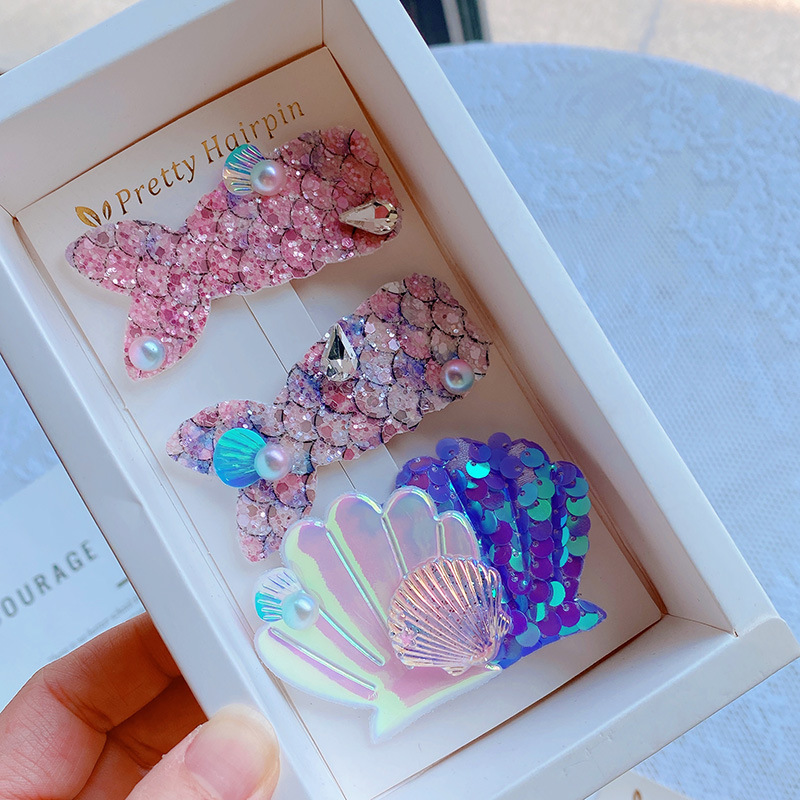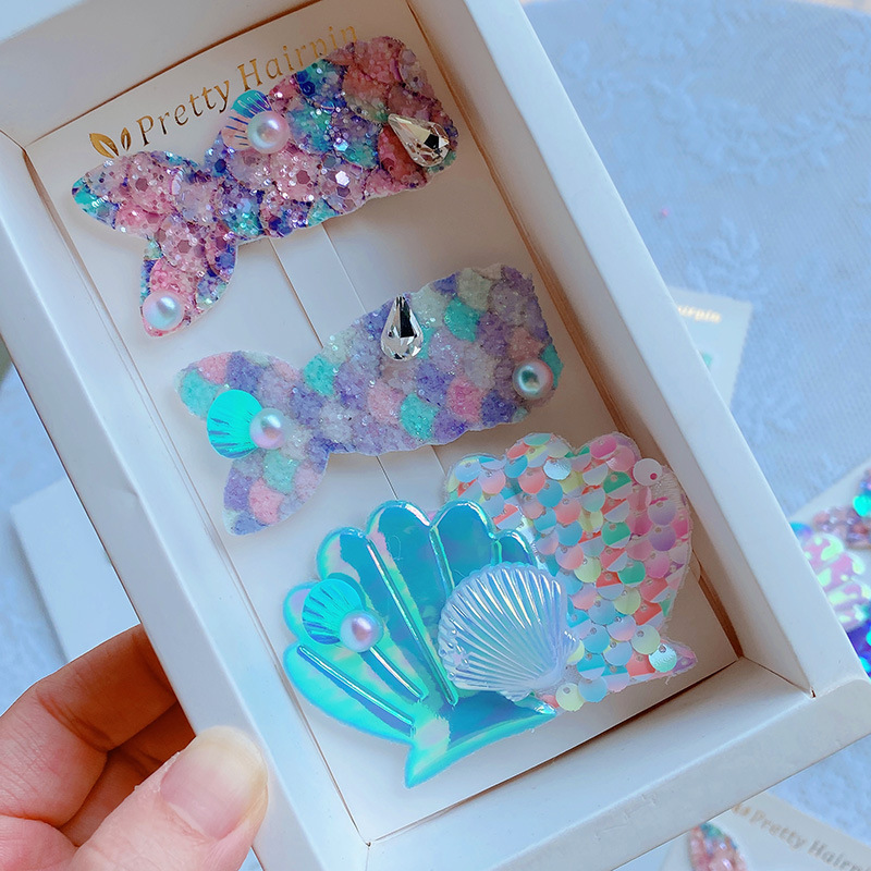 現在カテゴリ:全て商品 > 春夏 ガールズ少女 ヘアクリップ ヘアピン スパンコール 貝殻 アクリルパール 人魚姫マーメイド 3枚入