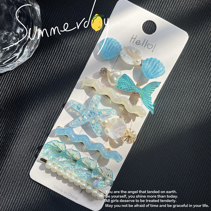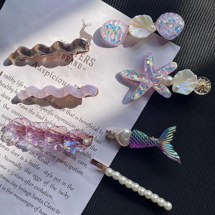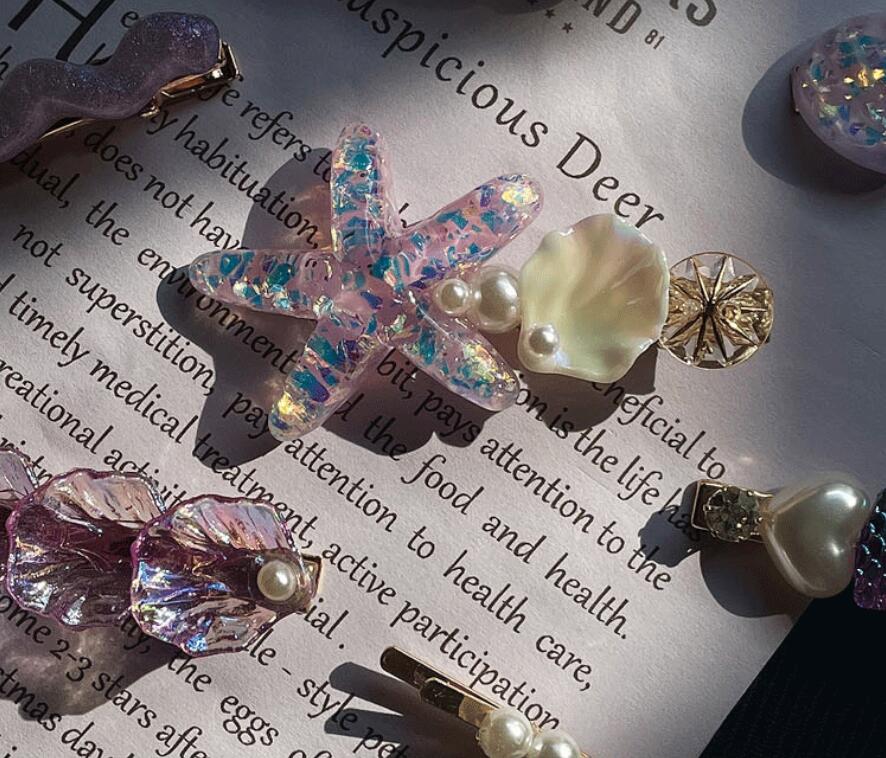 現在カテゴリ:全て商品 > 春夏 レディース ガールズ少女 ヘアクリップ ヘアピン 貝殻ヒトデ アクリルパール 人魚姫 マーメイド 7枚入
