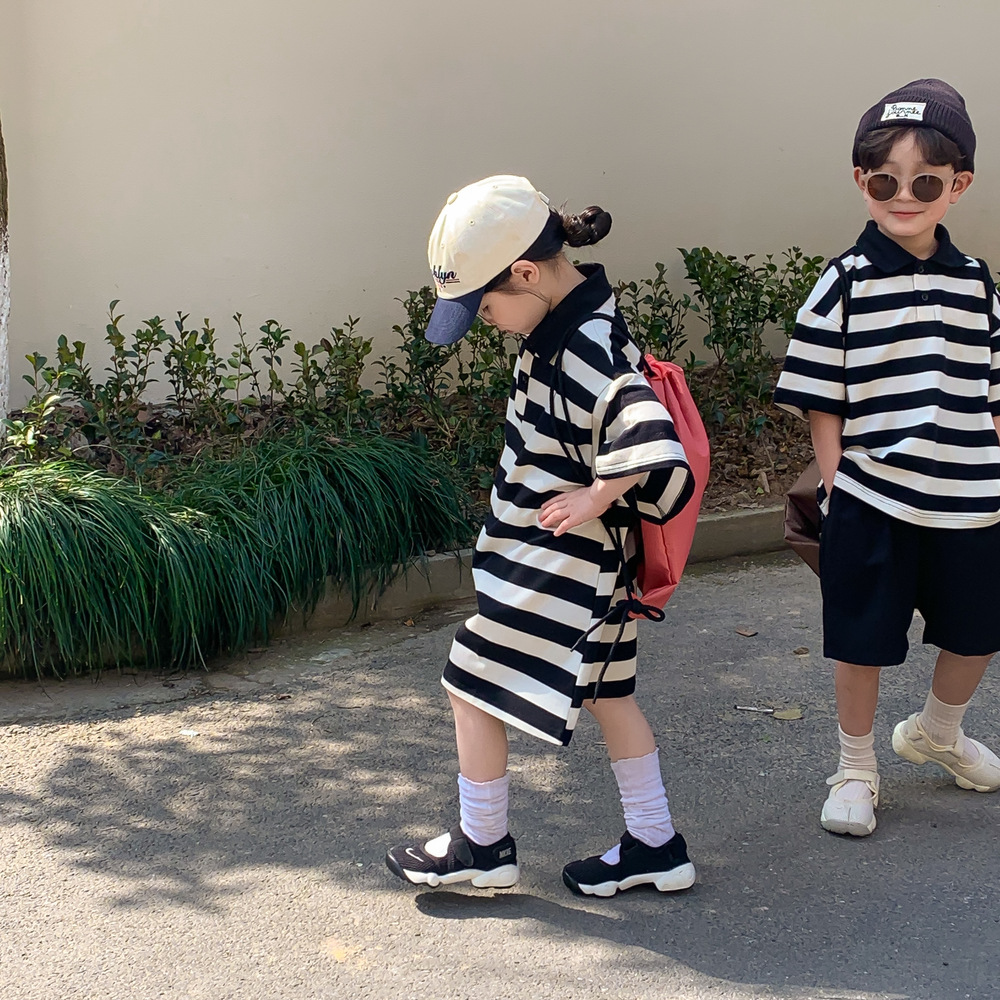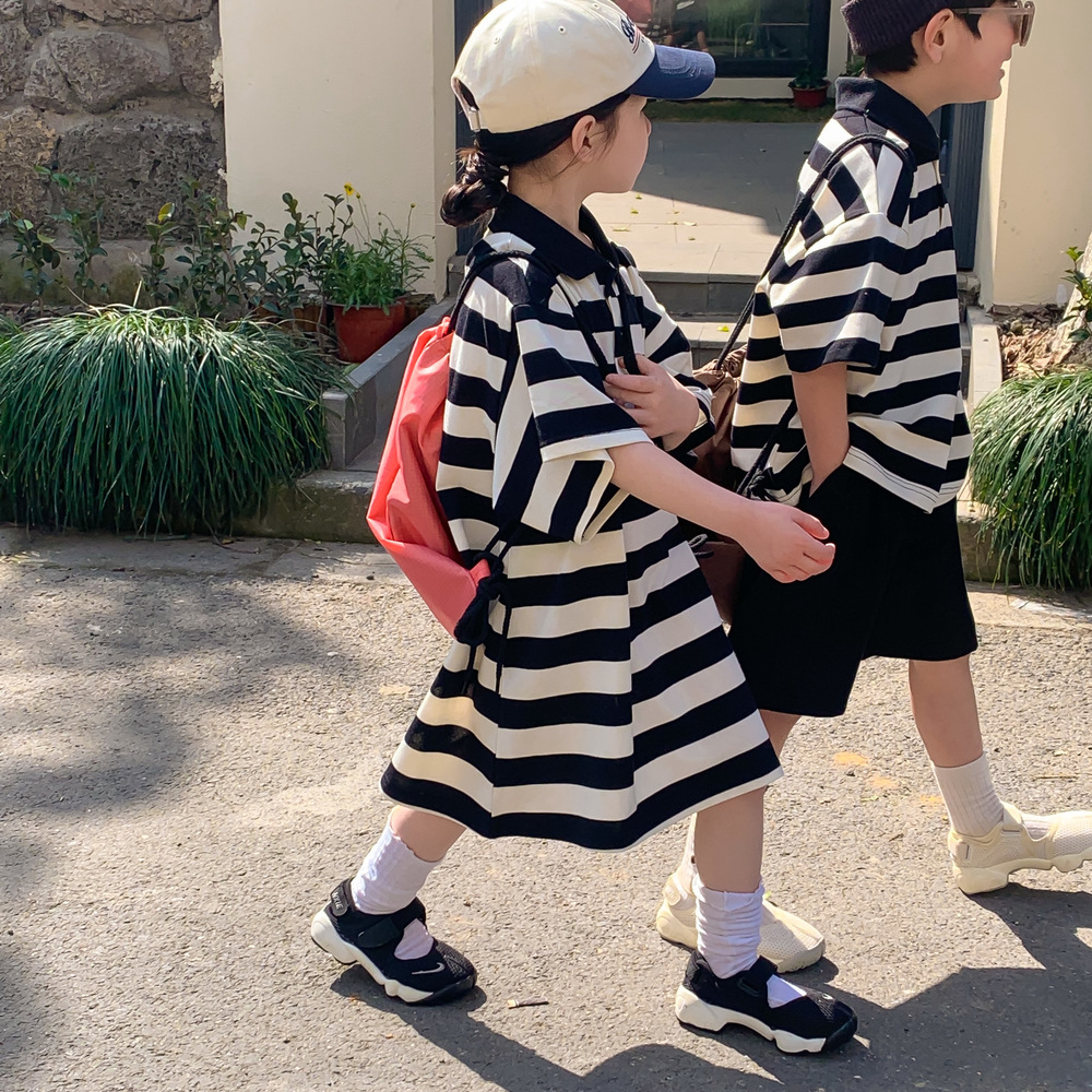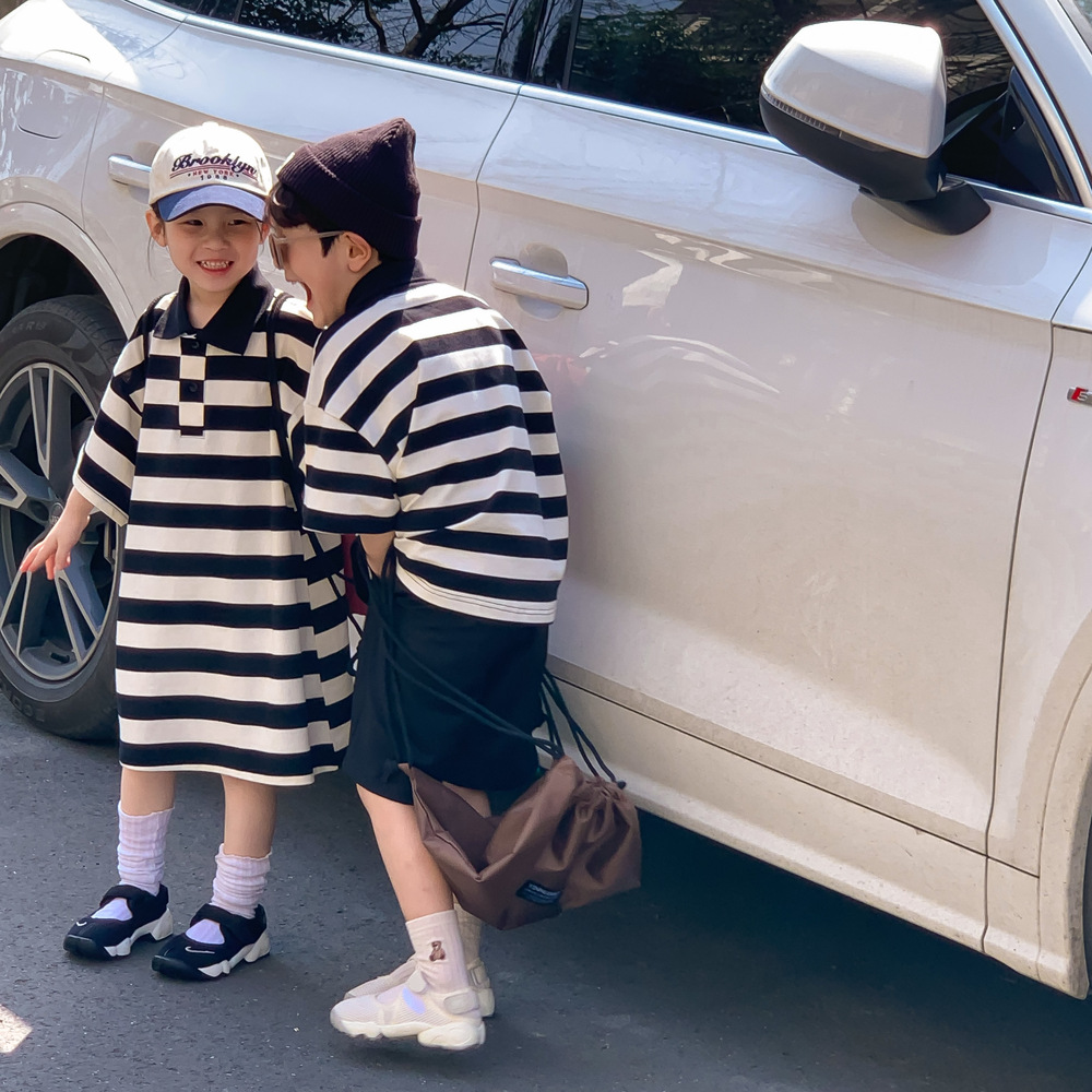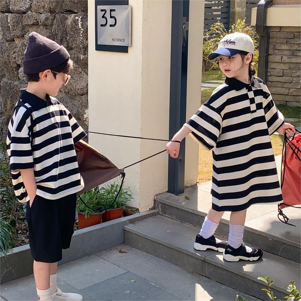 現在カテゴリ:全て商品 > 韓国風子供服 ボーダー柄 2024春夏 姉妹兄弟コーデ ワンピース&上下セット トップス+ズボン 90-150cm