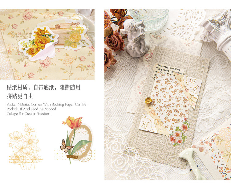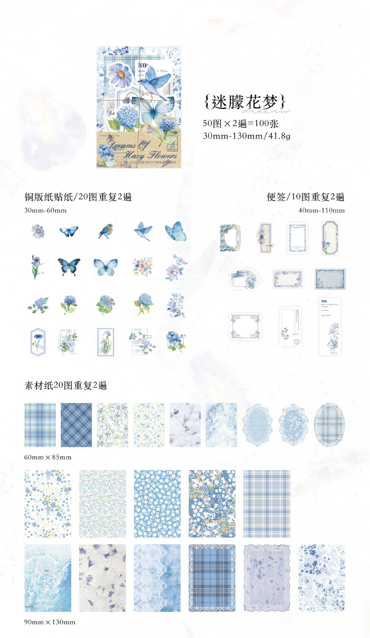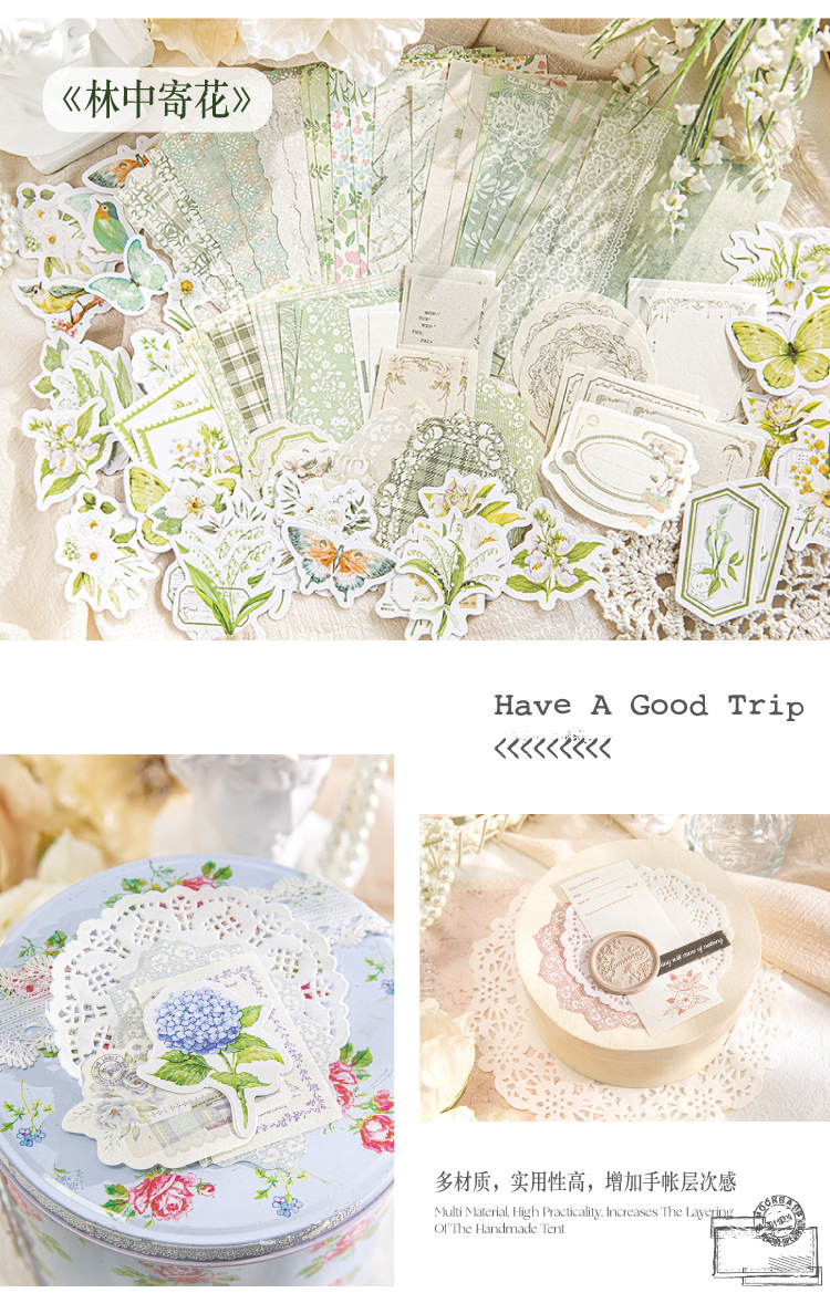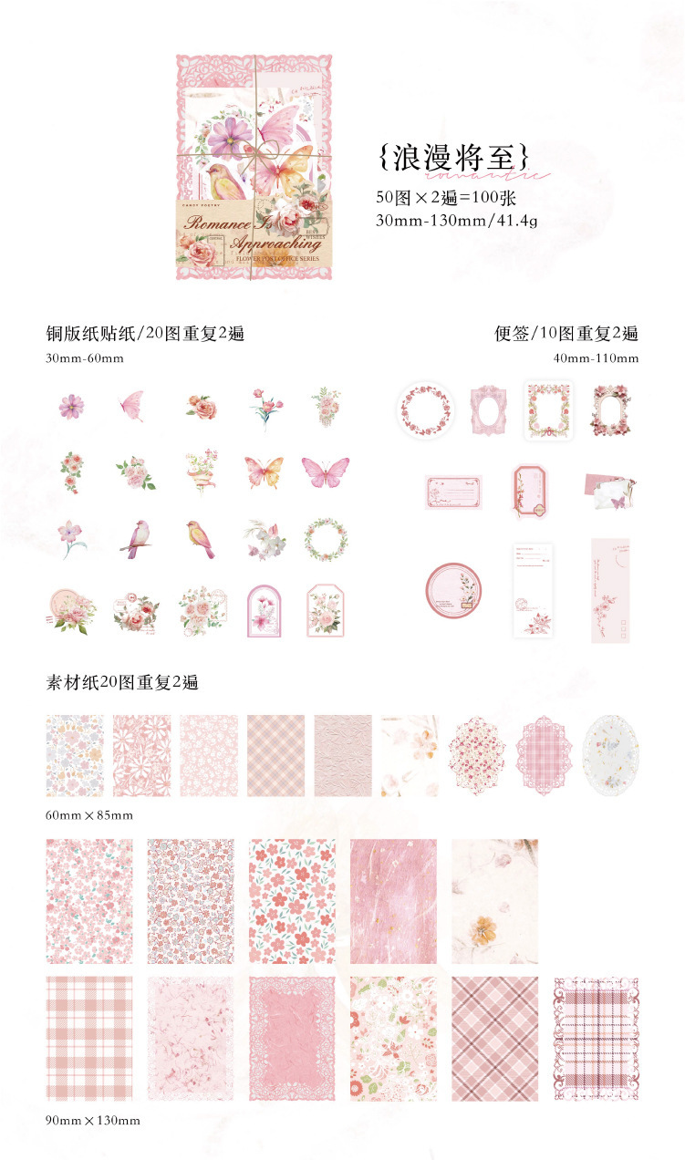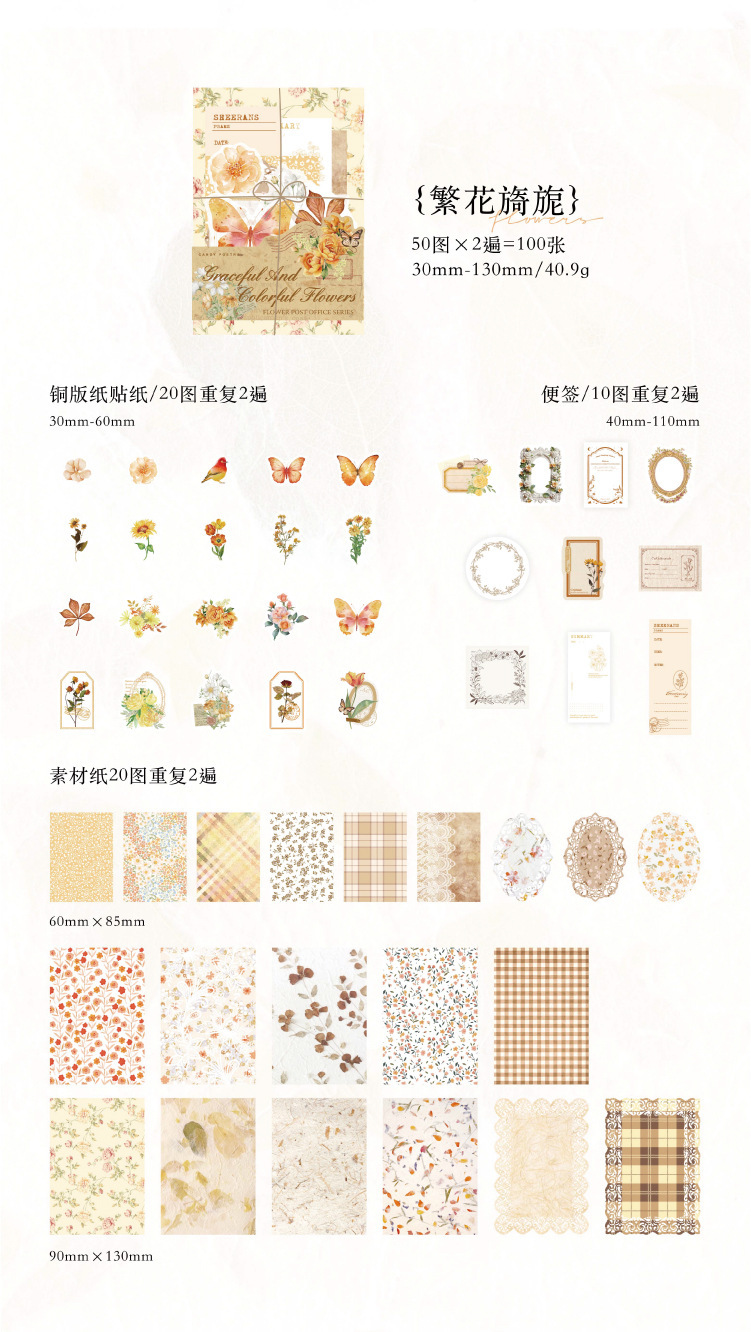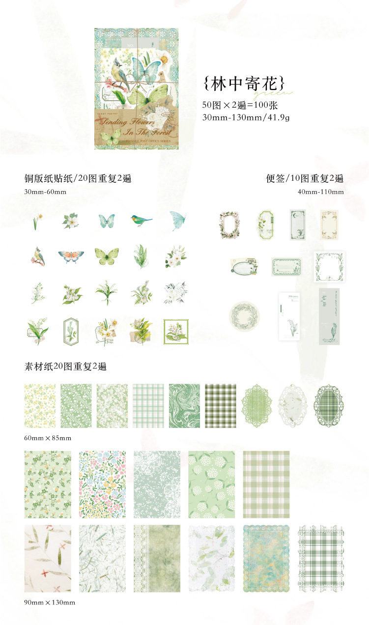 現在カテゴリ:全て商品 > ペーパーノート ステッカー シール40枚+素材紙40枚+メモ紙20枚 花フラワー バタフライ蝶 鳥葉 100枚入