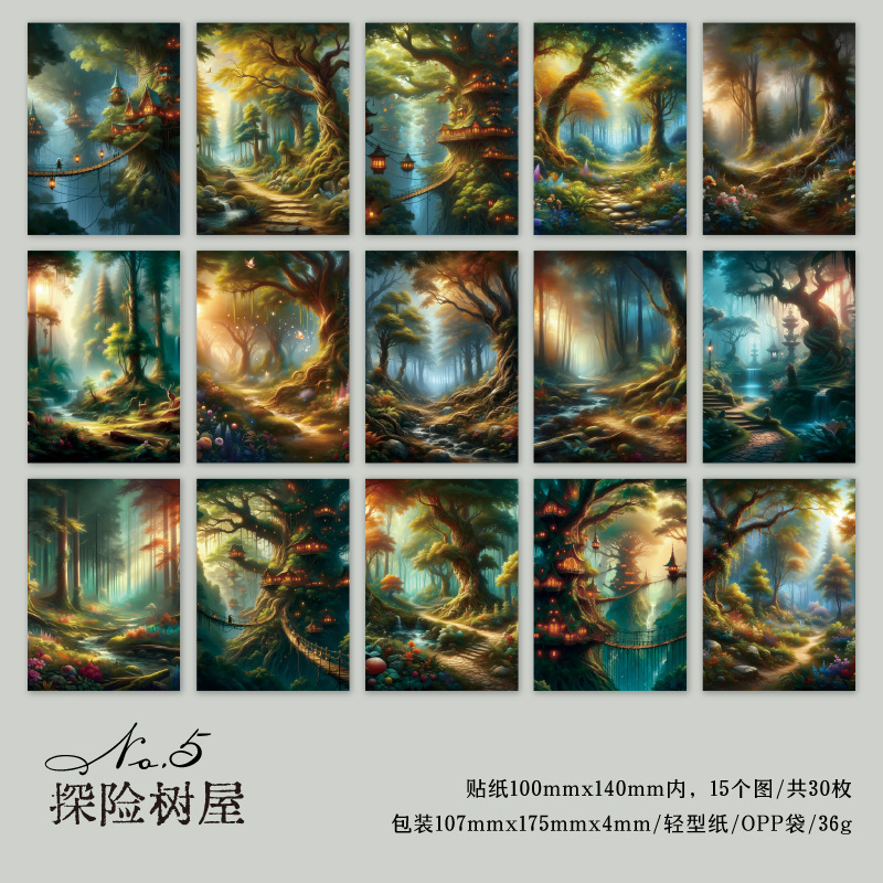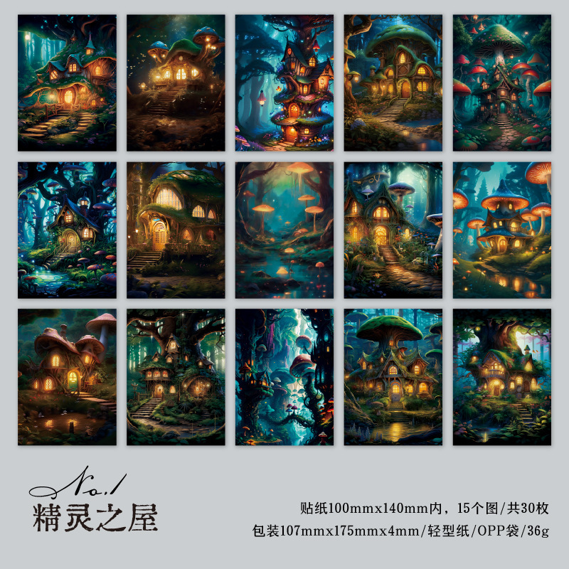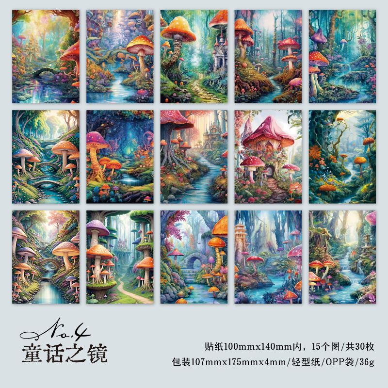 カフェ風 ペーパー アンティーク メモ紙素材紙 ラベル 森 キノコ 幻の境 30枚入