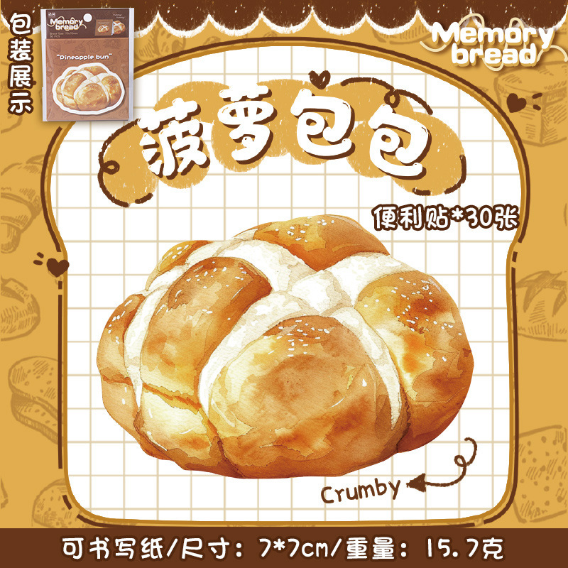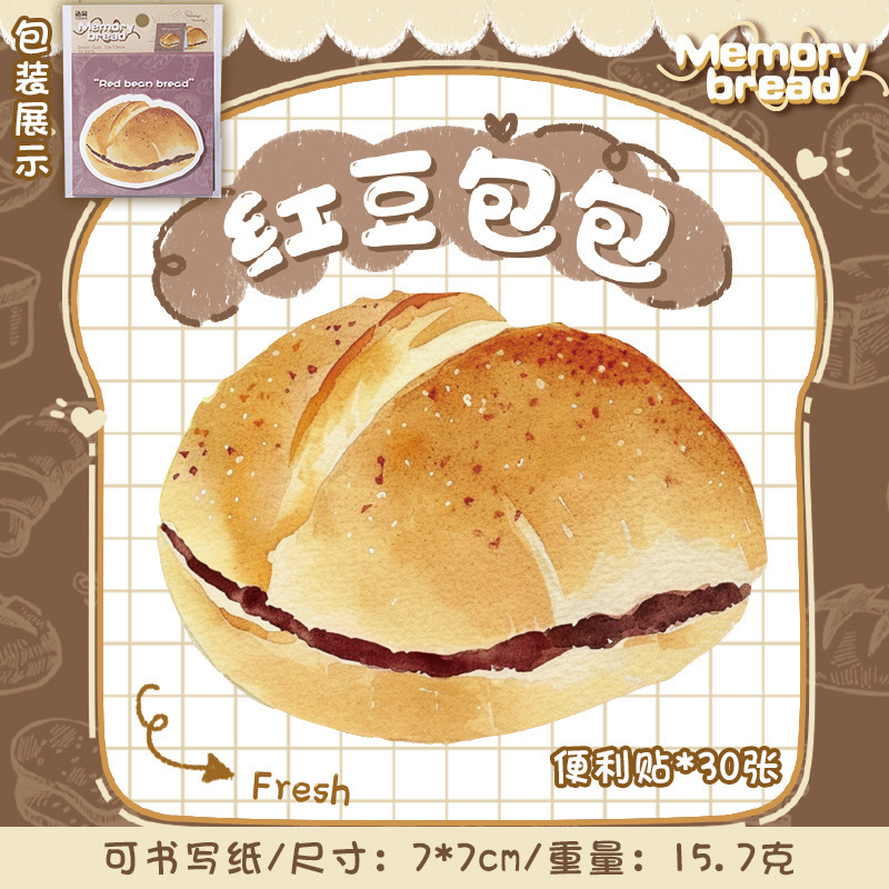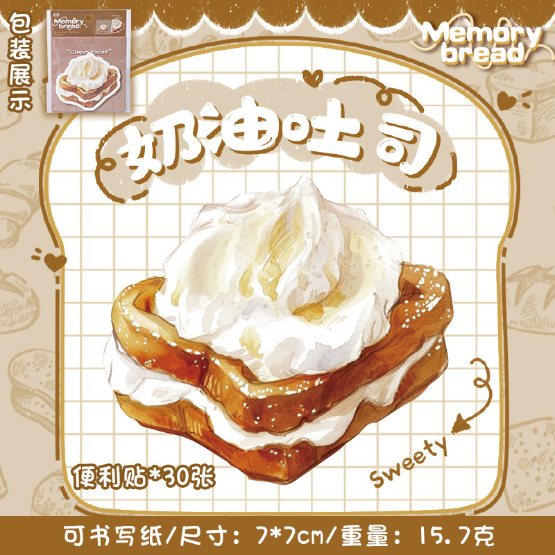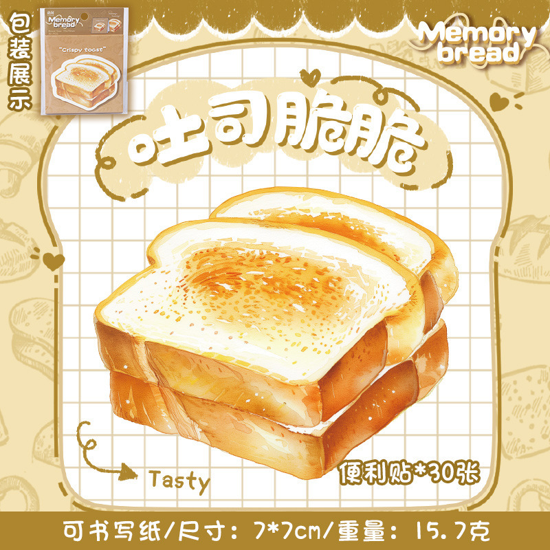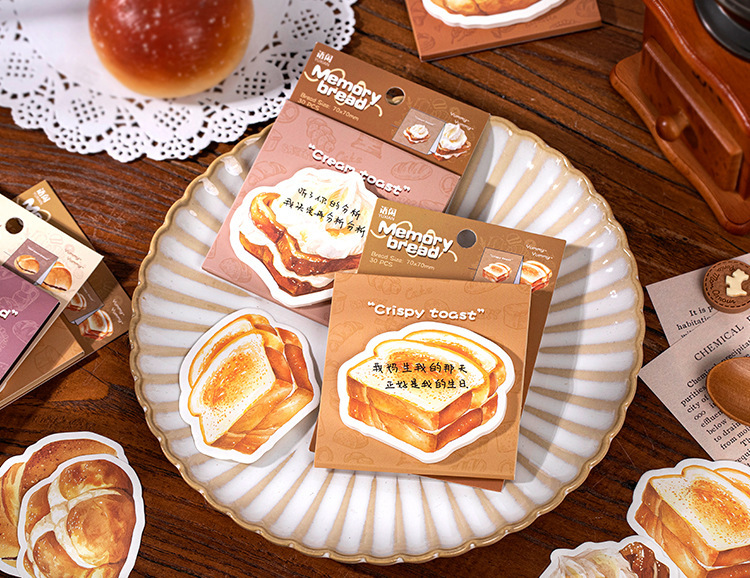 ペーパー素材紙 ミニノート メモ紙 ポストイット シッキーノート 貼り付け付箋 グルメ パン ラベル 30枚入