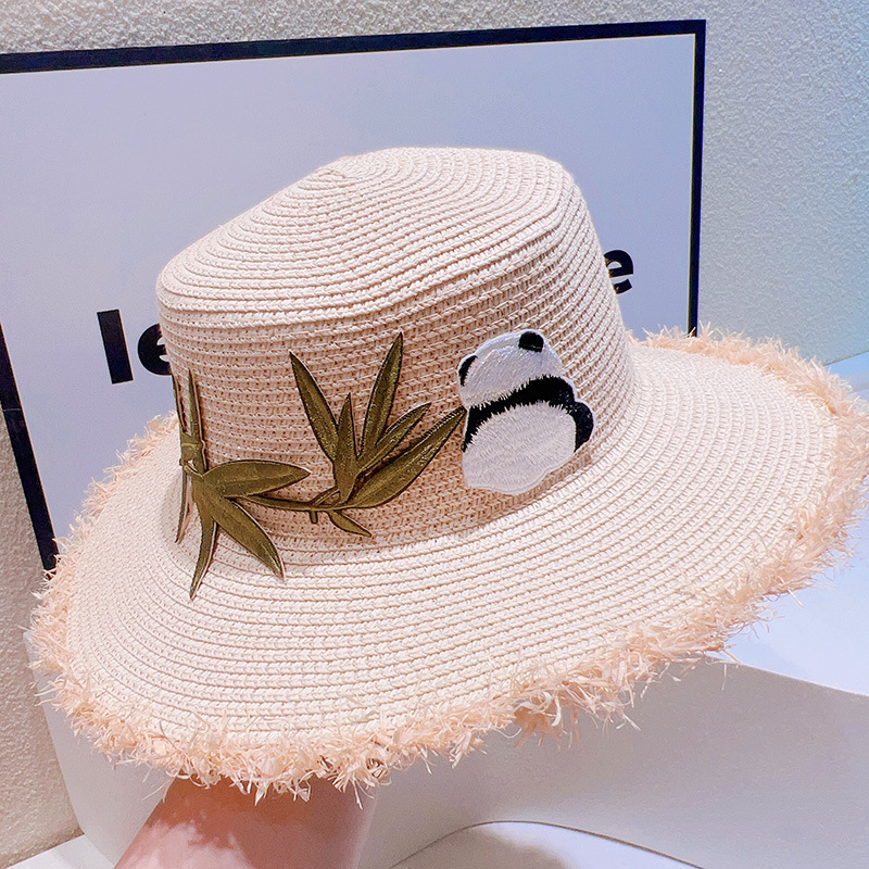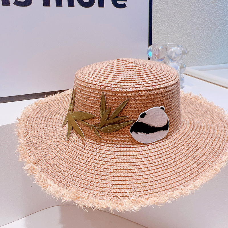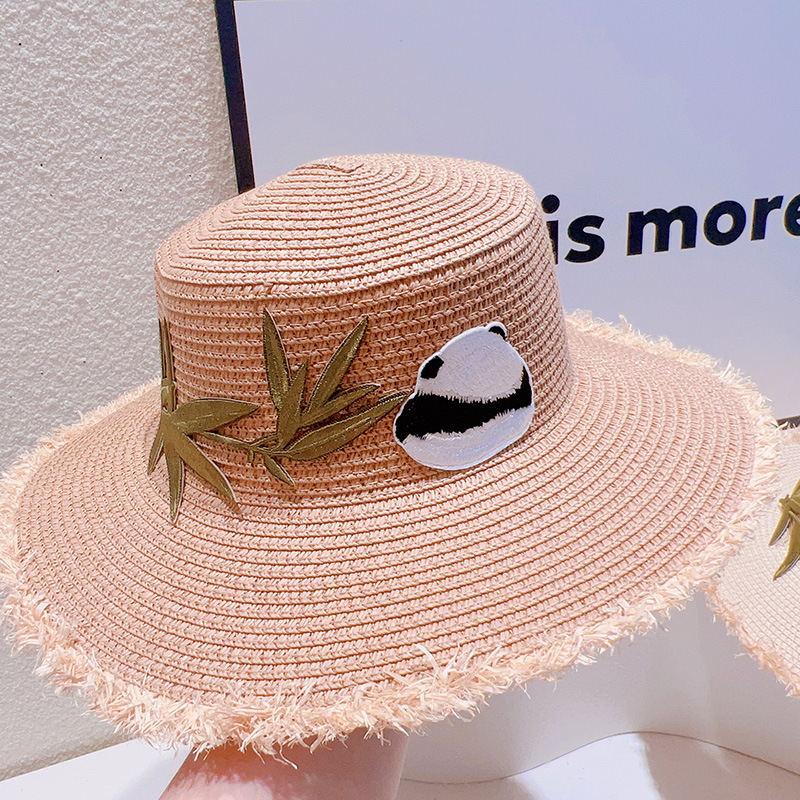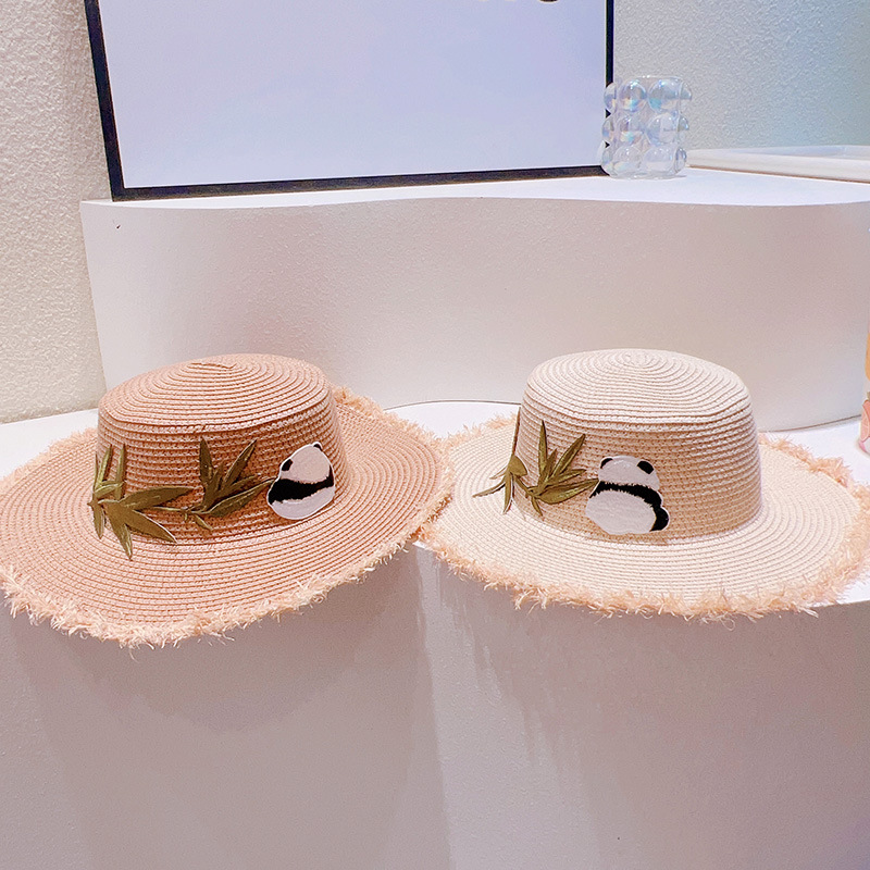 ハワイ 春夏 大人も子供 キッズ少女 ストローハット 麦わら帽子 日焼け止め 草編み ビーチ海 パンダ 竹