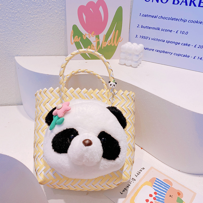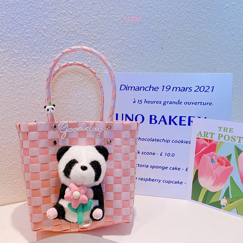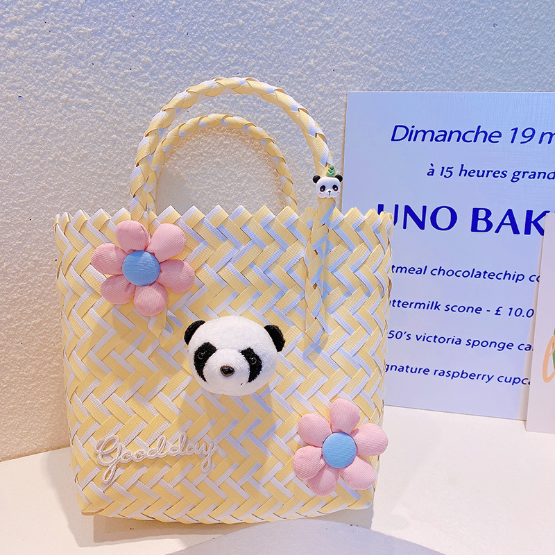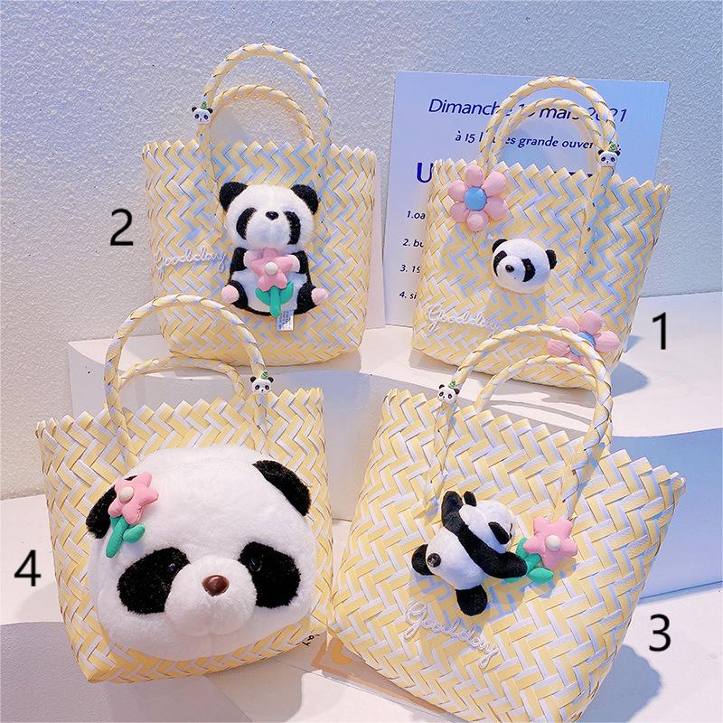 春夏 少女 ポシェット かごバッグ 編みバッグ ハンドバッグ ビーチバッグ パンダ バスケット ぬいぐるみ